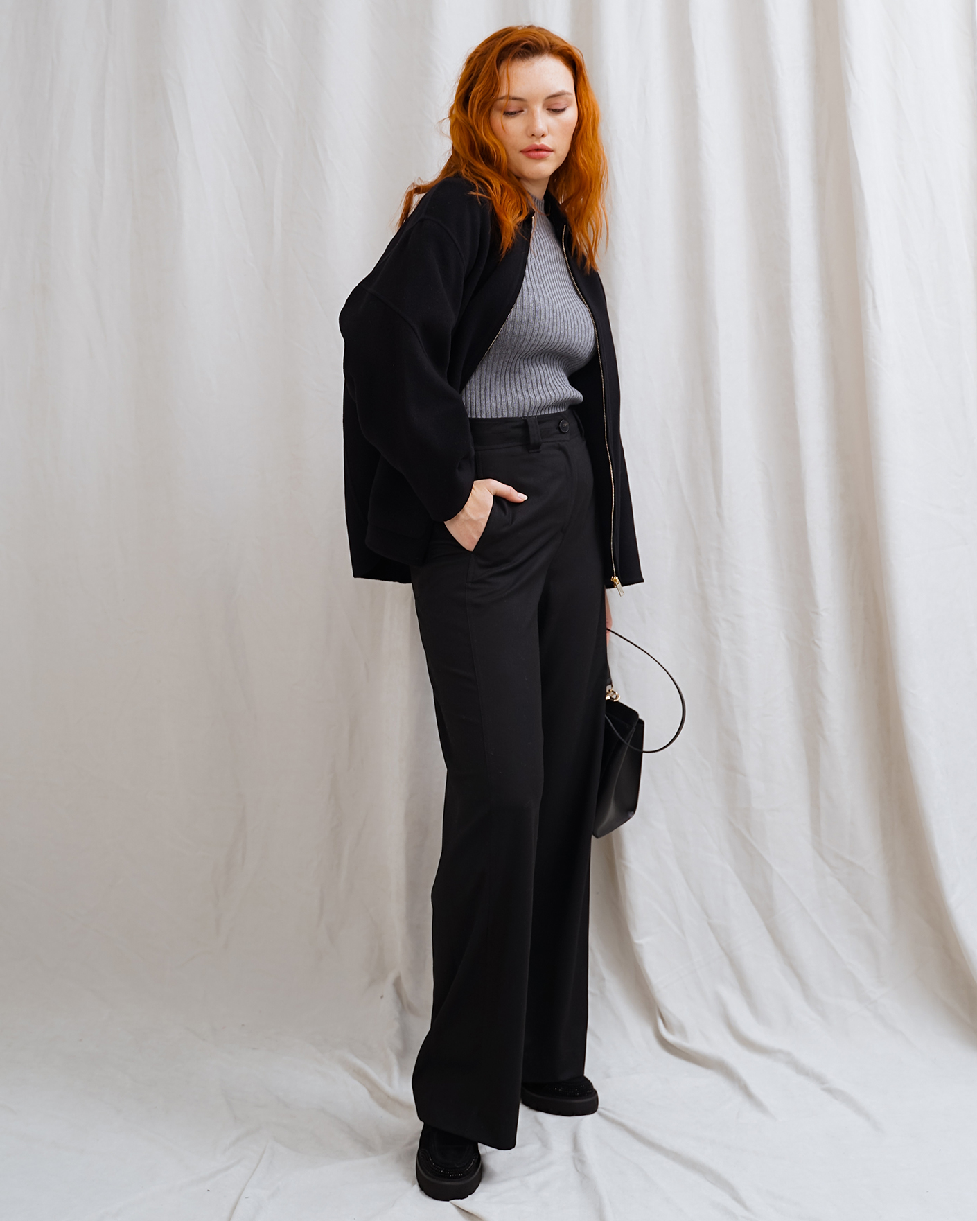 Классические брюки Marella черного цвета в лампасамми в тон. Модель прямого кроя на стандартной застежке, имеются врезные карманы по бокам. Брюки можно сочетать с любым гардеробом на каждый день.