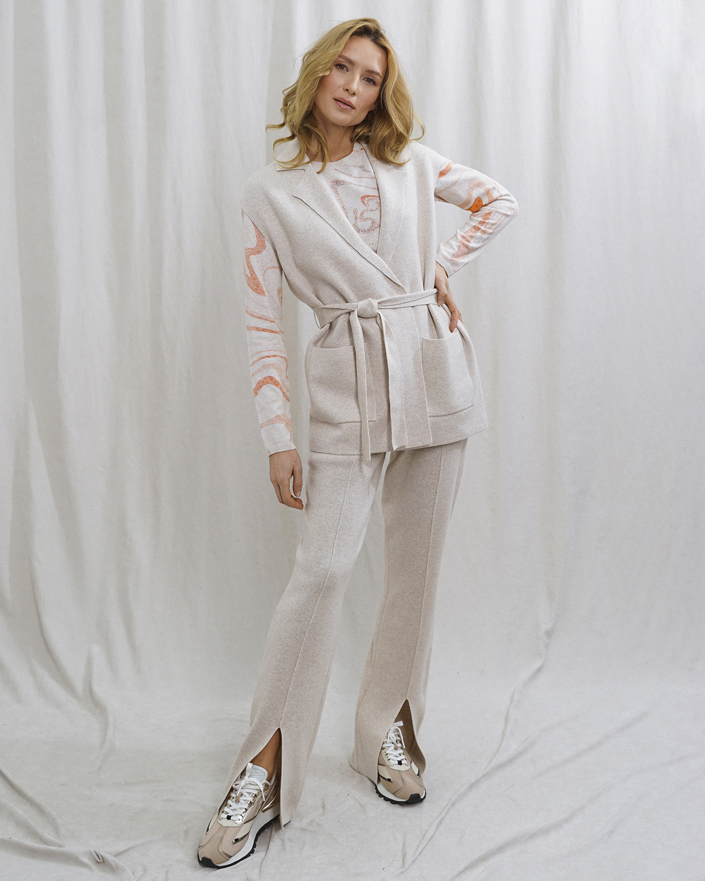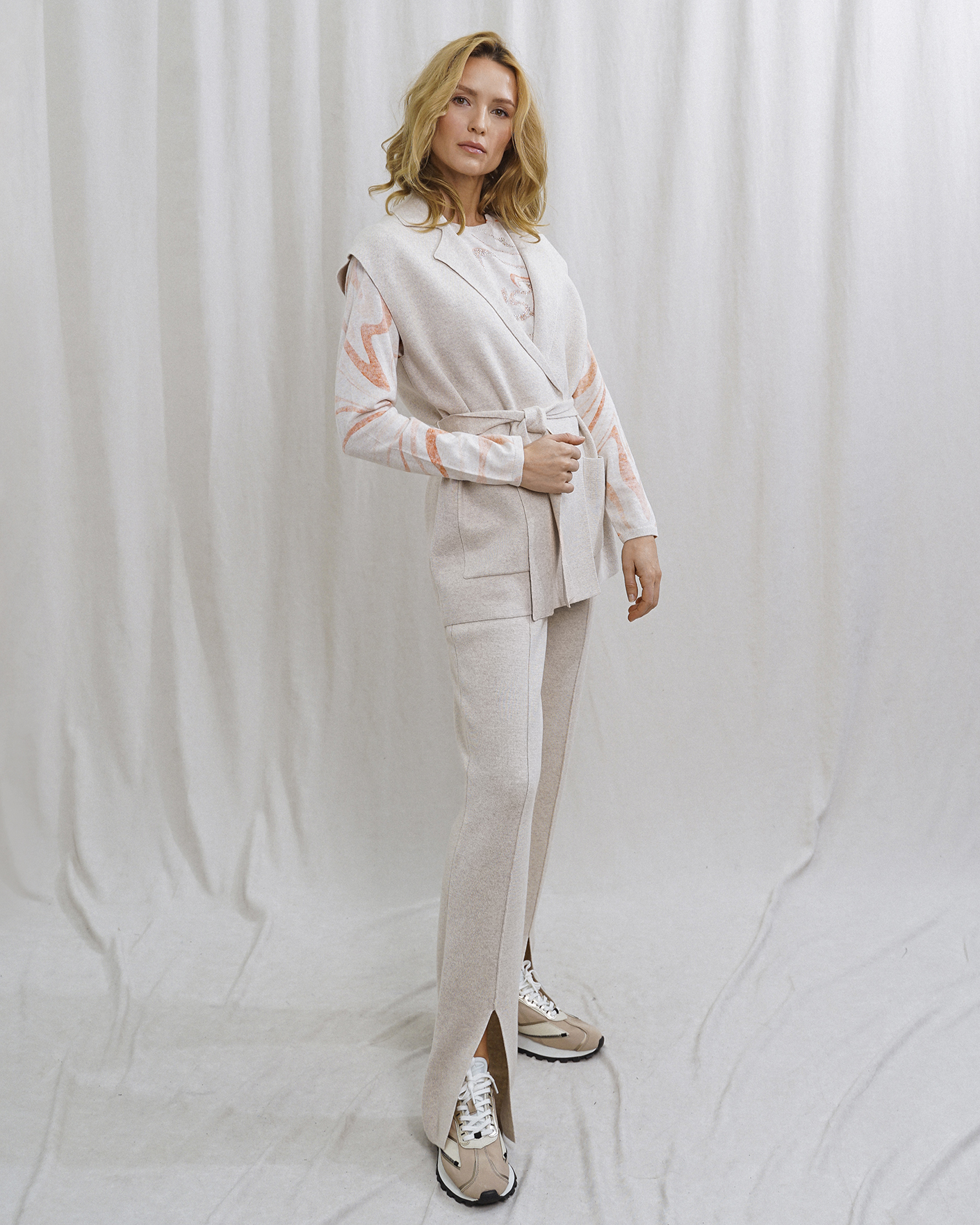 Теплый образ для прогулок от OUI: жилет, свитер, брюки