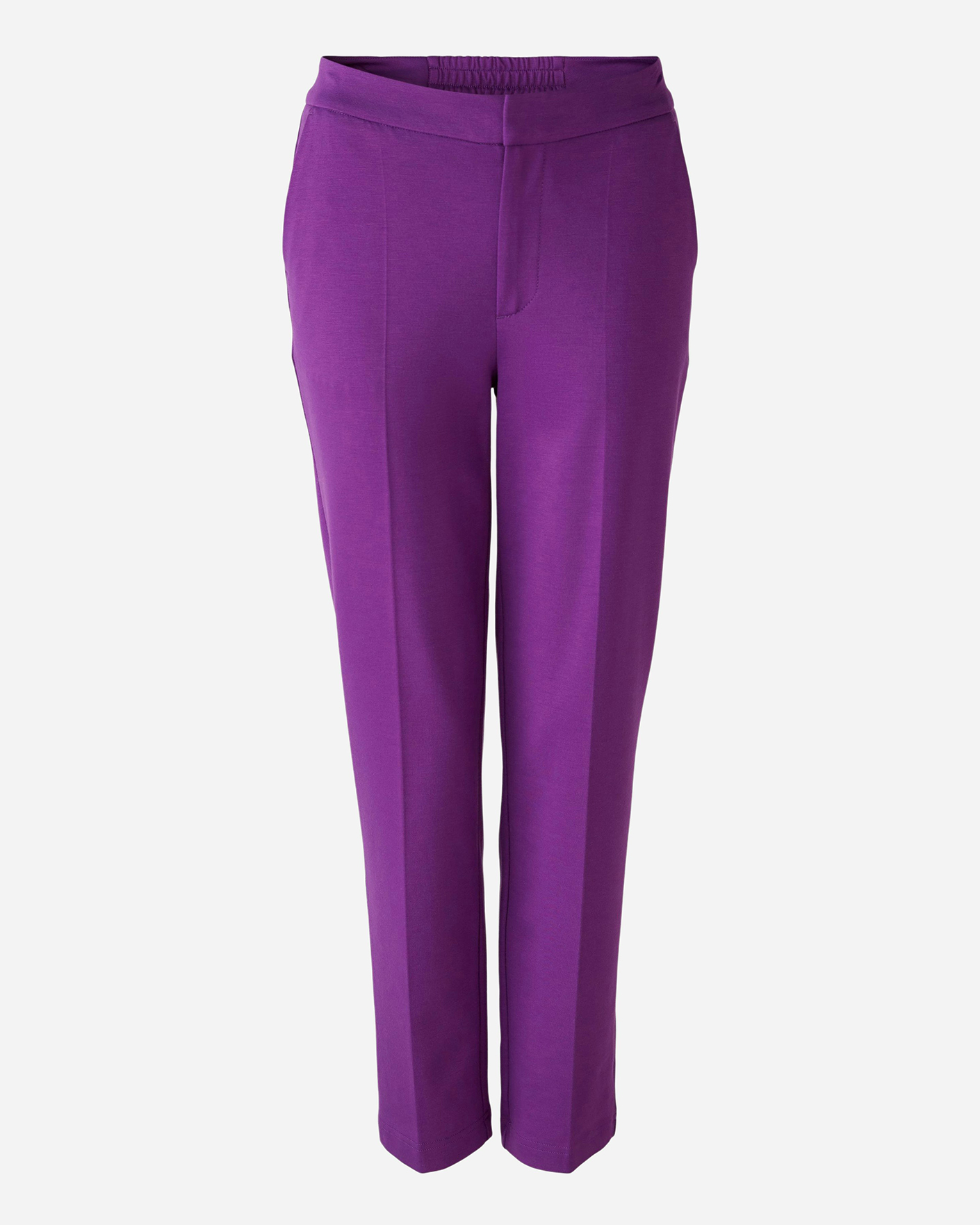 Зауженные брюки OUI сиреневого цвета в строчный рисунок. Модель на скрытой застежке, эластичный пояс по спинке. Имеются врезные карманы по бокам и сзади. Брюки можно сочетать с топом, футболкой, рубашкой, блузой, водолазкой, джемпером, кардиганом и жакетом.