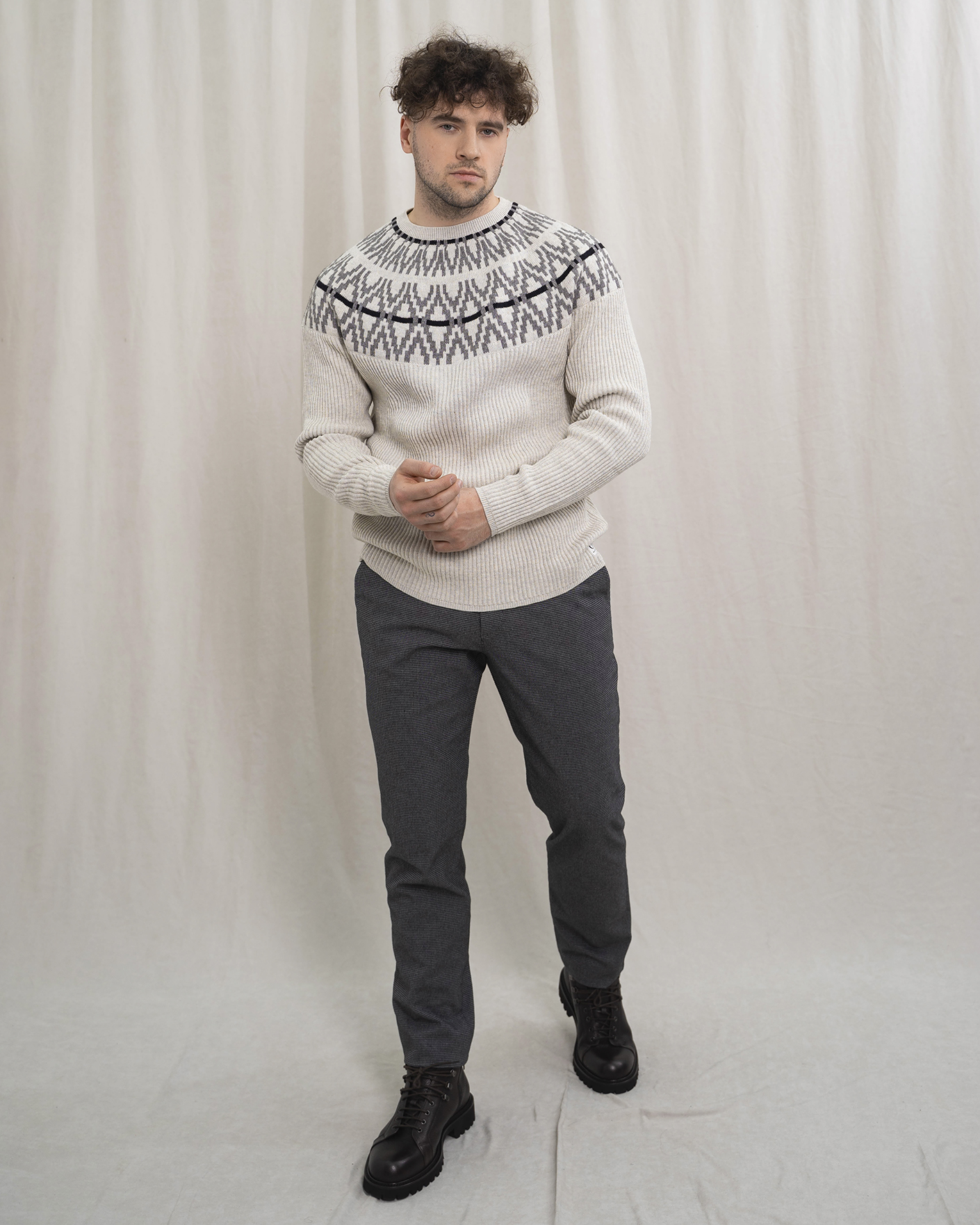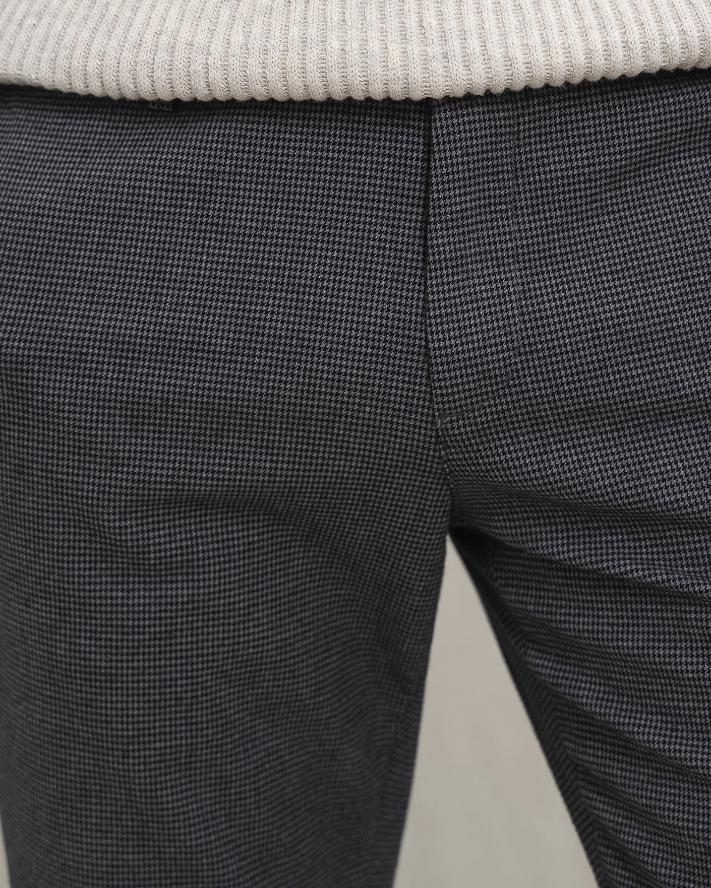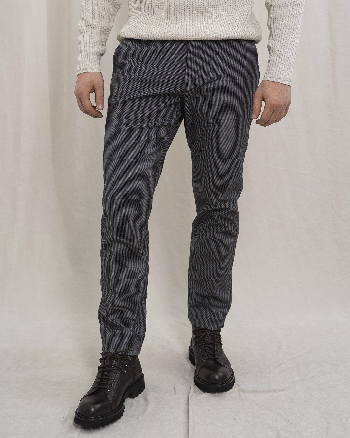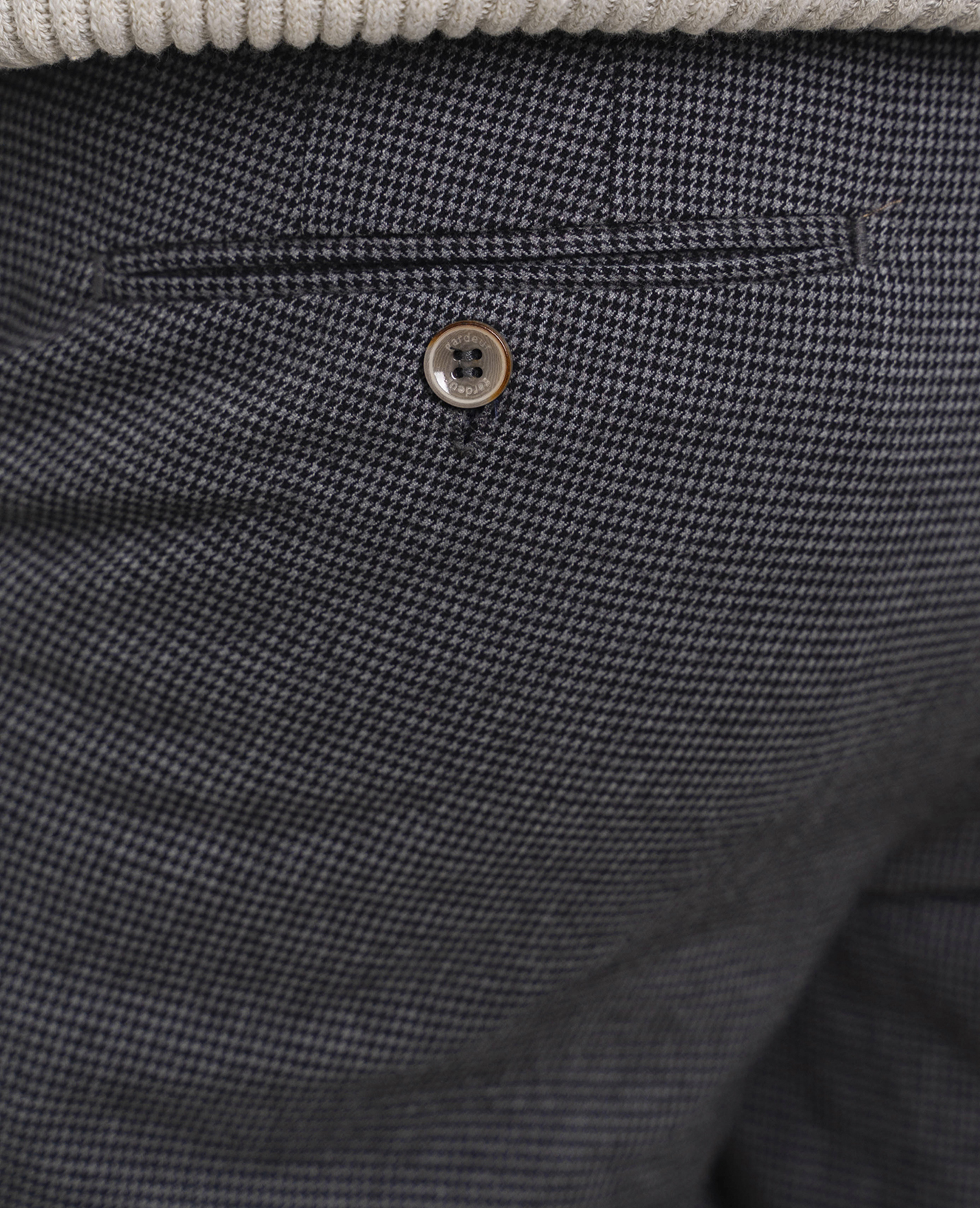 Брюки-чиносы Gardeur серого цвета  в мелкий рисунок гусиные лапки. Модель на стандартной застежке, имеются карманы по бокам и врезные на пуговицах сзади. Чиносы можно сочетать с рубашкой, джемпером, водолазкой, свитером и кардиганом.
