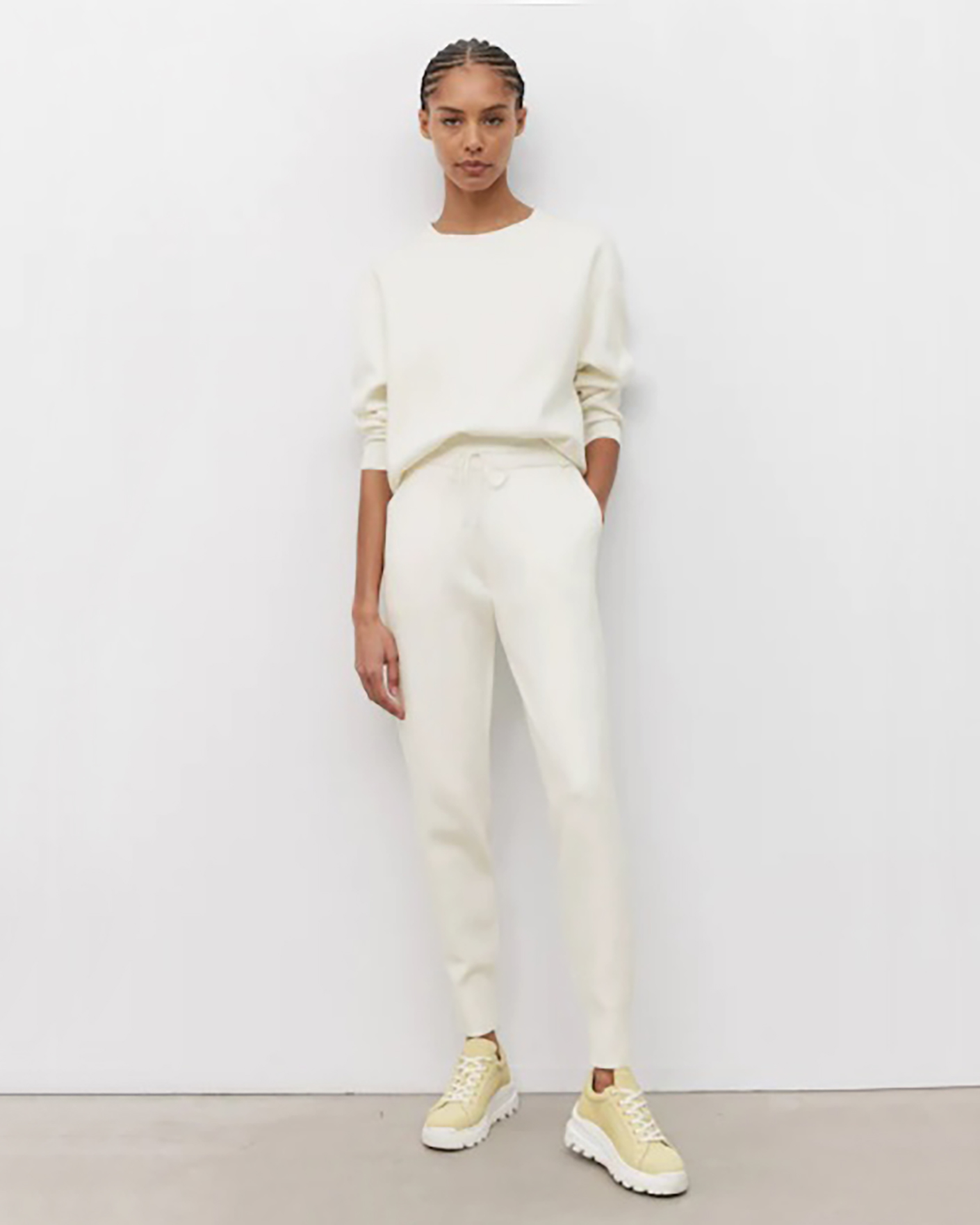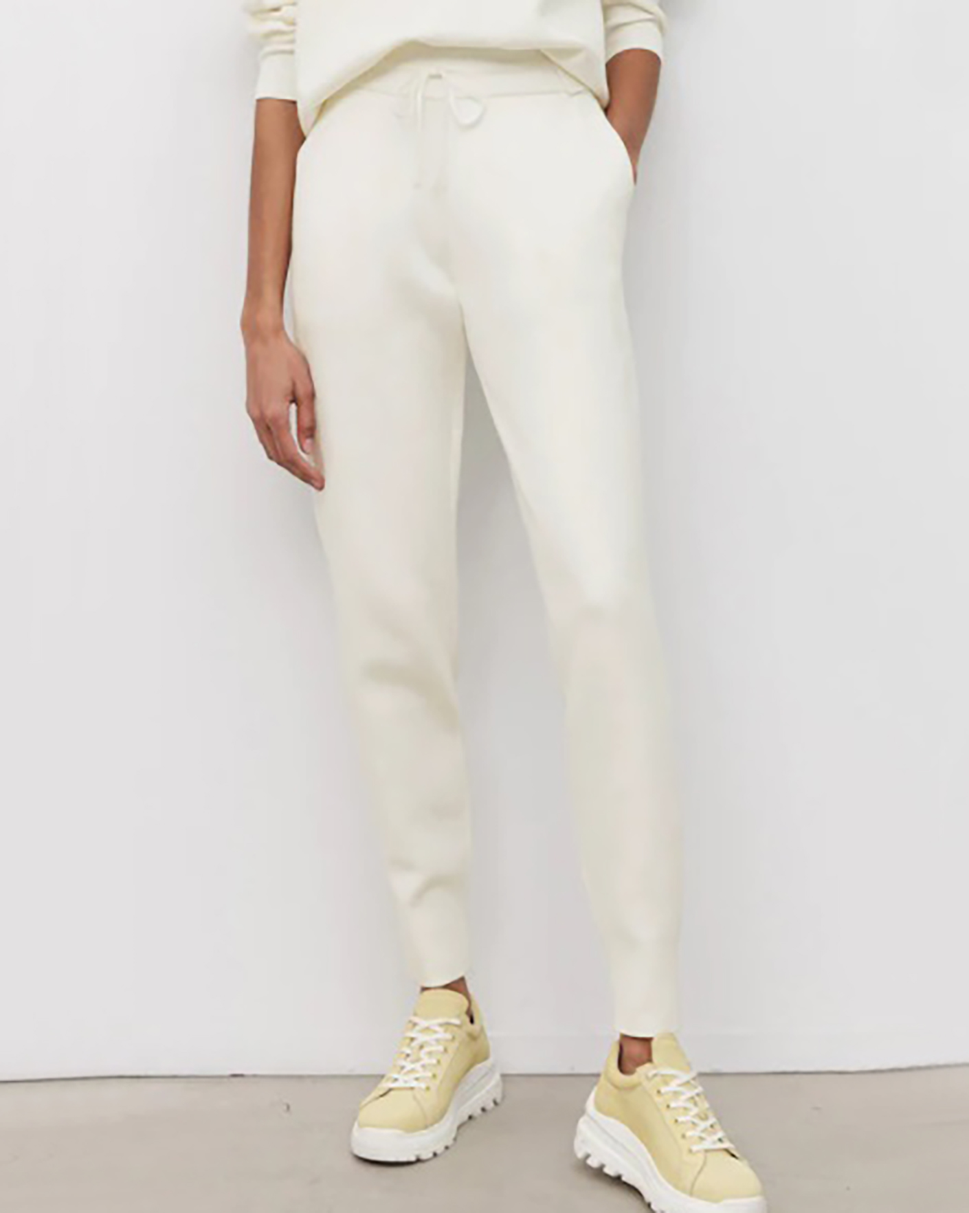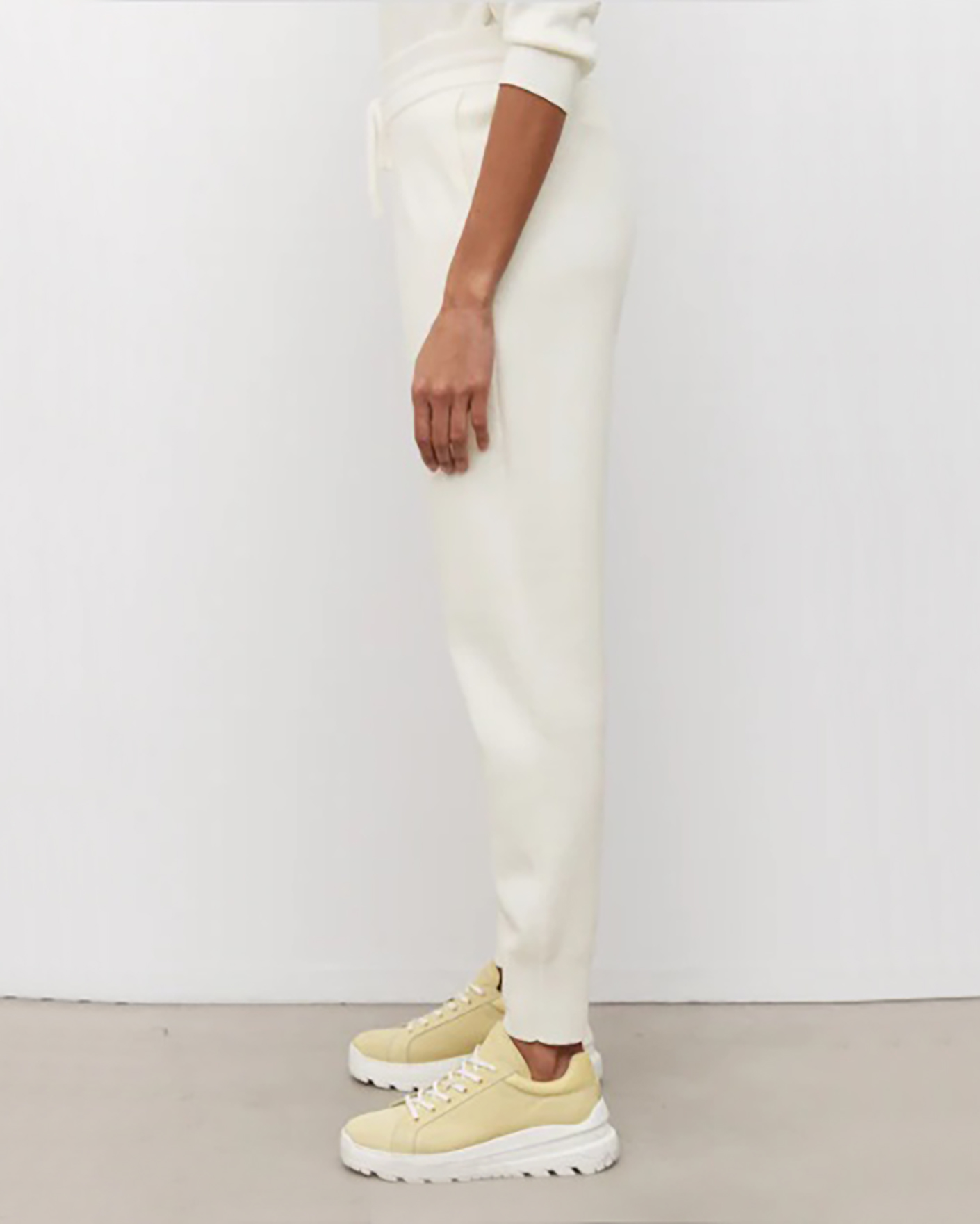 Зауженные брюки-джоггеры Marc O'Polo белого цвета. Хлопковая модель с завышенной талией на вставном шнурке обеспечивает идеальную посадку. Имеются врезные карманы по бокам. Джоггеры отлично сочетаются с футболкой, джемпером, свитшотом и толстовкой.