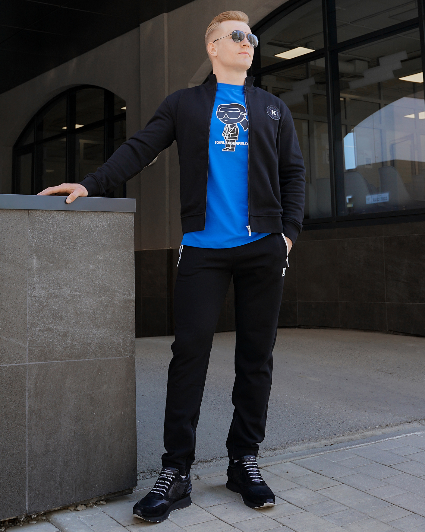 Брюки-джоггеры Karl Lagerfeld черного цвета. Хлопковая модель с поясом на резинке со вставным шнурком. Имеются врезные карманы по бокам на контрастной молнии, а также принтом в виде логотипа. Джоггеры отлично впишутся в ваш гардероб в спортивном стиле.