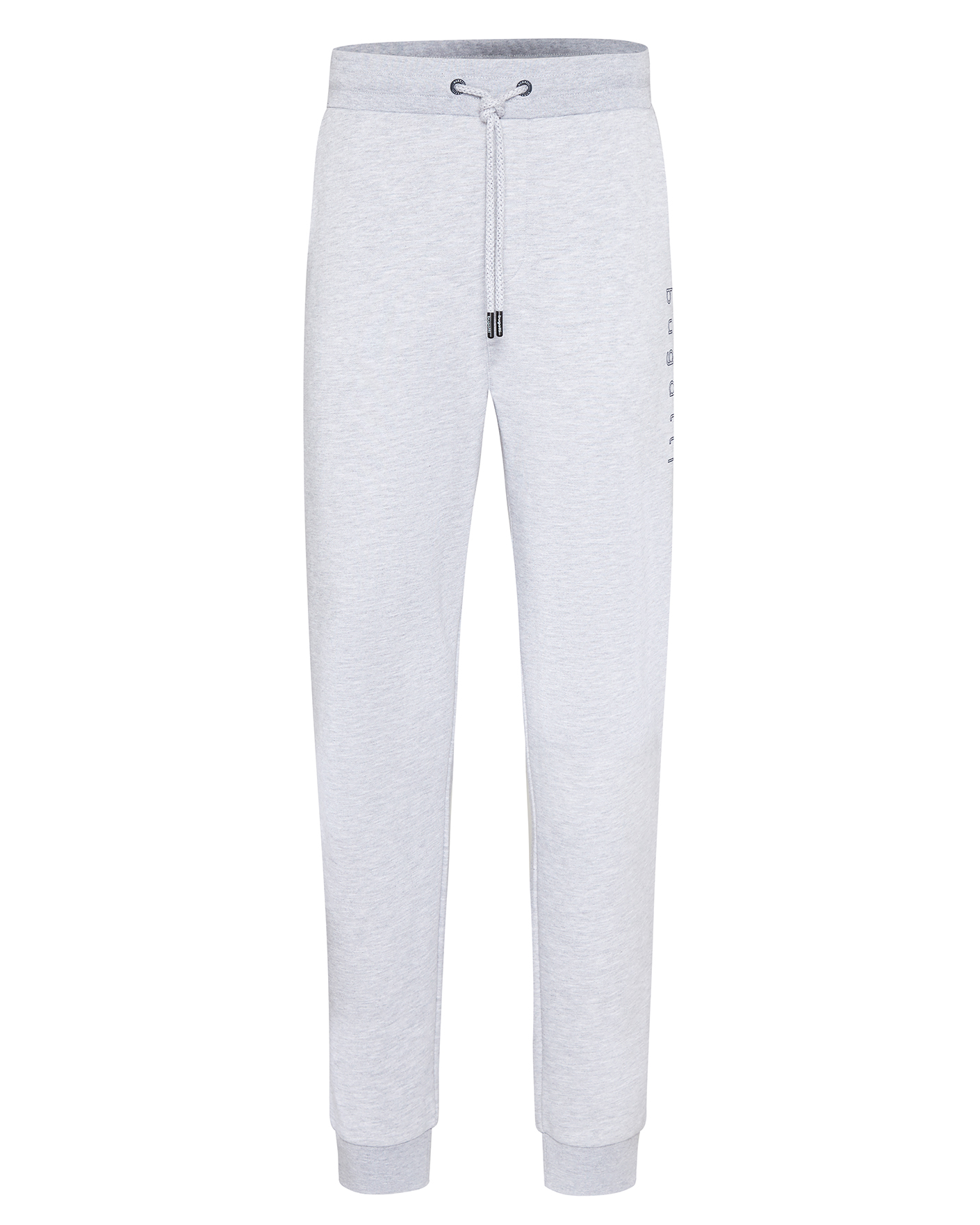 Брюки-джоггеры Bugatti серого цвета с логотипом бренда. Комфортная модель с поясом на резинке и вставном шнурке, имеются врезные карманы по бокам, а также манжеты на резинке. Джоггеры отлично впишутся в ваш гардероб в сопртивном стиле.