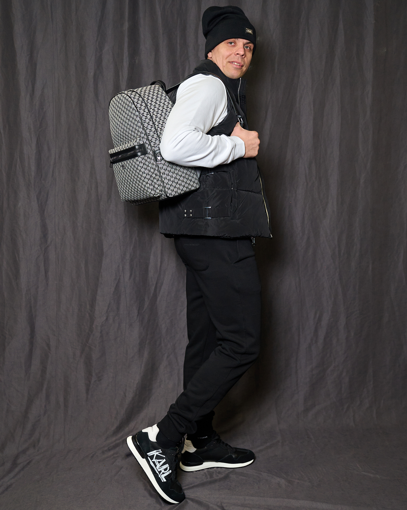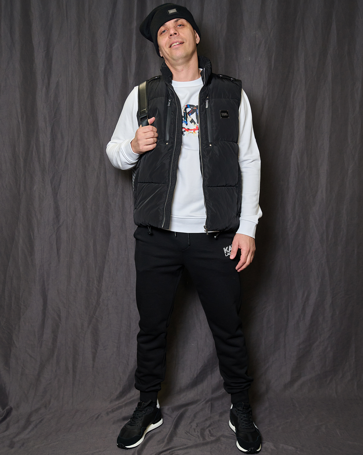 Брюки-джоггеры Karl Lagerfeld черного цвета. Хлопковая модель с поясом на резинке со вставным шнурком. Имеются врезные карманы по бокам на молнии, а также принтом в виде логотипа. Манжеты на тонкой резинке. Джоггеры отлично впишутся в ваш гардероб в спортивном стиле.