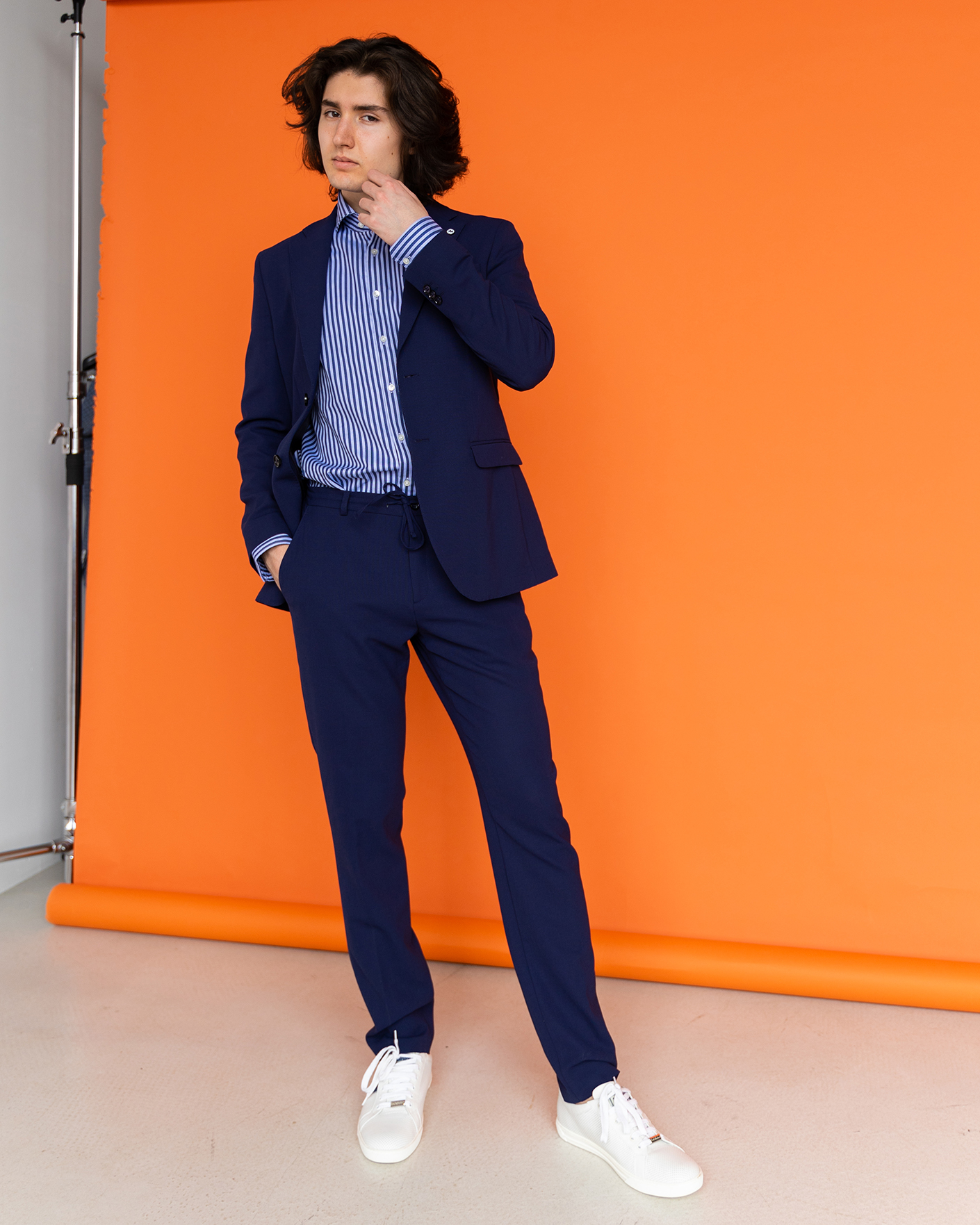 Брюки-джоггеры Truvor фиолетово-синего цвета в мелкий строчный рисунок. Модель со вставным шнурком на поясе, что обеспечивает идеальную посадку. Имеются врезные карманы по бокам иврезные карманы на пуговице сзади. Джоггеры отлично сочетаются с рубашкой, водолазкой, джемппером, свитером и пиджаком.