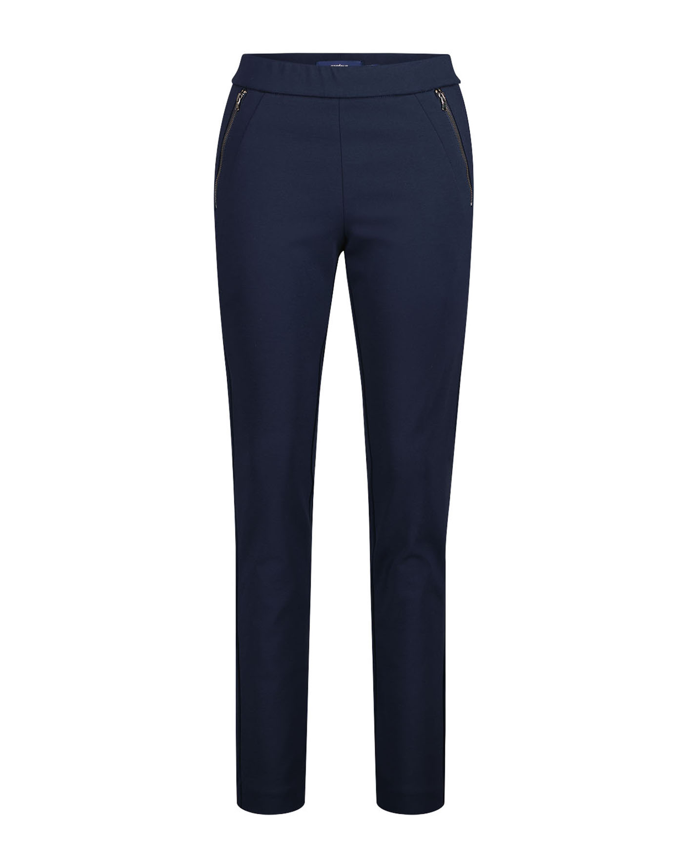 Зауженные брюки-джоггеры Gardeur серо-синего цвета. Модель на эластичном поясе, имеются боковые  карманы на молнии и врезные сзади. Джоггеры отлично впишутся в ваш гардероб.