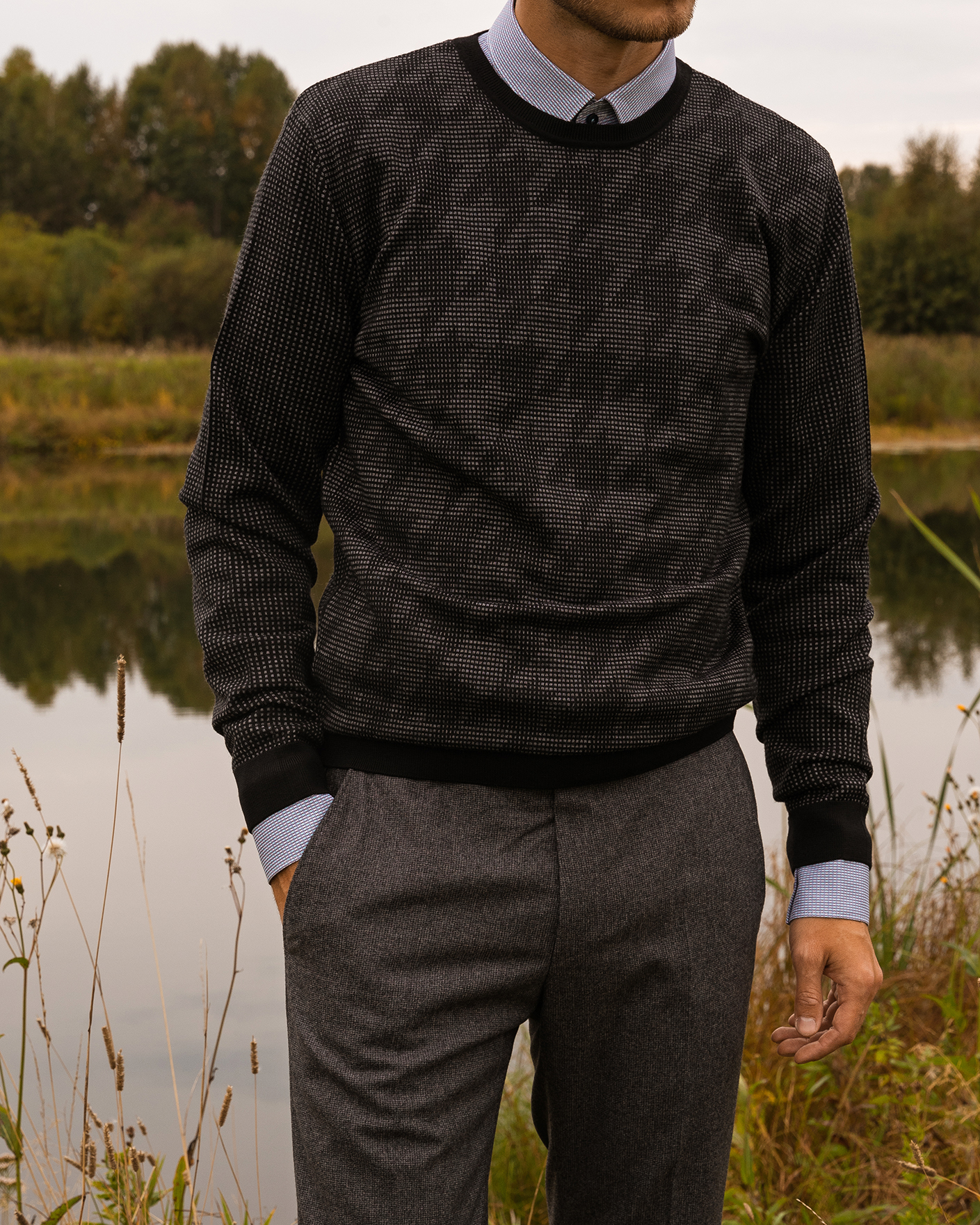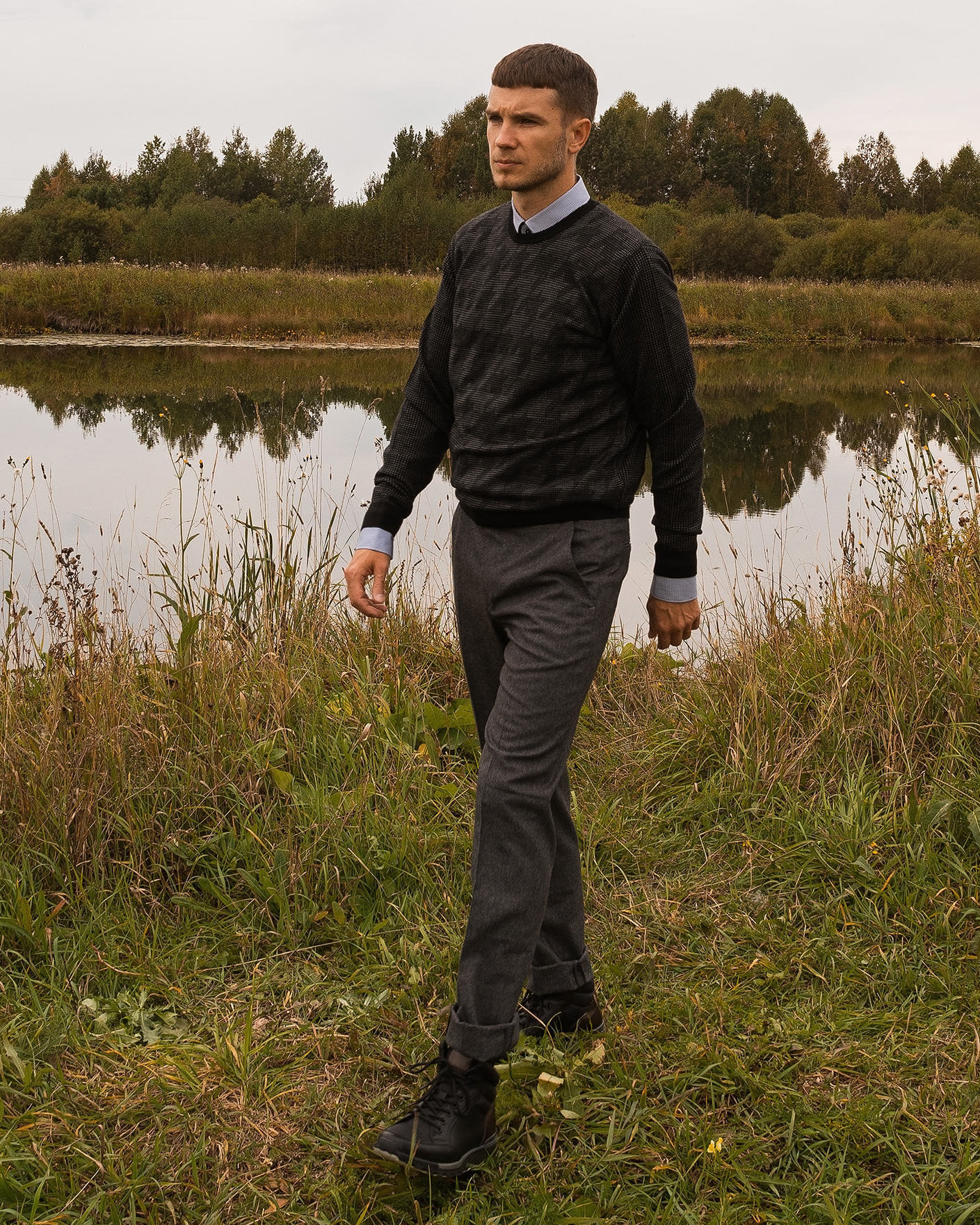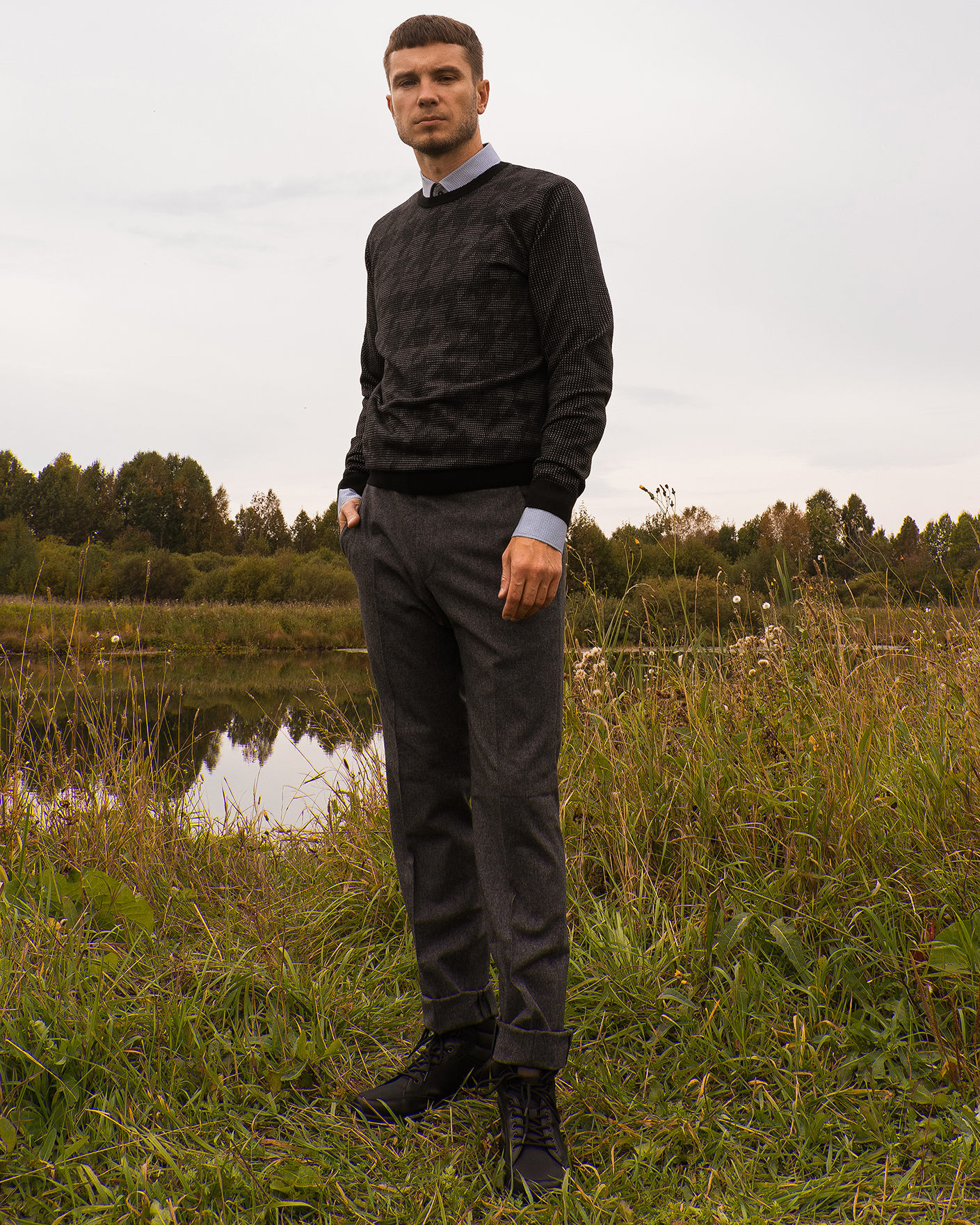 Классические брюки Digel серого цвета в мелкий, твидовый рисунок. Шерстяная модель с базовой застежкой, косыми карманами по бокам и двумя врезными карманами на пуговице сзади. Брюки - незаменимая часть вашего делового гардероба.