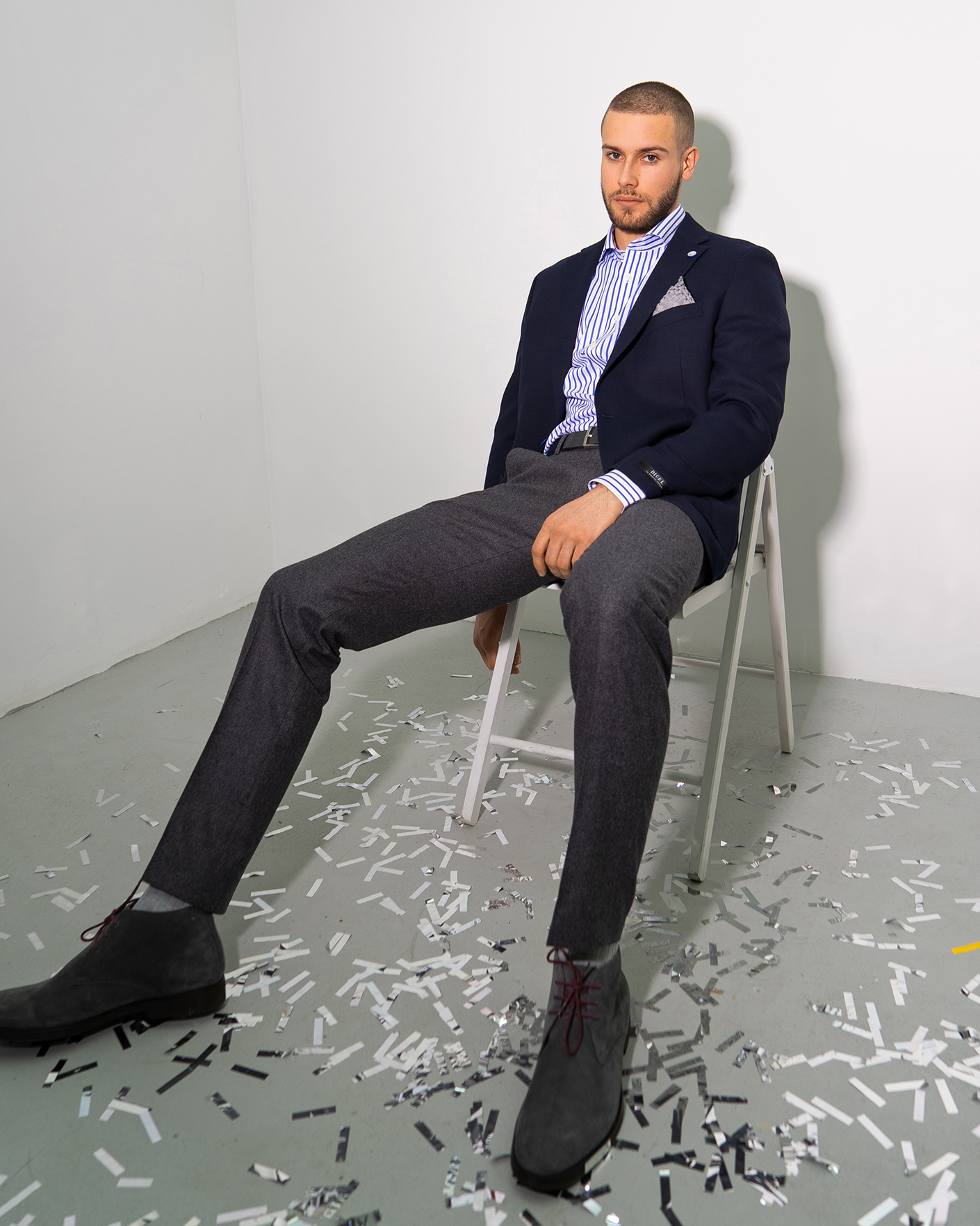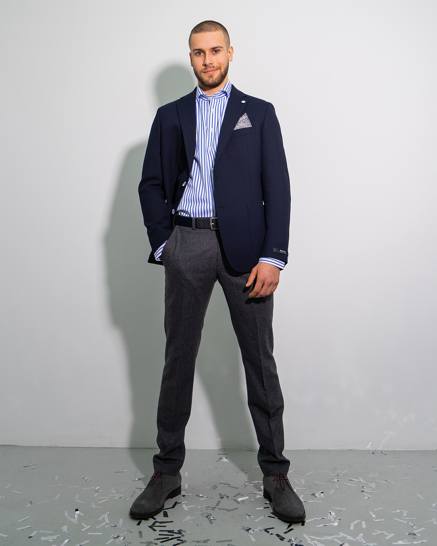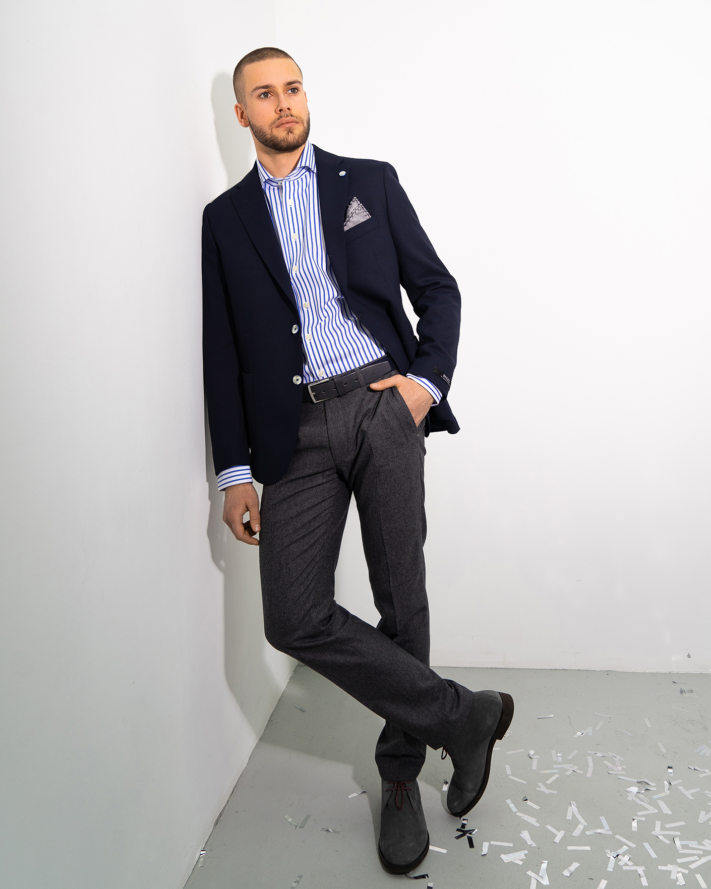 Классические брюки Digel серого цвета в мелкий, твидовый рисунок. Шерстяная модель с базовой застежкой, косыми карманами по бокам и двумя врезными карманами на пуговице сзади. Брюки - незаменимая часть вашего делового гардероба.