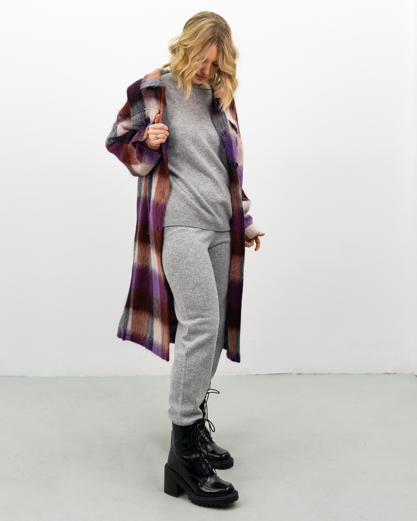 Брюки-джоггеры-бананы OUI светло-серого цвета в мелкую текстуру. Модель с поясом на резинке со вставным шнурком, также манжеты на тонкой резинке. Имеются врезные карманы по бокам. Джоггеры-бананы отлично счоетаются с футболкой, водолазкой, джемпером и свитером.