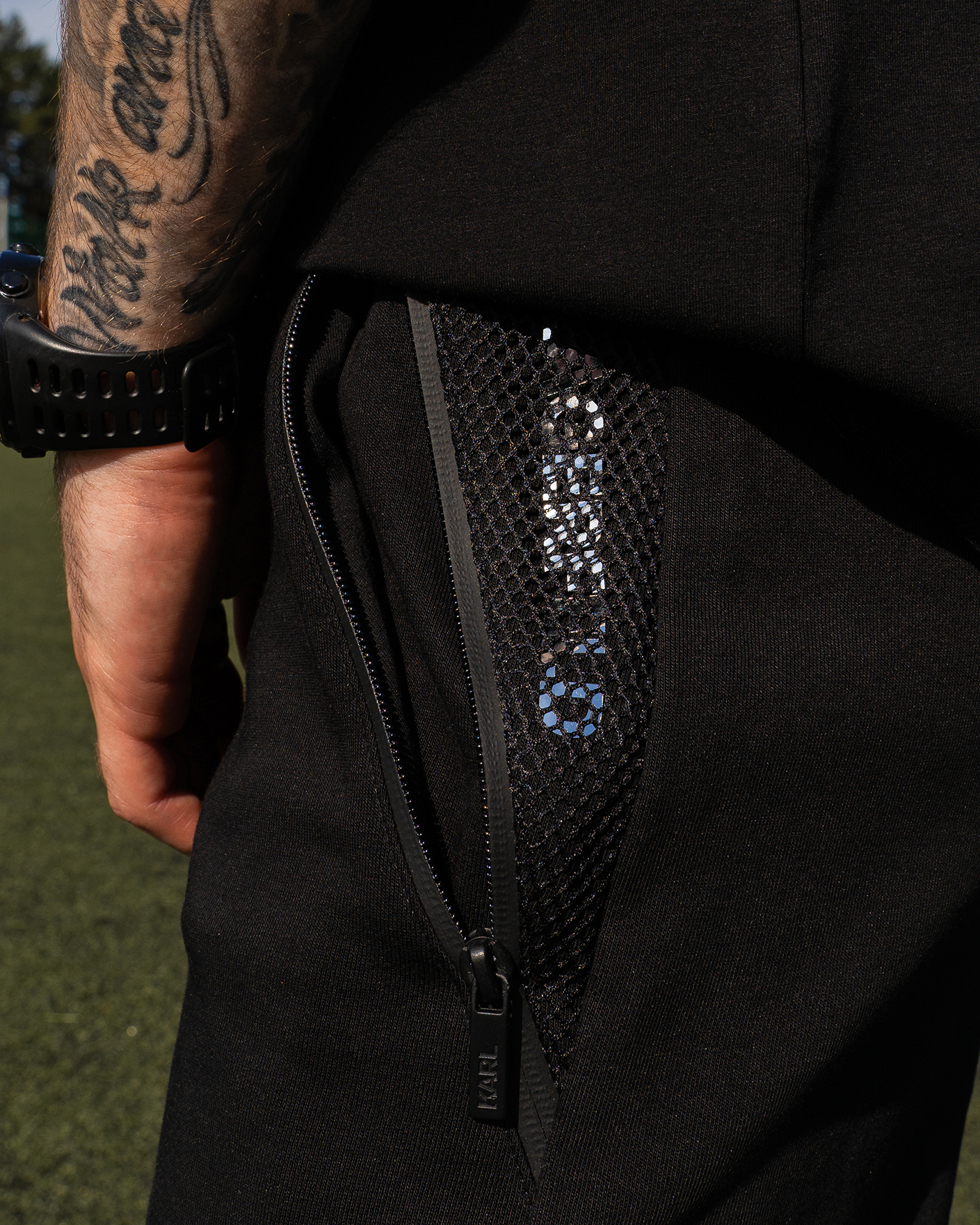 Брюки-джоггеры Karl Lagerfeld черного цвета. Хлопковая модель на резинке со вставным шнурком в тон. Имеются косые карманы по бокам, декорированные сеткой с логотипом бренда. Манжеты на широкой, тонкой резинке. Брюки-джоггеры станут фаворитами вашего гардероба в спортивном стиле.