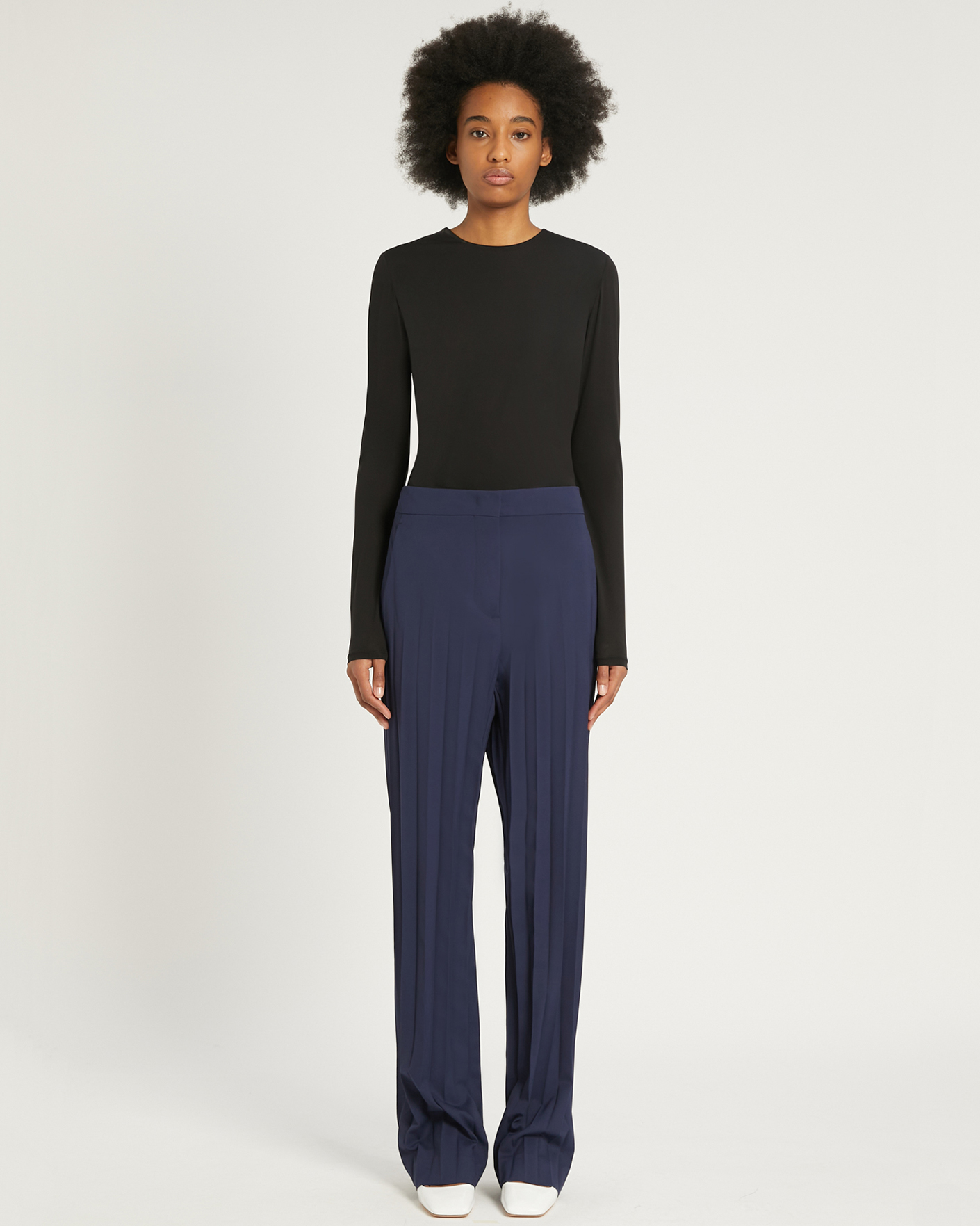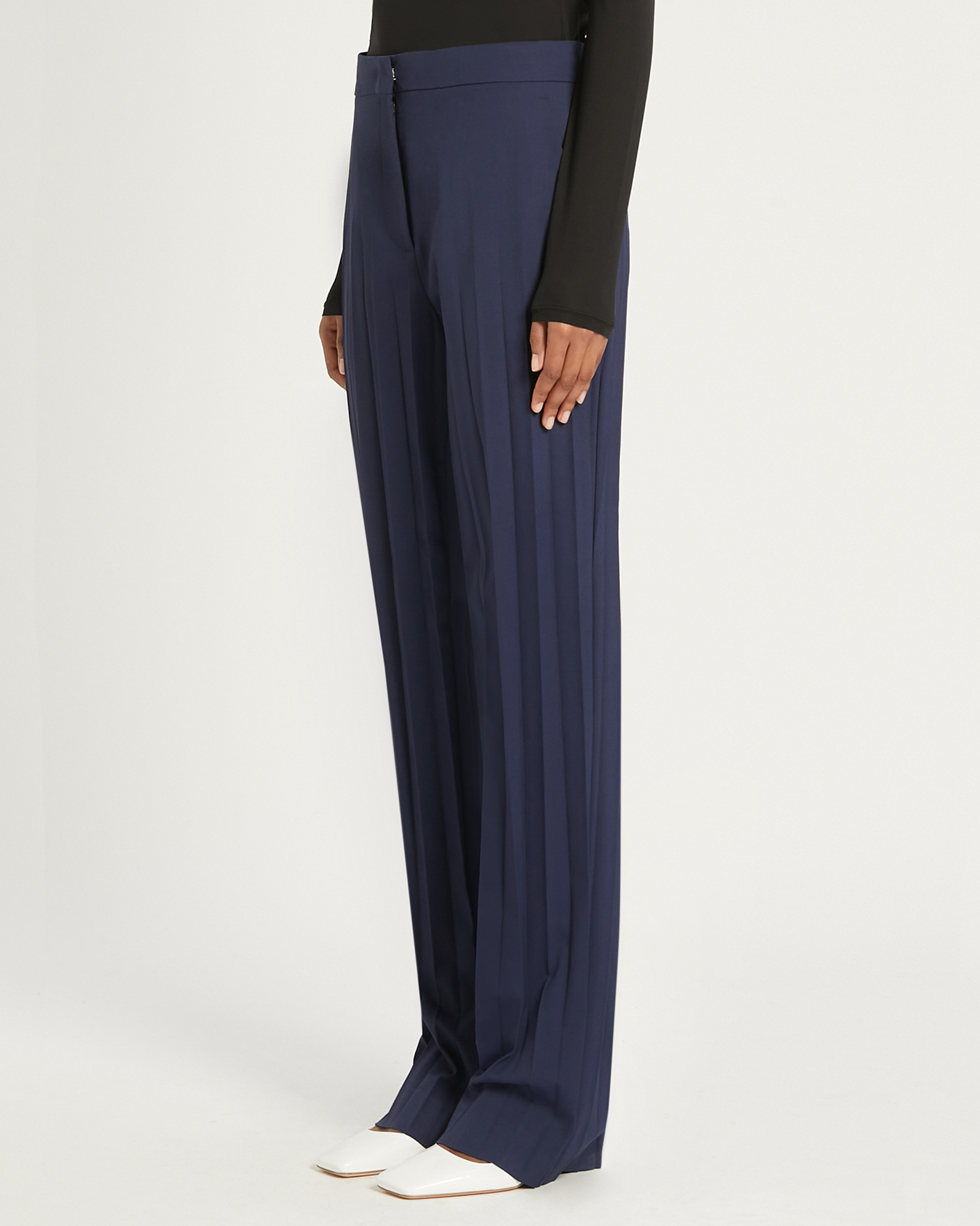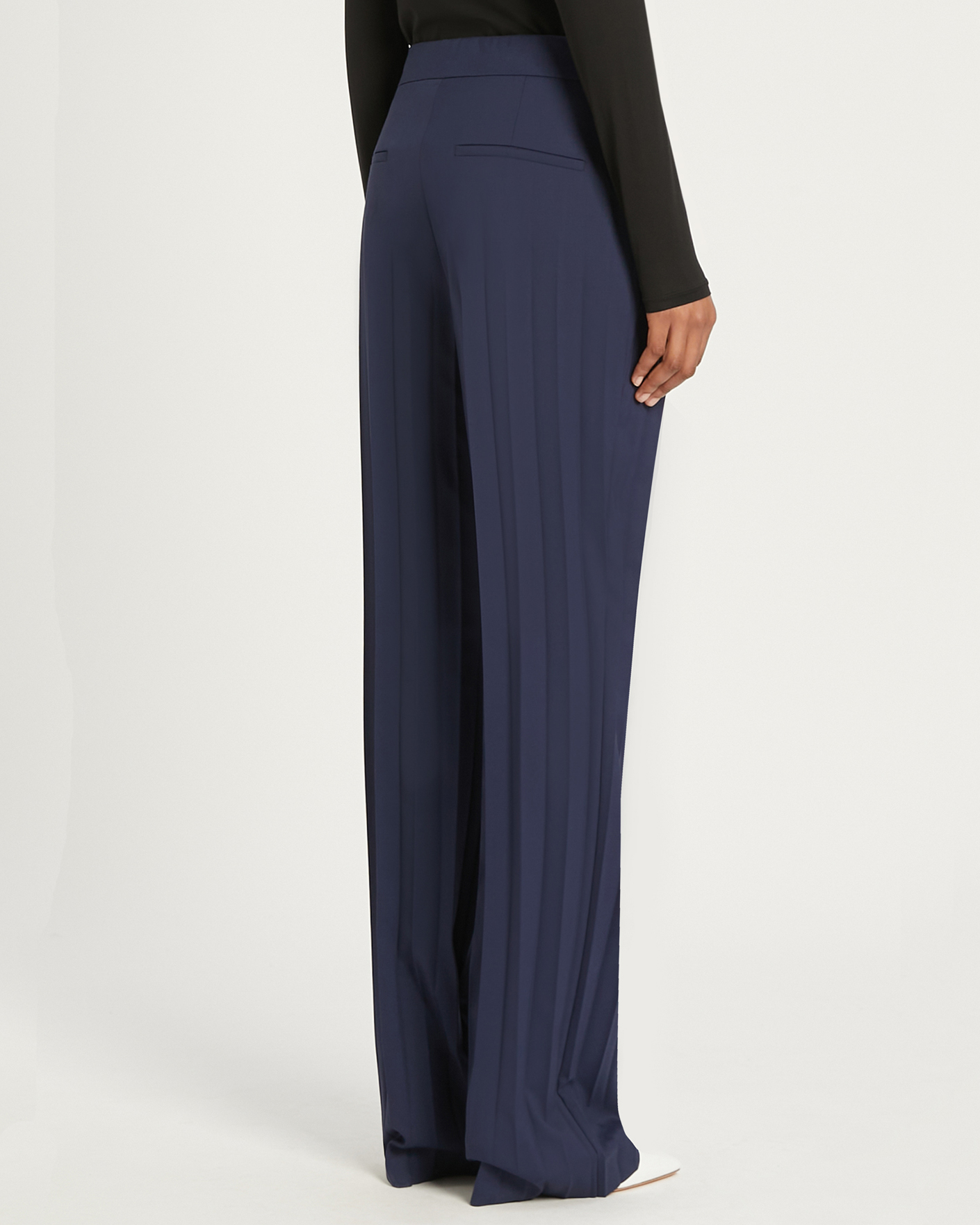 Брюки-палаццо Sportmax фиолетово-синего цвета с широкими плиссированными штанинами, создающими инновационный эффект. Имеются косые боковые карманы. Брюки-палаццо сделают ваш образ шикарным и стильным.