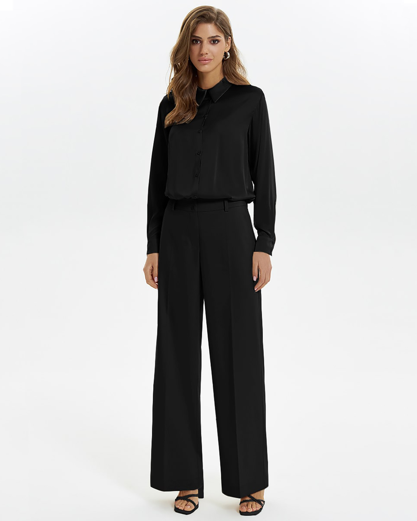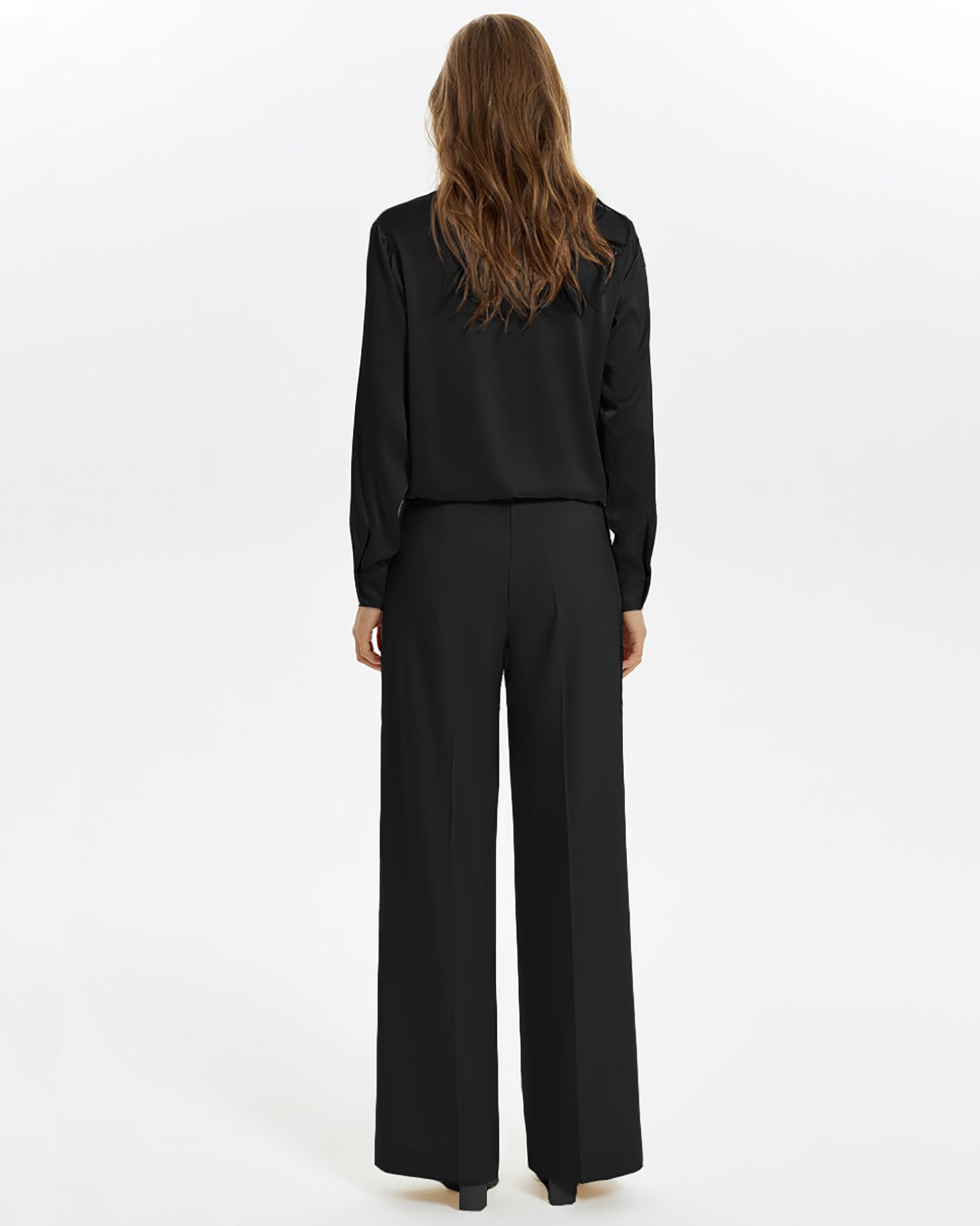 Широкие брюки Devita черного цвета со стрелками спереди и сзади. Модель с завышенной талией на стандартной застежке, имеются врезные карманы по бокам. Классические брюки станут незаменимой вещью вашего гардероба.