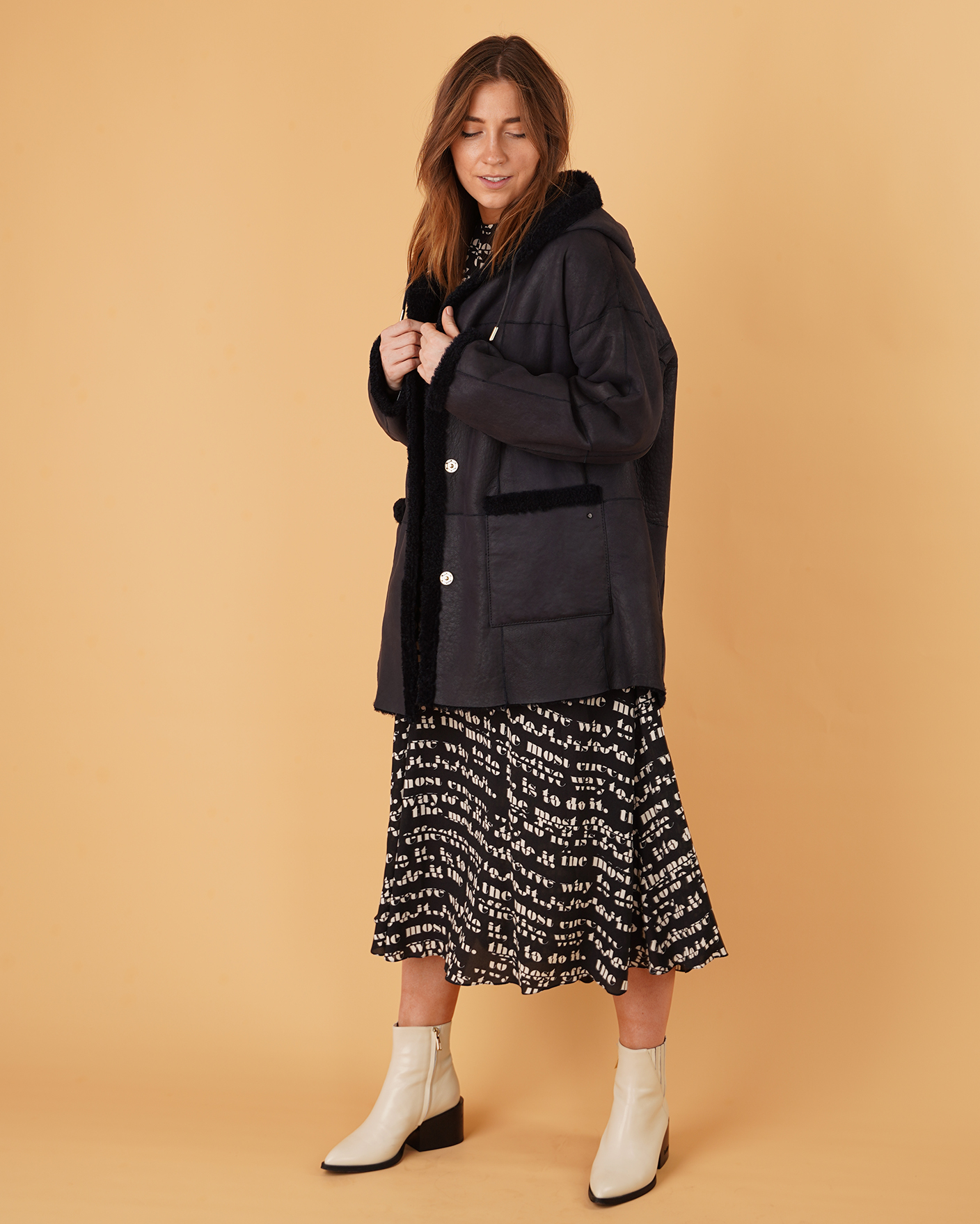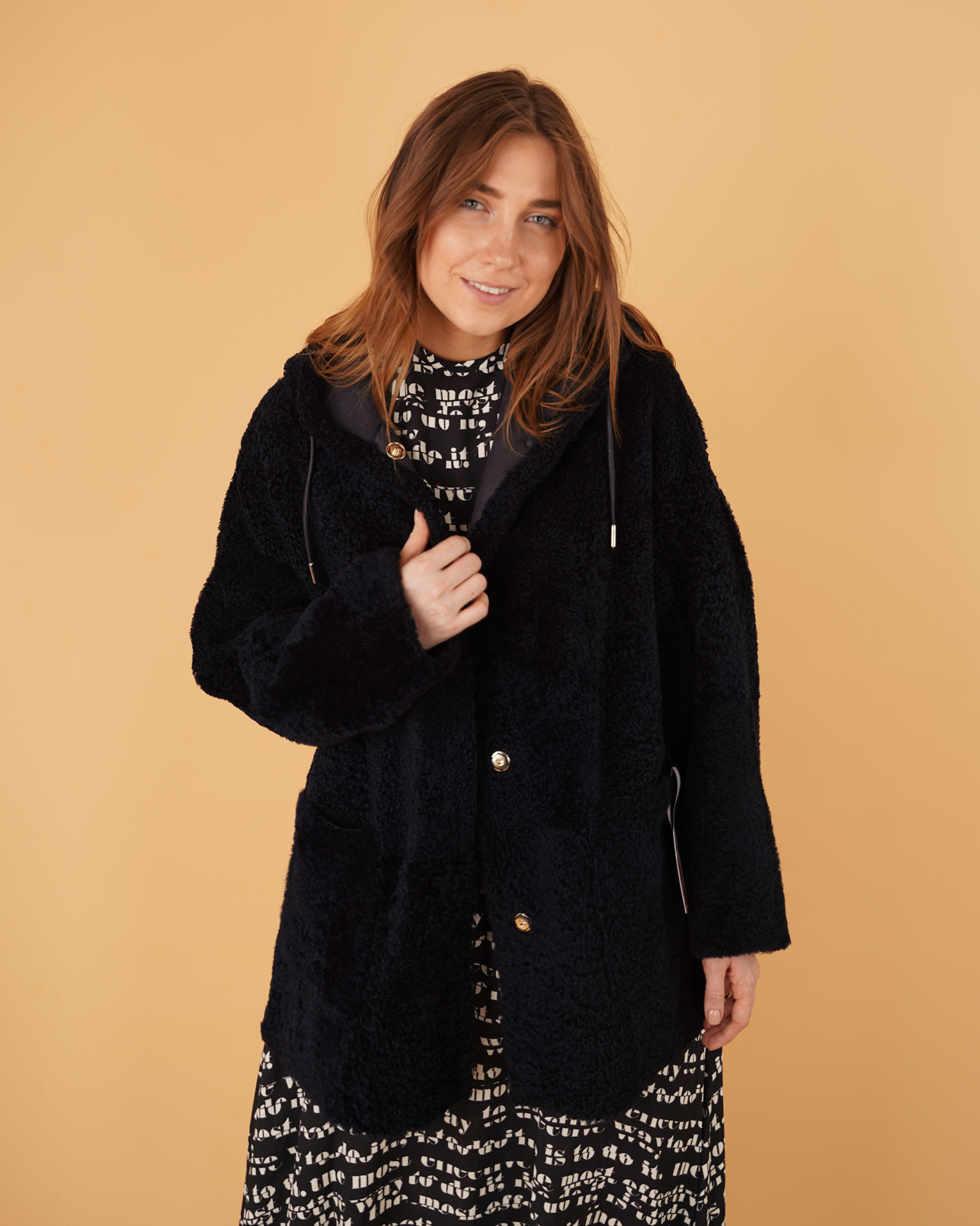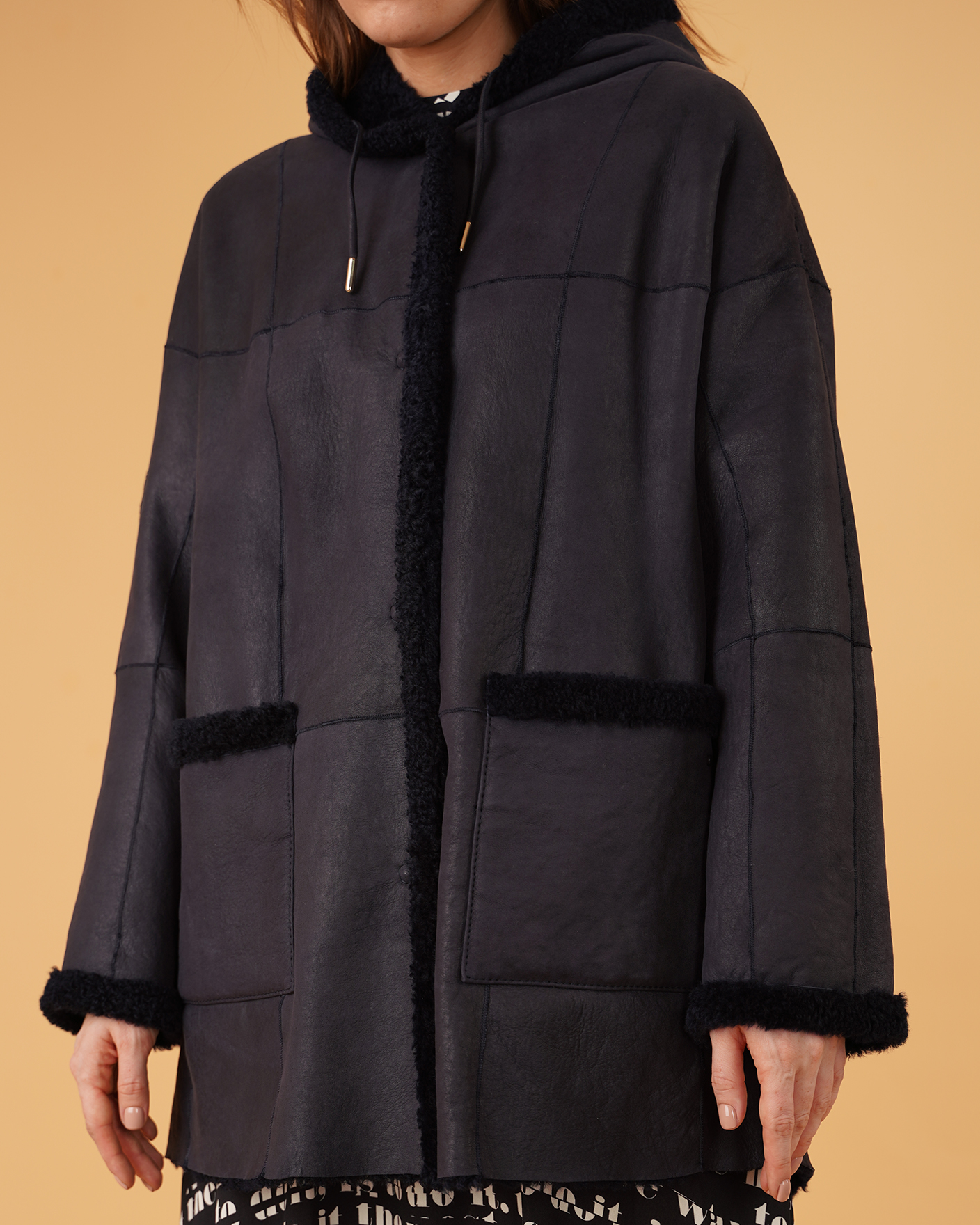 Куртка-дубленка Werner Christ фиолетово-синего цвета - воплощение чистой роскоши. Модель можно носить с обеих сторон: меховой или кожаной стороной наружу. Куртка-дубленка с капюшоном, с застежкой на незаметные кнопки и боковыми карманами, с небольшой отделкой на кожаной стороне. Если носить мех снаружи, куртка смотрится стильно и брозко, а , когда кожаной стороной снаружи, образ выглядит более спортивным.