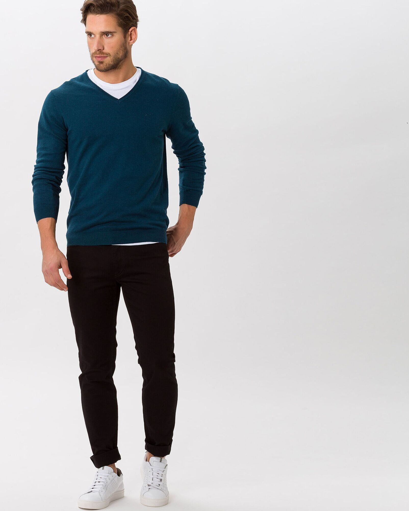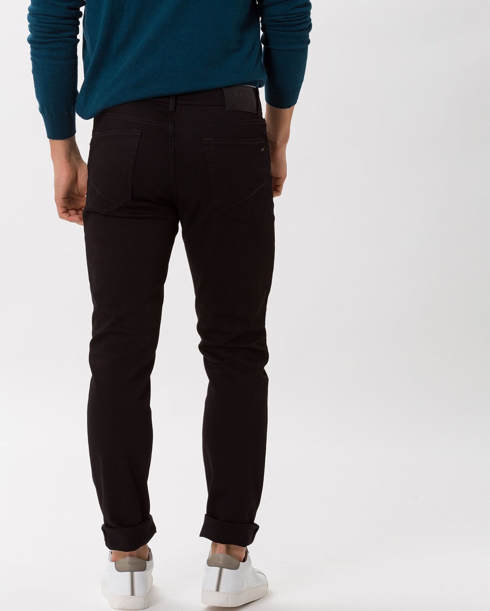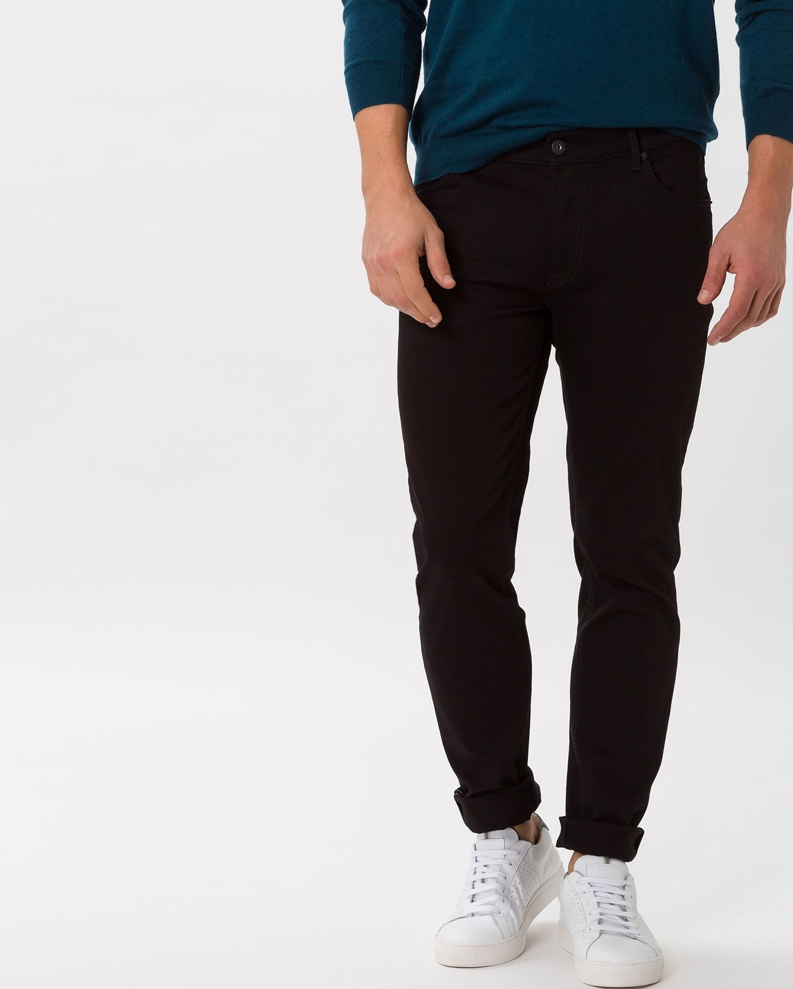 Джинсы Brax черного цвета в диагональный строчный рисунок. Хлопковая модель на стандартной застежке, карманы по бокам и накладные сзади. Джинсы - базовая вещь на каждый день.
