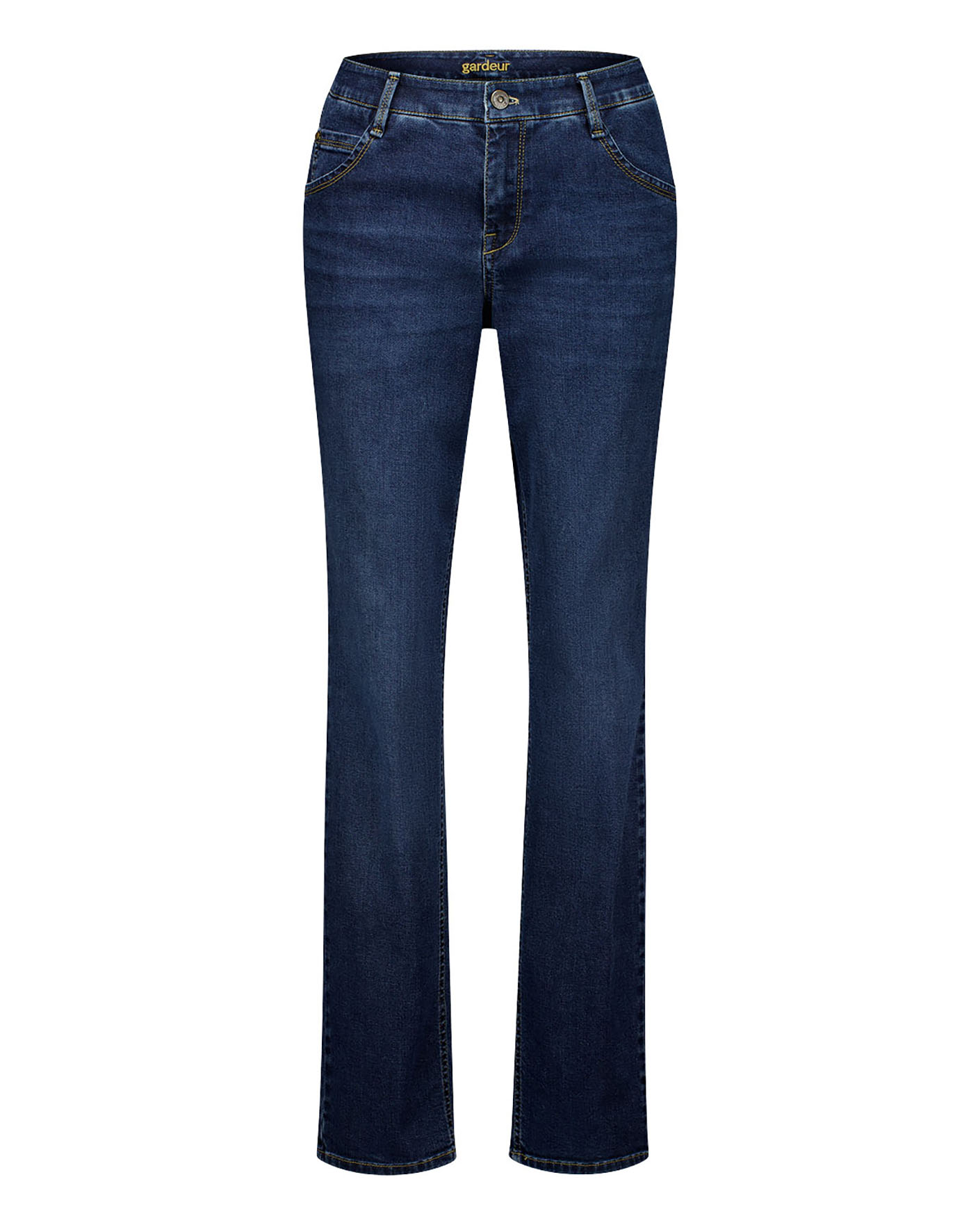 Зауженные джинсы Gardeur темно-синего цвета с небольшим отбеленным эффектом. Модель с завышенной талией на стандартной застежке. Имеются карманы по бокам и накладные сзади. Джинсы - универсальная вещь на каждый день.