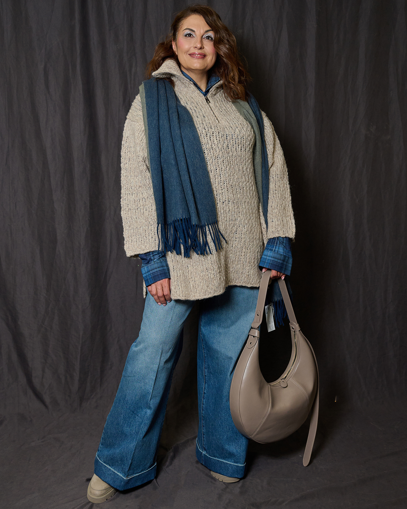 Стильный образ на каждый день: свитер, рубашка, джинсы-кюлоты