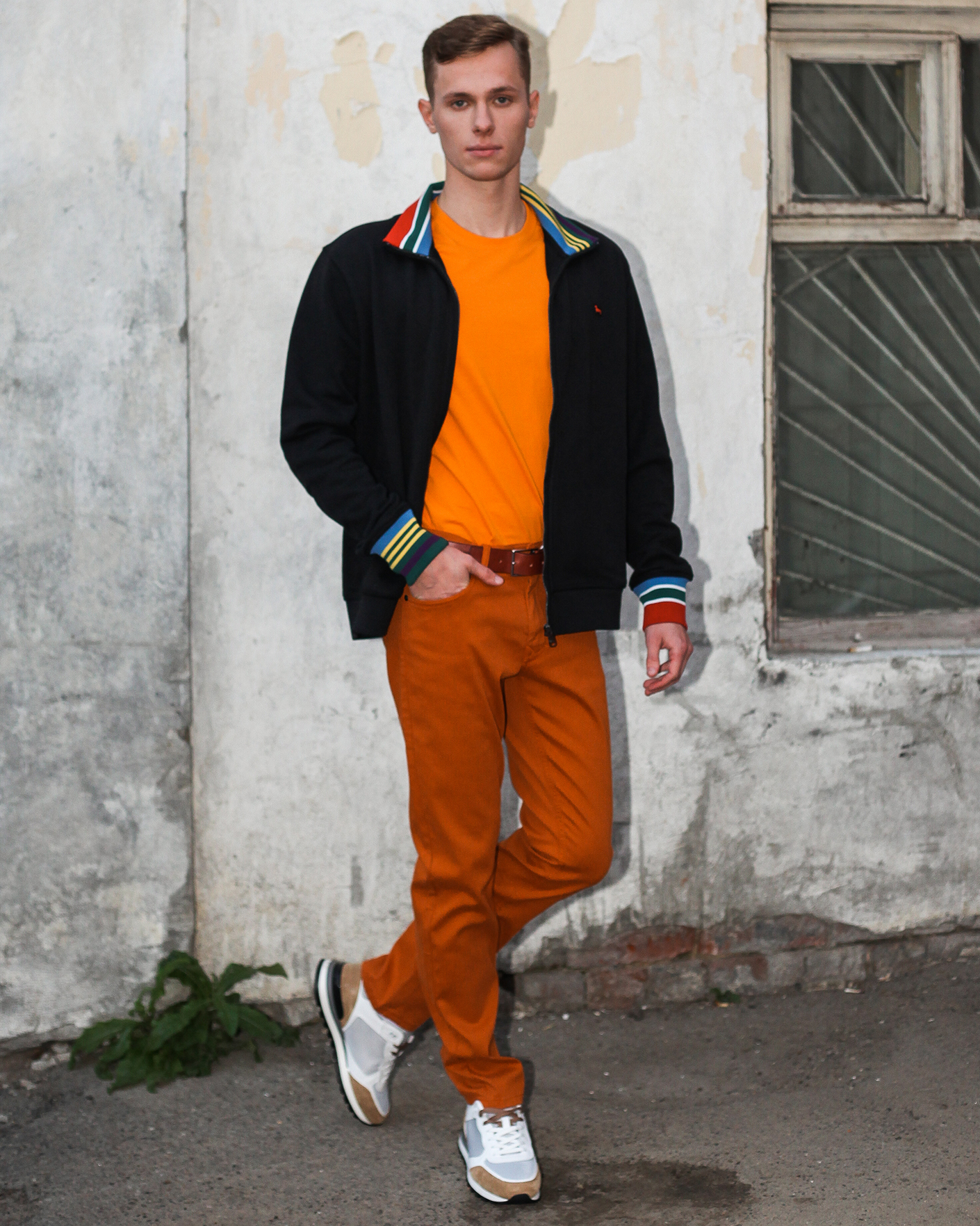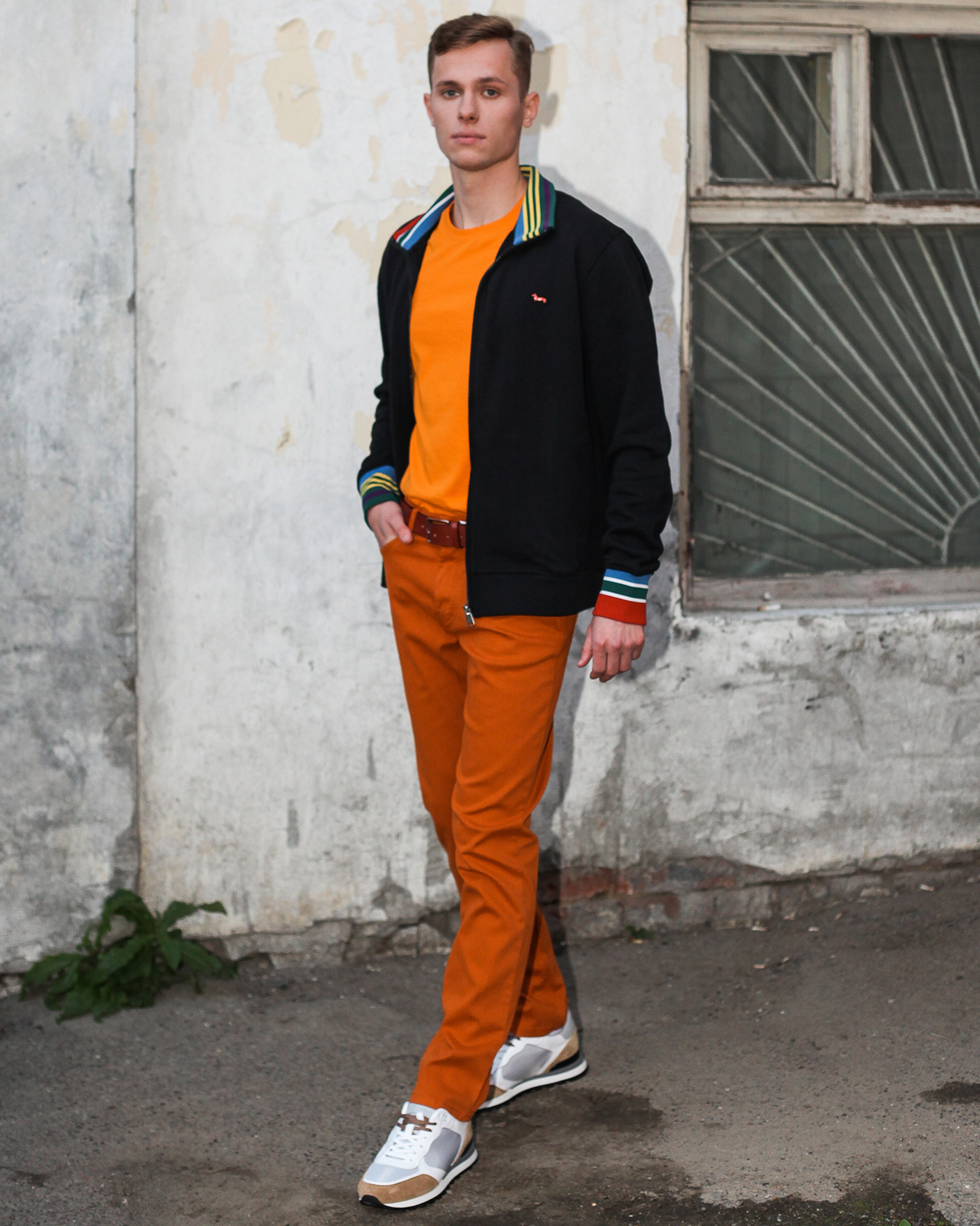 Джинсы Harmont&Blaine оранжевого цвета в строчную вертикальную полосу. Модель из 100% хлопка на стандартной застежке, имеются карманы по бокам и накладные сзади. Джинсы отлично впишутся в повседневный гардероб.