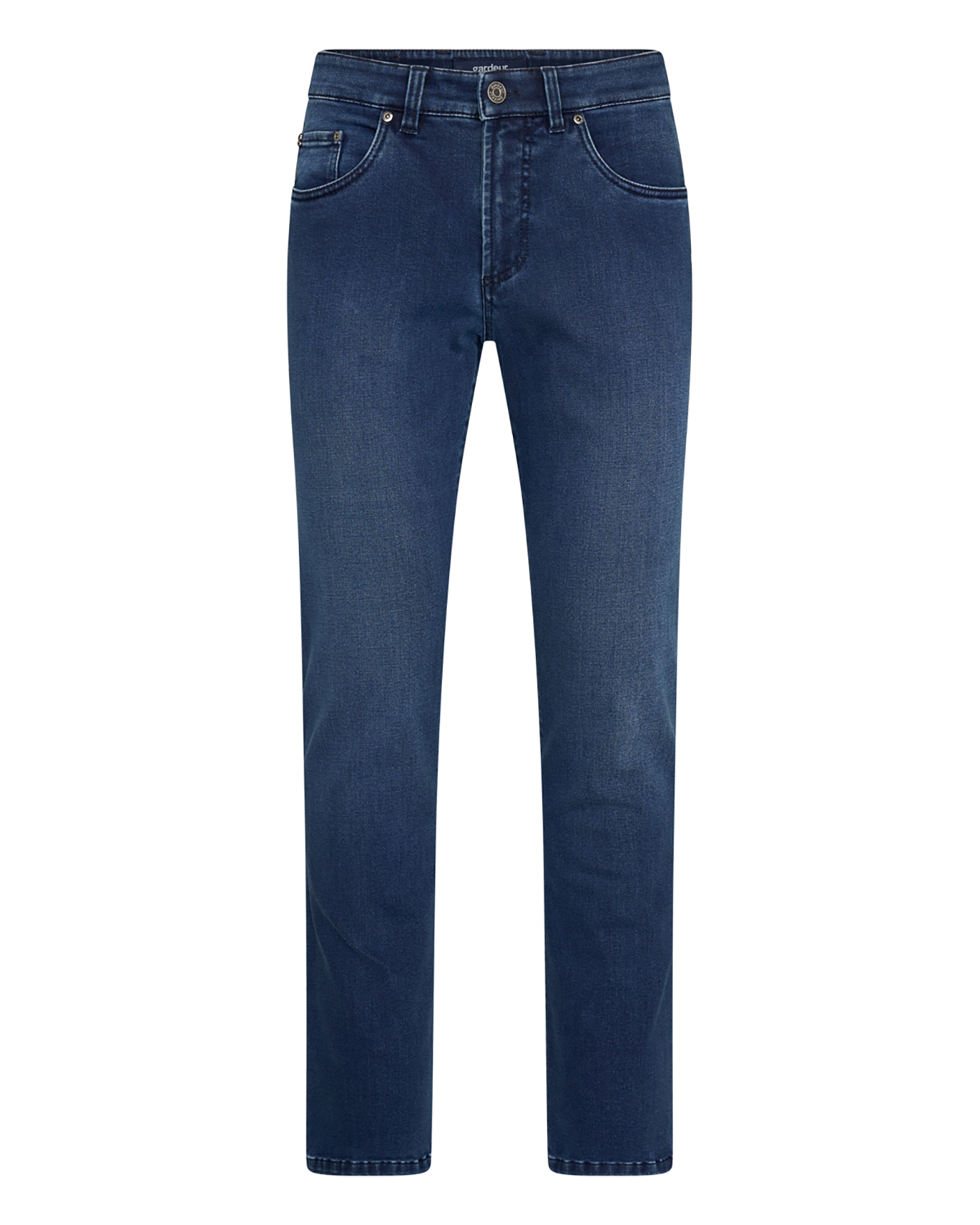 Джинсы Gardeur синего цвета. Хлопковая модель на стандартной застежке, имеются карманы по бокам и накладные сзади. Джинсы - идеальная база на каждый день.