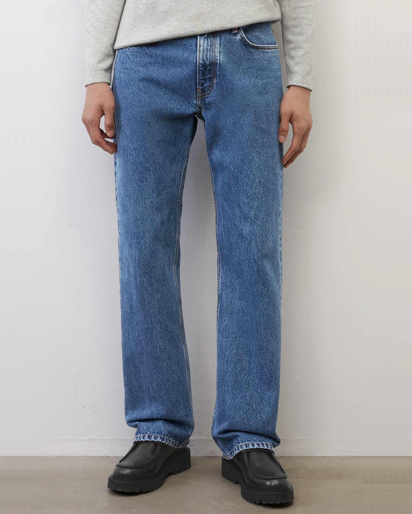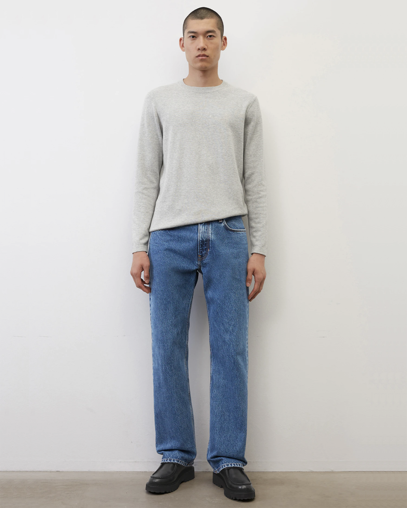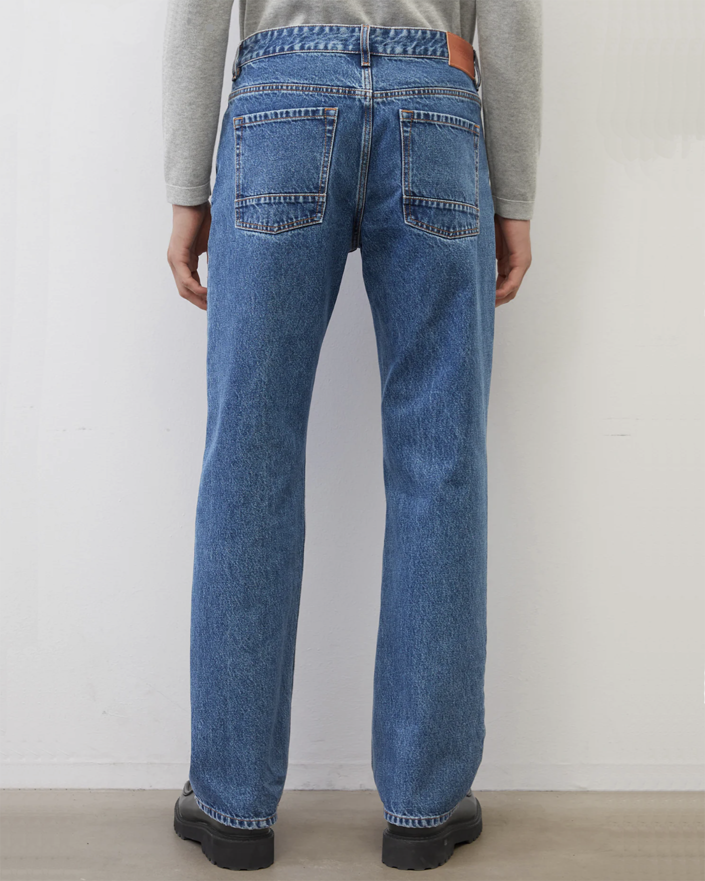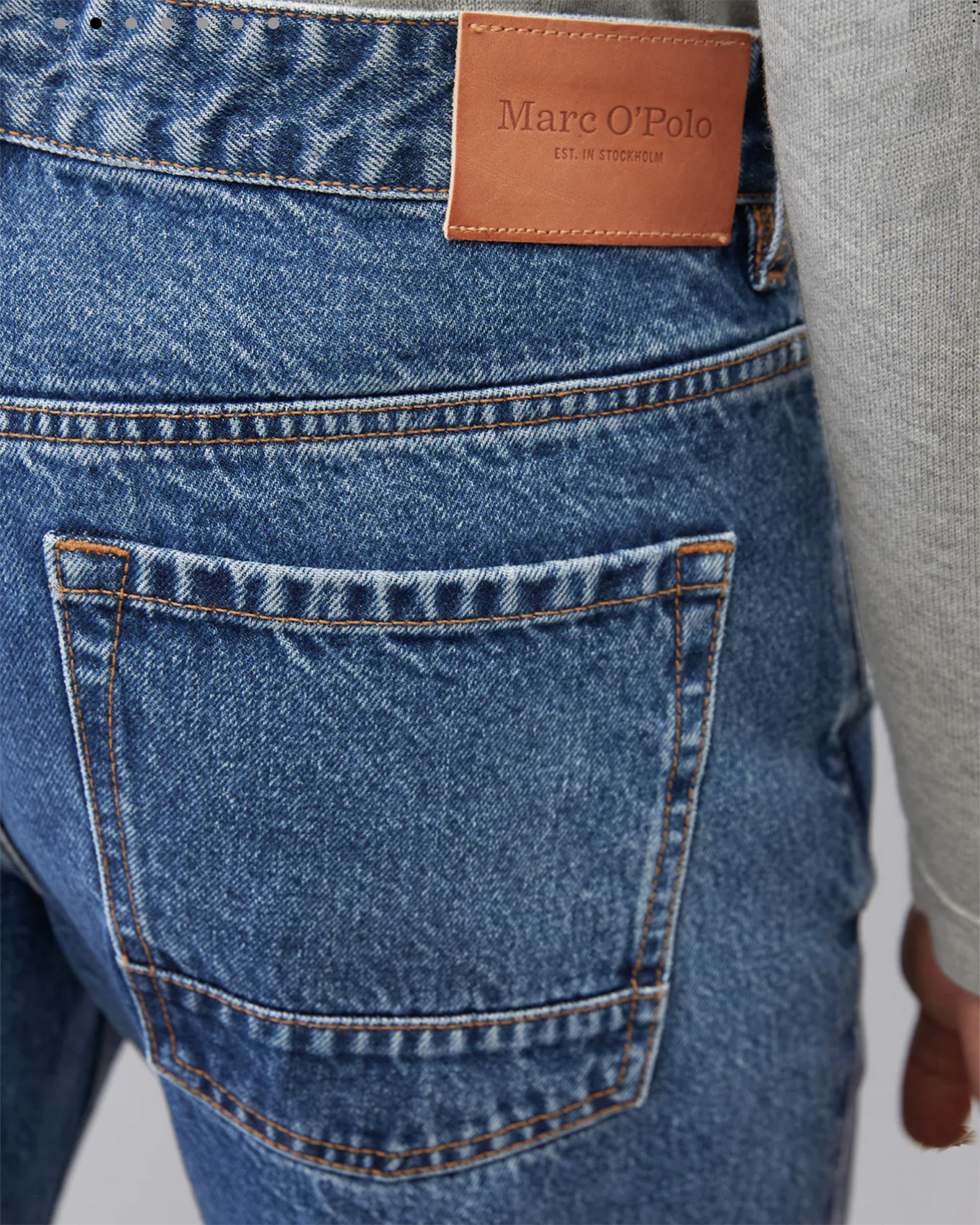 Джинсы Marc O'Polo синего цвета со слегка отбеленным эффектом. Модель из 100% хлопка на стандартной застежке, имеются карманы по бокам и накладные сзади. Джинсы отлично сочетаются с любым повседневным гардеробом.