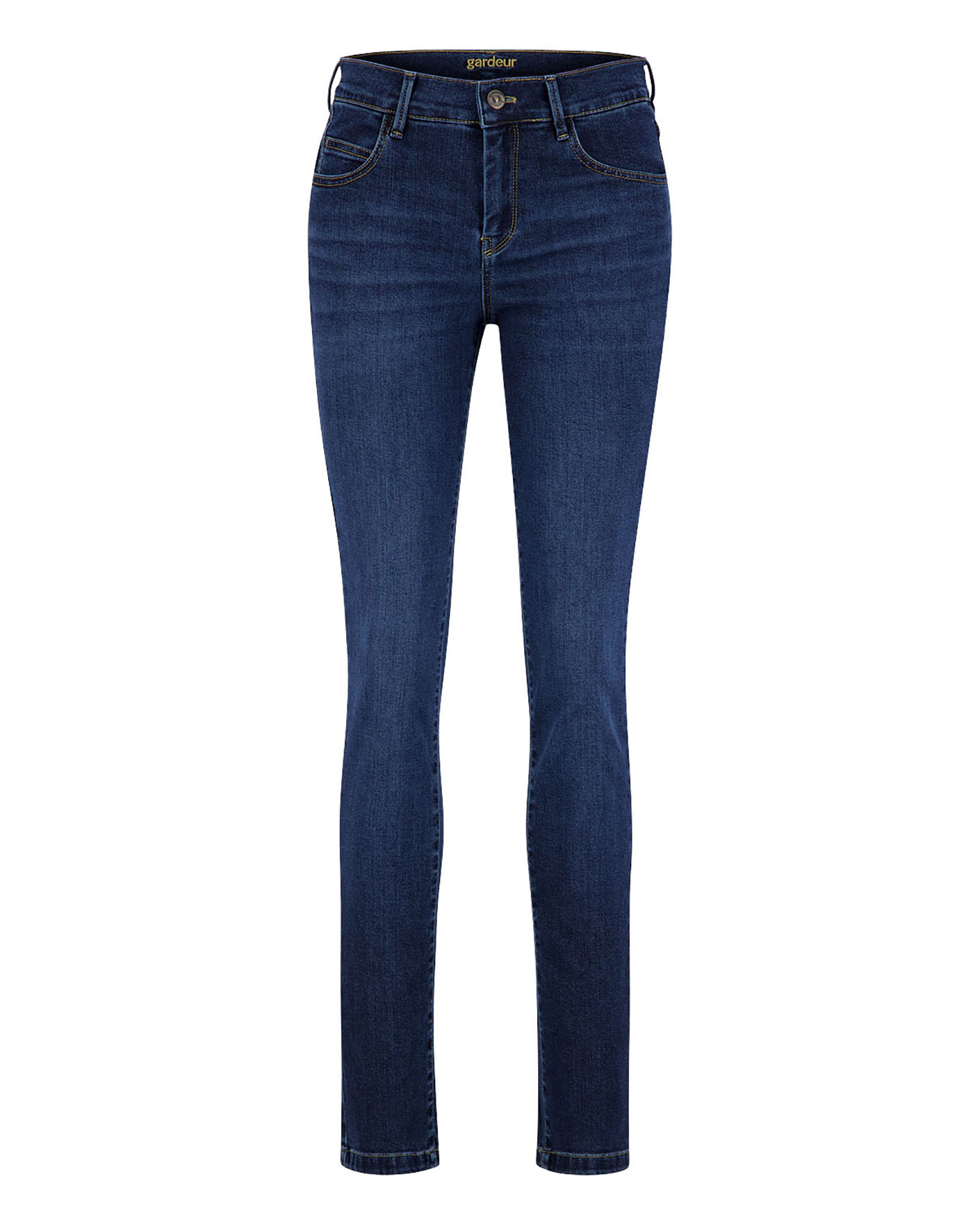 Зауженные джинсы Gardeur синего цвета с небольшим отбеленным эффектом. Модель с завышенной талией на стандартной застежке. Имеются карманы по бокам и накладные сзади. Джинсы - универсальная вещь на каждый день.