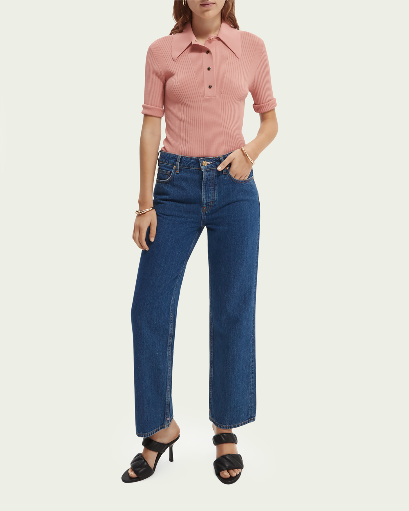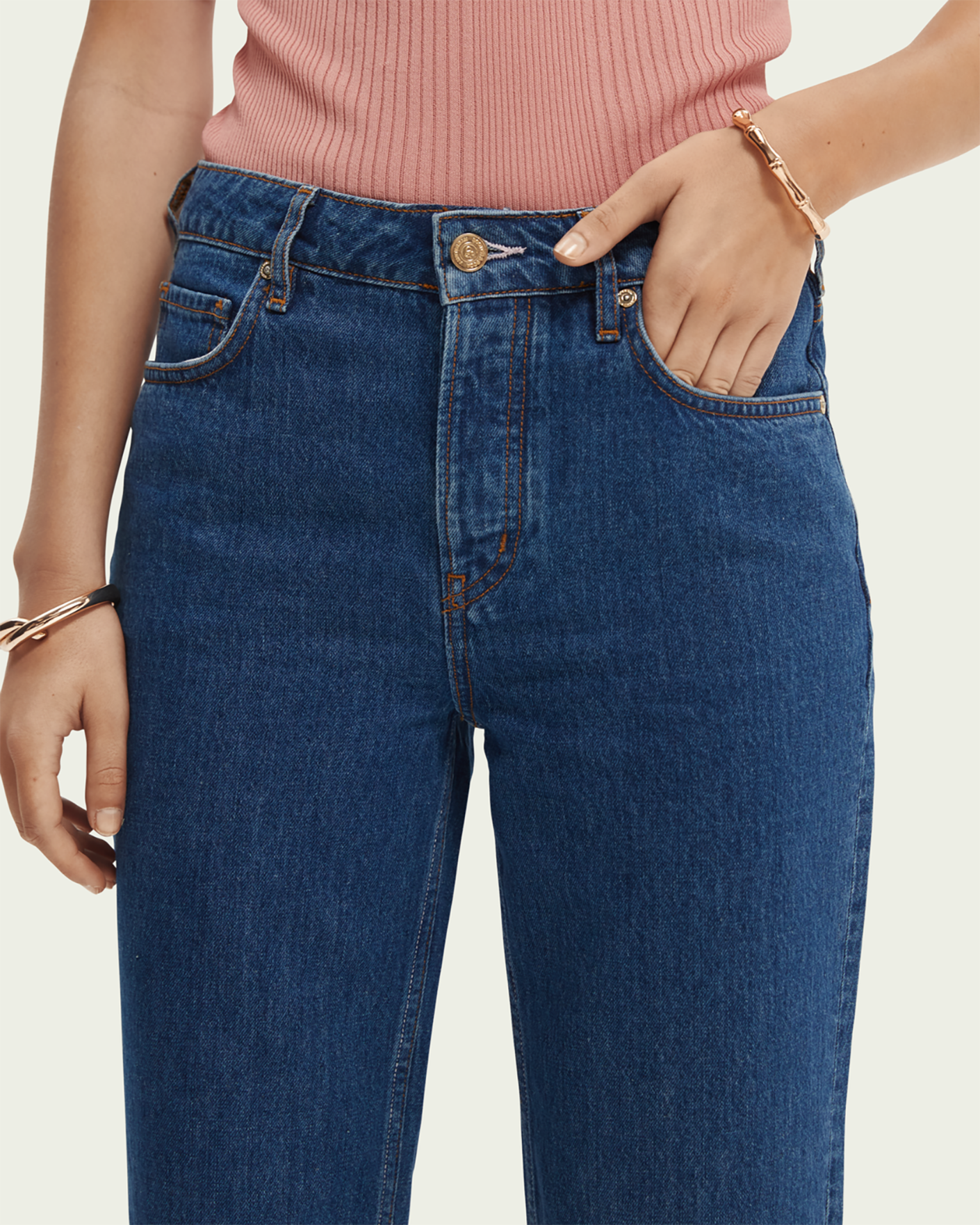 Джинсы Scotch&Soda синего цвета прямого кроя. Завышенная талия, стандартная застежка и карманы по бокам и сзади. Джинсы - базовая вещь вашего гардероба.