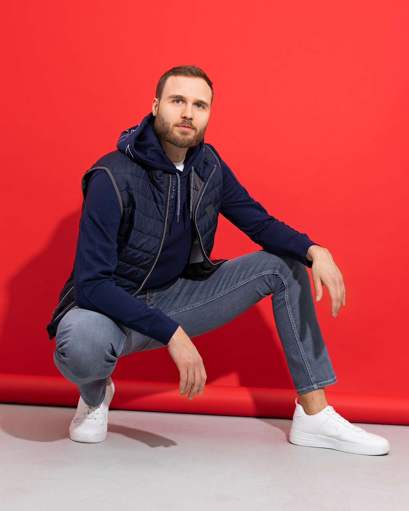 Стильный образ: толстовка, джемпер-поло, джинсы