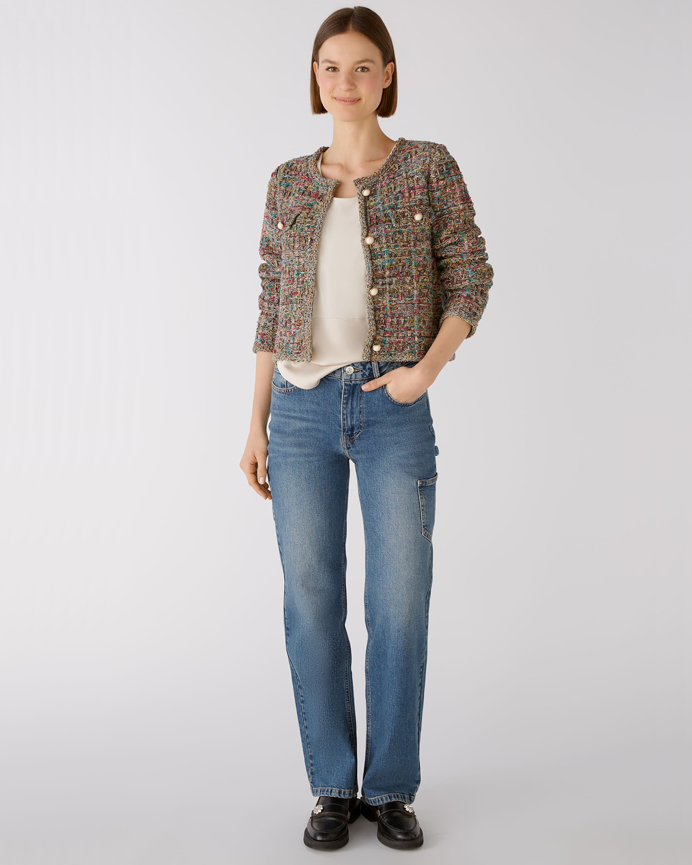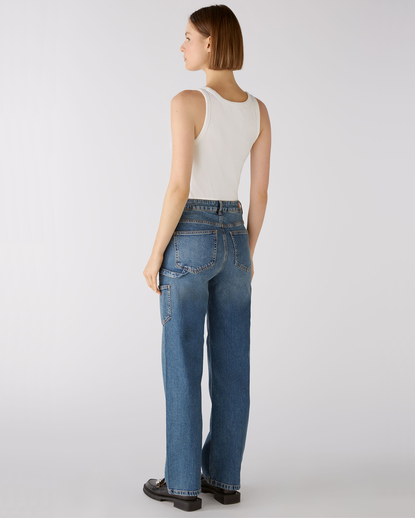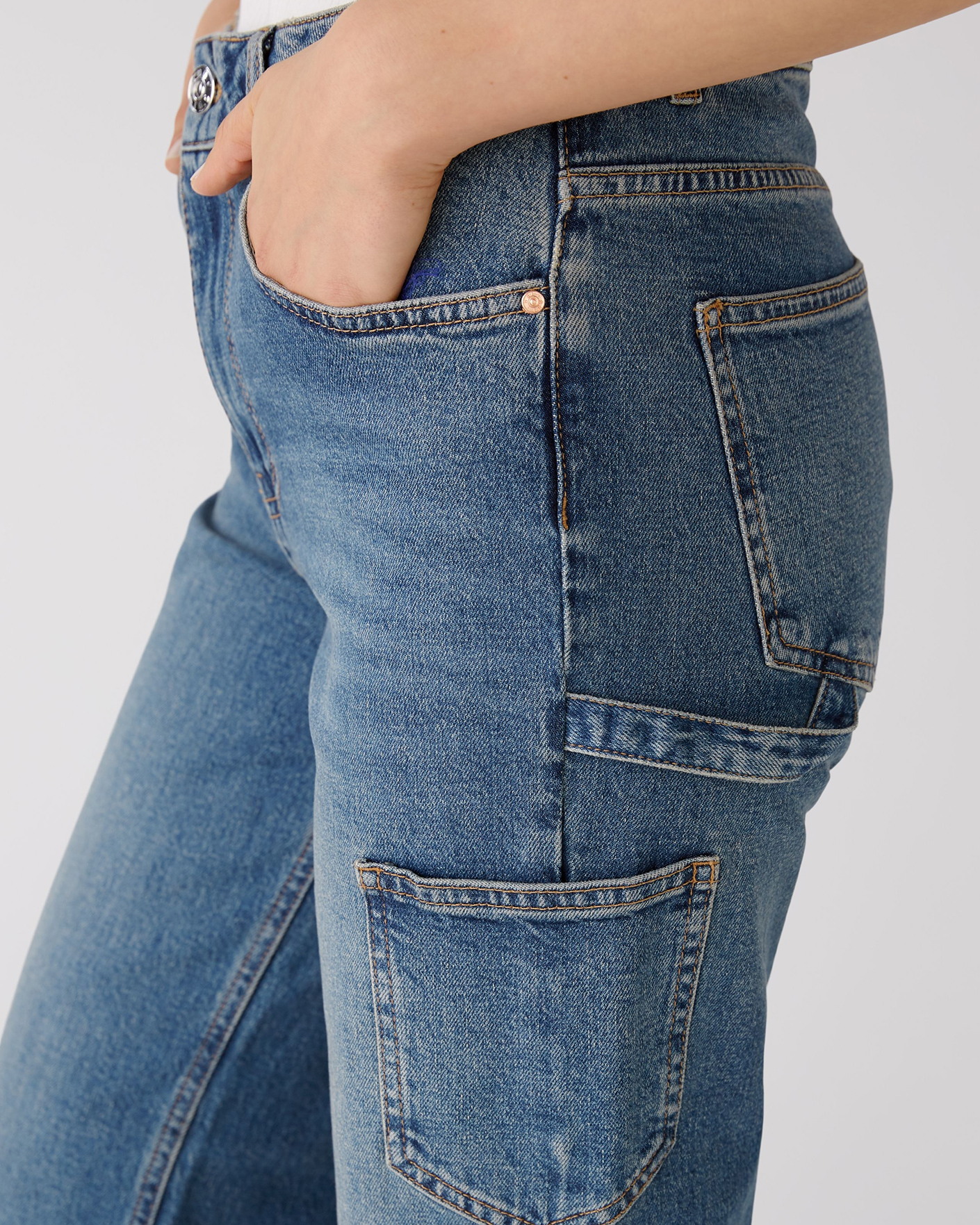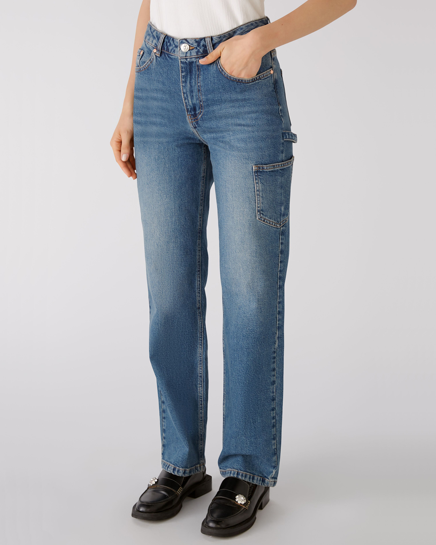 Джинсы-карго OUI синего цвета прямого кроя. Хлопковая модель на стандартной застежке, имеются карманы по бокам, накладные сзади, а также один набедренный карман. Джинсы-карго отлично впишутся в повседневный гардероб.