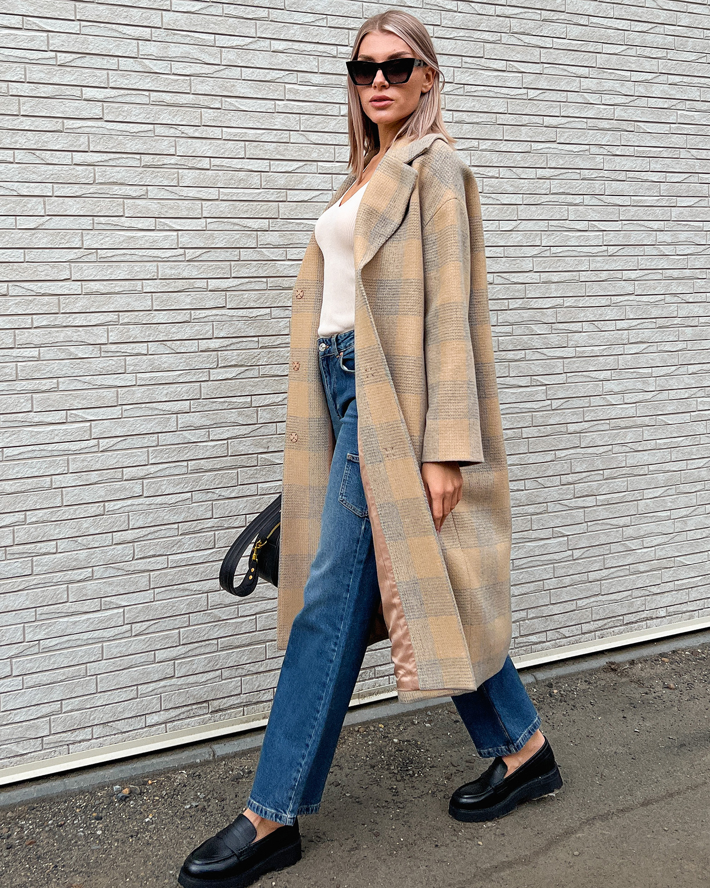 Универсальный образ от OUI: пальто-пыльник, джемпер, водолазка, джинсы-карго Добавлено в избранное Смотреть все