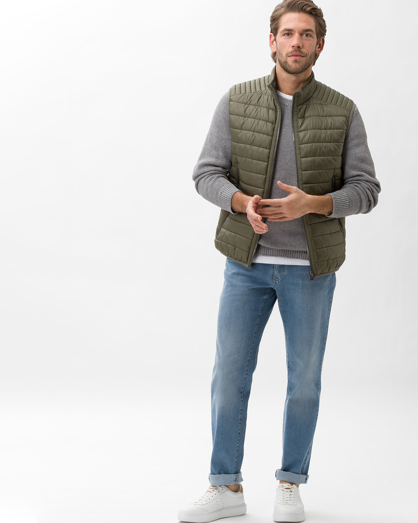 Джинсы Brax голубого цвета. Модель с застежкой на пуговицу и скрытую молнию. Имеются карманы по бокам и накладные карманы сзади. Джинсы - базовая вещь вашего гардероба на каждый день.