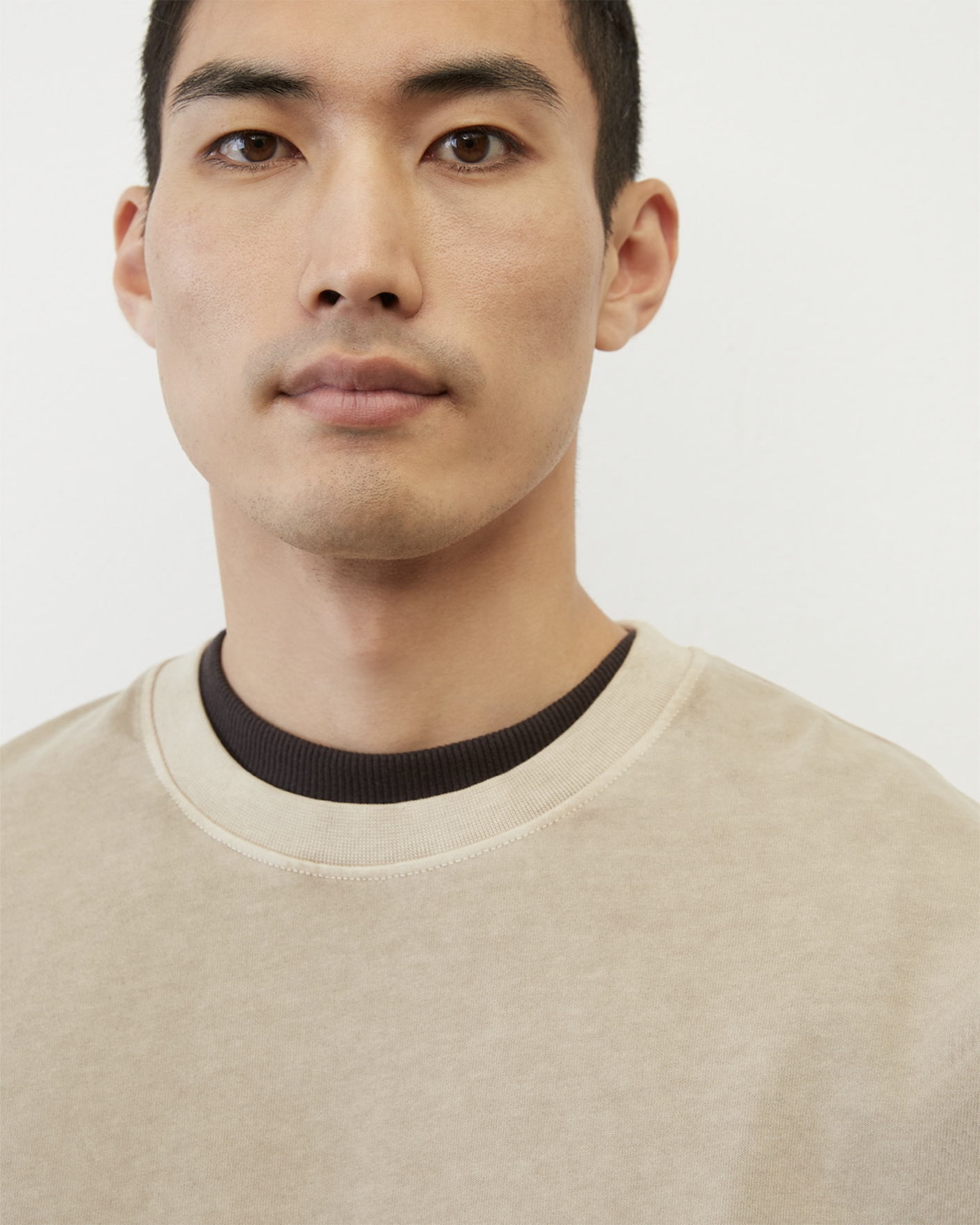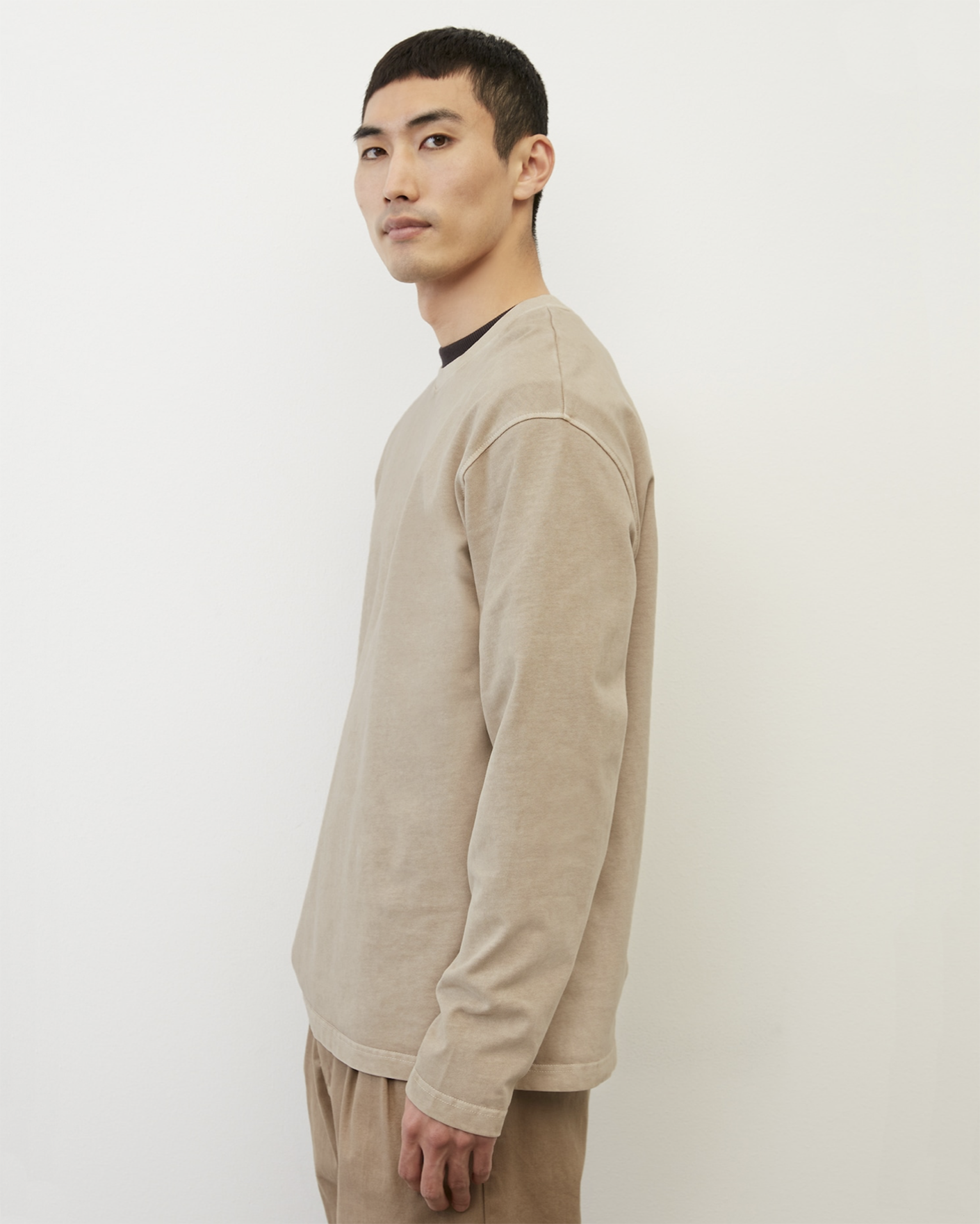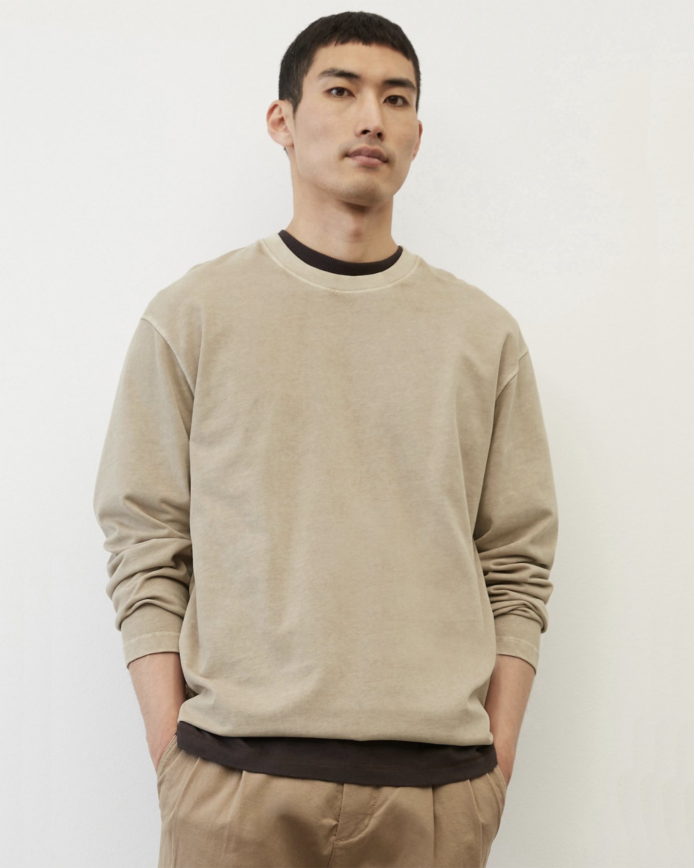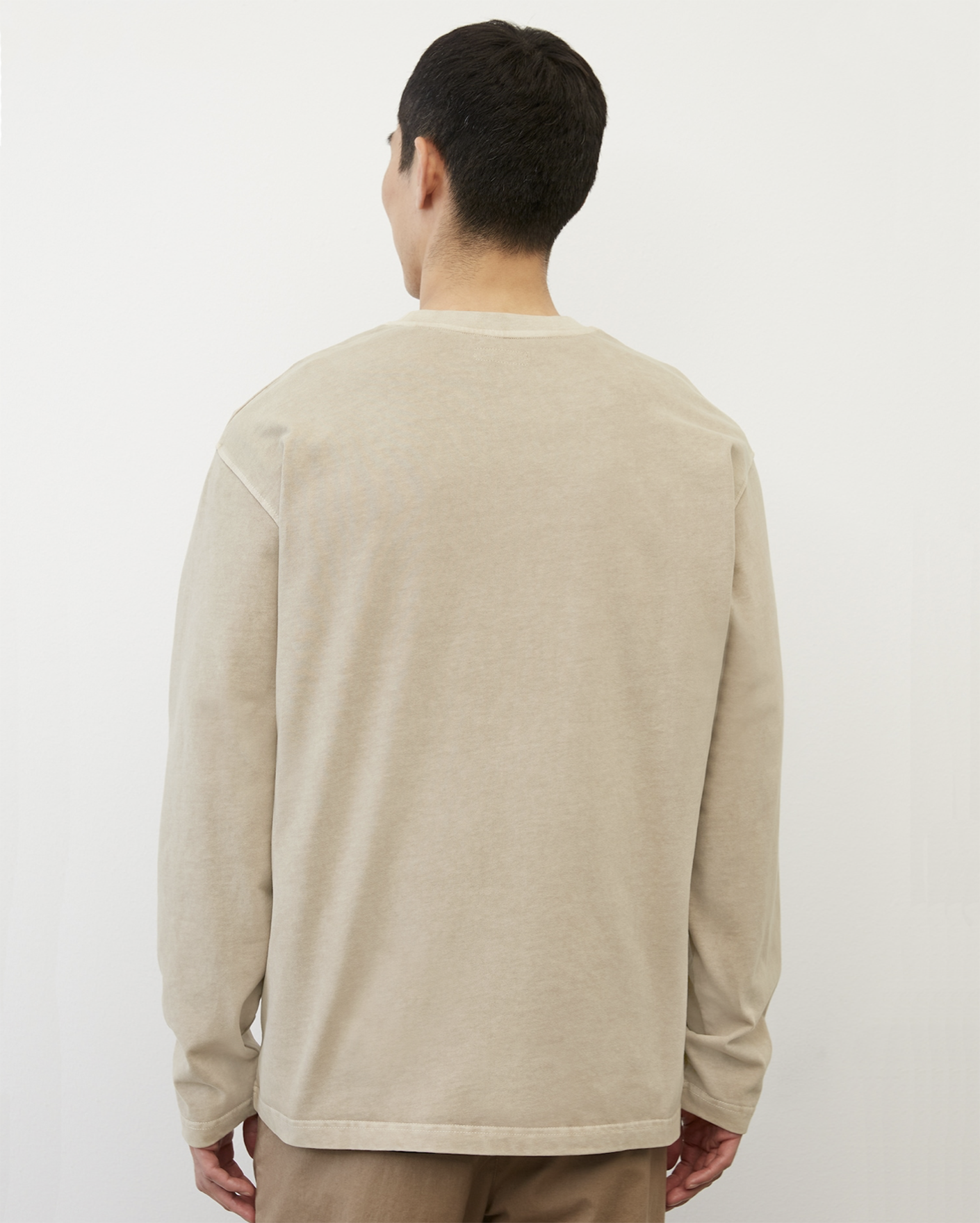 Футболка Marc O'Polo бежевого цвета прямого кроя. Модель с круглым воротом и длинными рукавами выполнен из 100% хлопка. Футболка - универсальная вещь на каждый день.