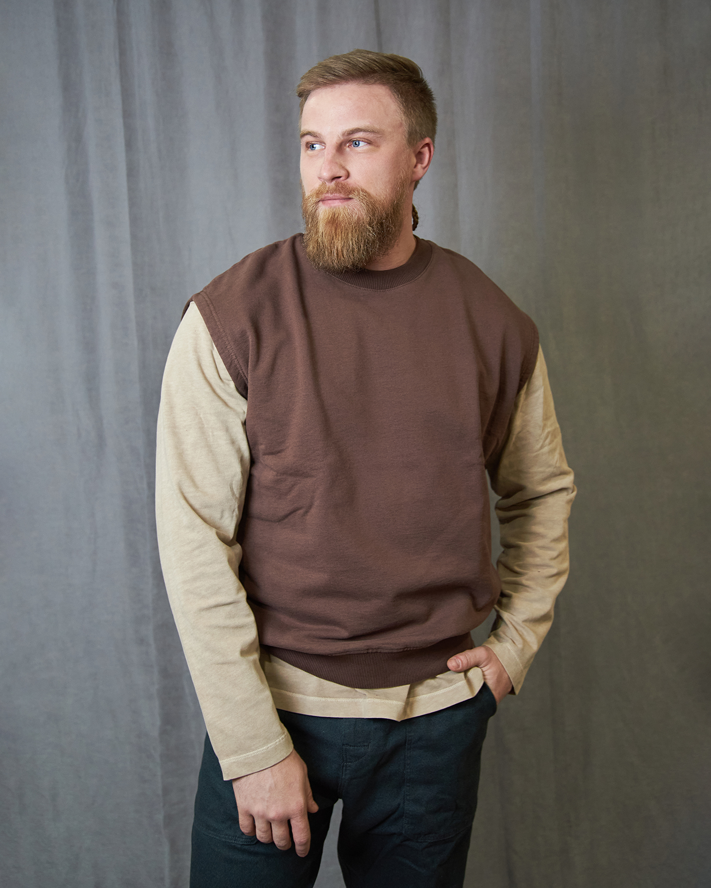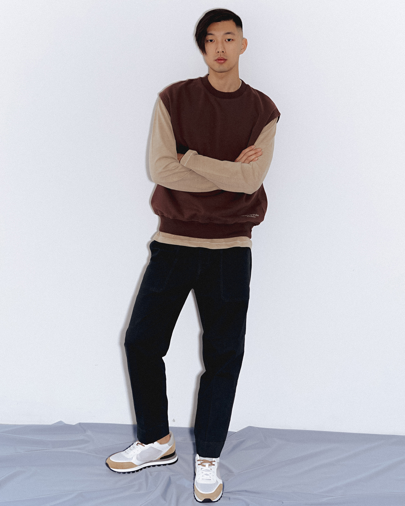 Многослойный образ Marc O'Polo: полупальто, жилет, футболка, чиносы