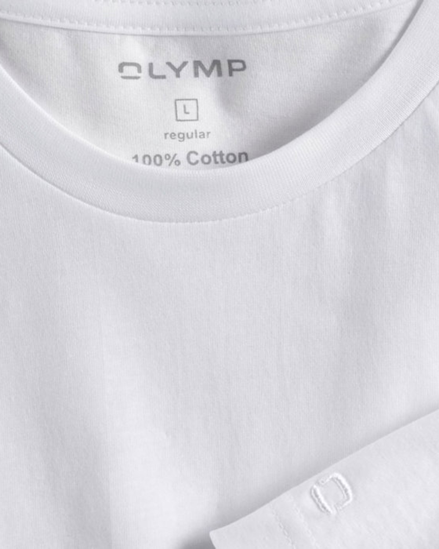Базовая футболка Olymp белого цвета выполнена из 100% хлопка. Футболка идеальная для многослойных образов.