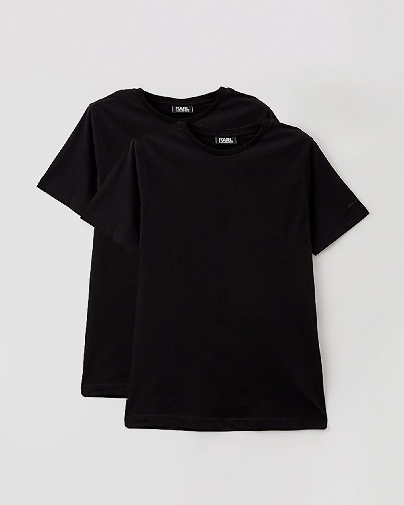 Набор базовых футболок Karl Lagerfeld черного цвета. Хлопковые модели прямого кроя, с круглым вырезом и короткими рукавами. Футболки - идеальный выбор на каждый день.