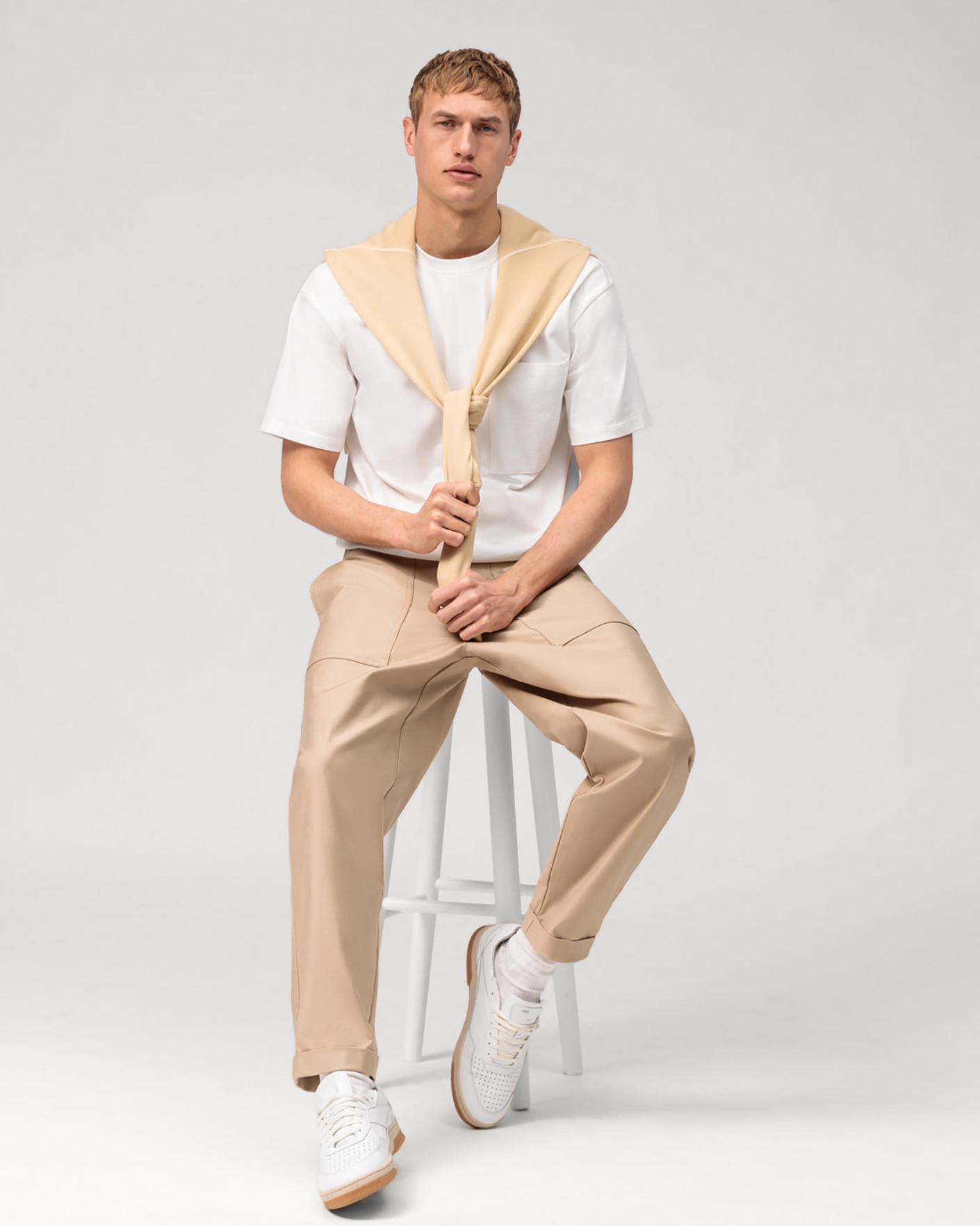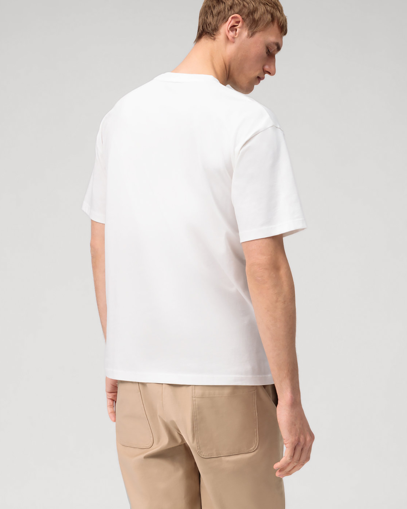 Свободная футболка Olymp белого цвета. Модель из 100% хлопка с круглым вырезом и короткими рукавами. Также имеется накладной нагрудный карман. Футболка - база вашего гардероба.