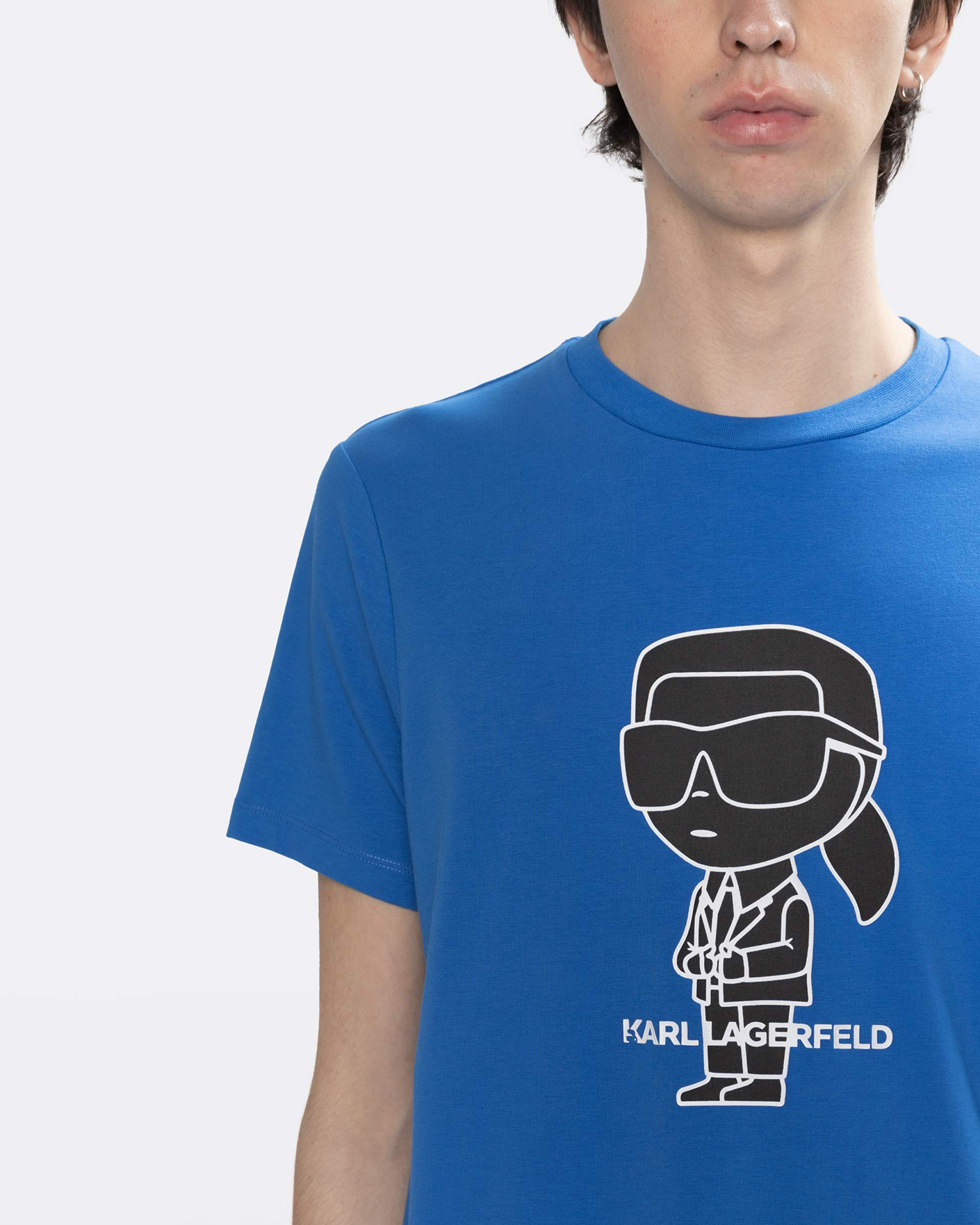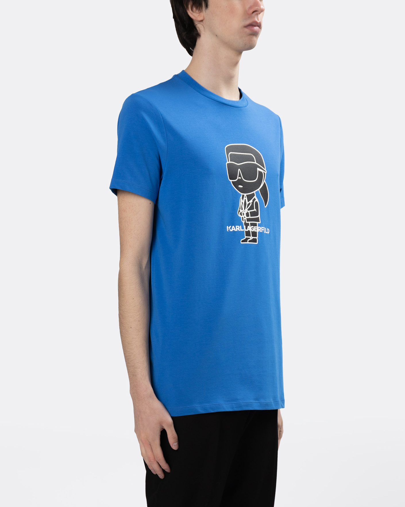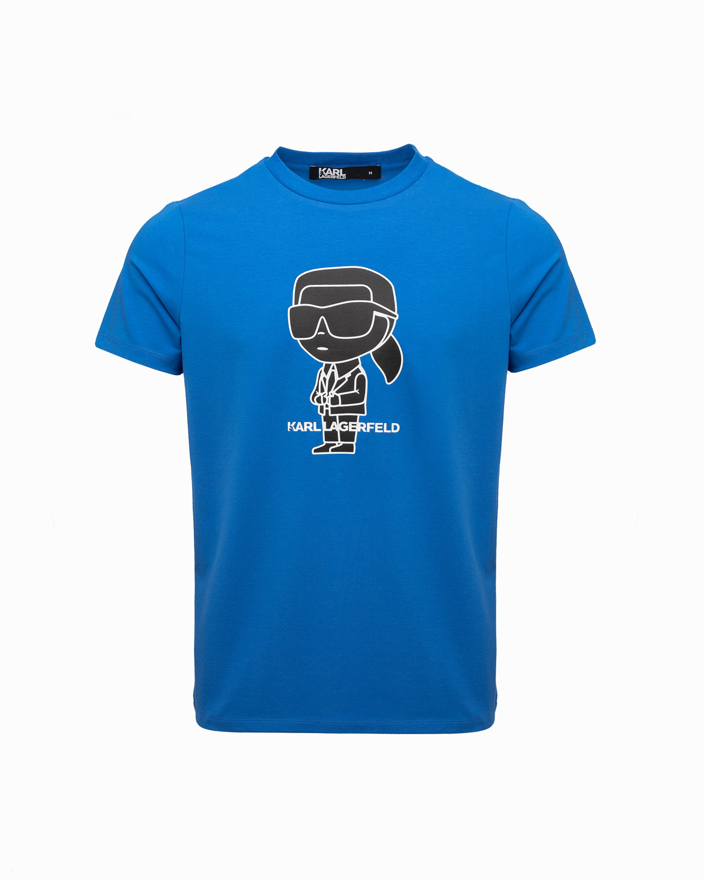 Футболка Karl Lagerfeld синего цвета с крупным логотипом по центру. Модель прямого кроя с круглым вырезом и короткими рукавами. Футболка отлично впишется в ваш гардероб.