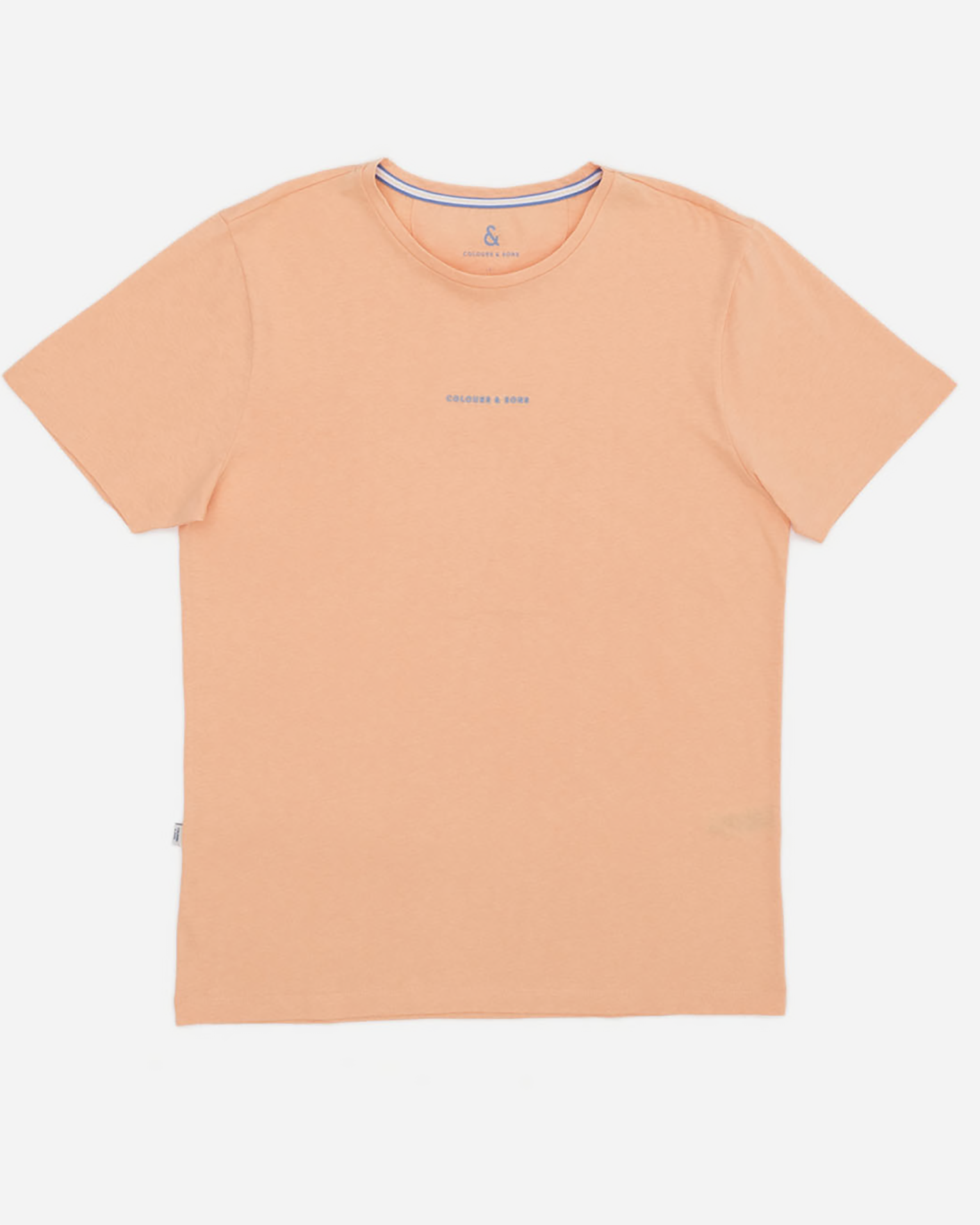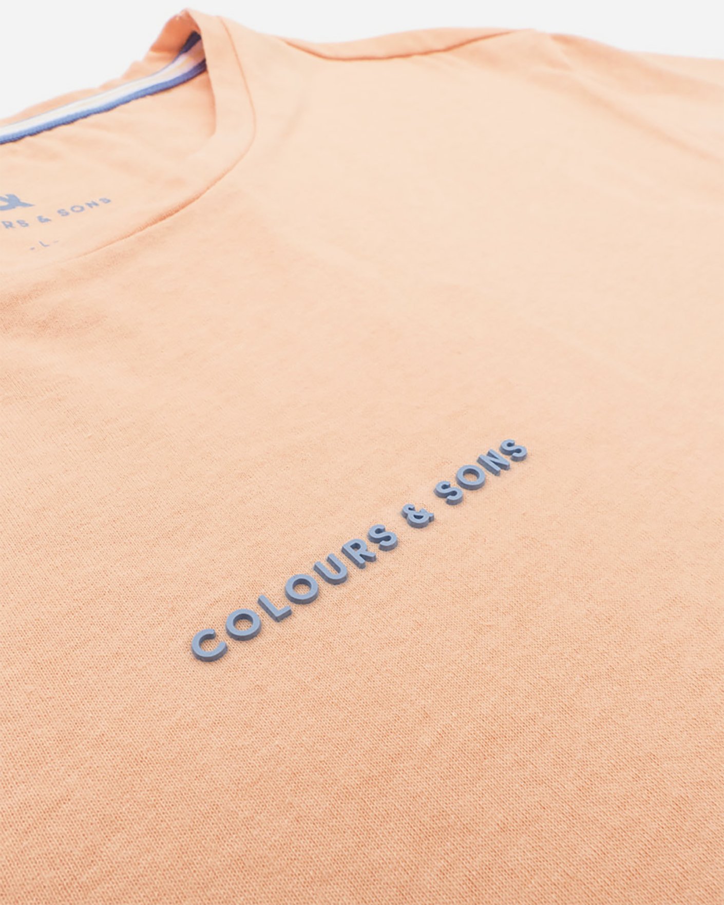 Футболка Colours&Sons оранжевого цвета с нагрудным принтом логотипа. Модель прямого кроя с круглым вырезом выполнена из 100% хлопка. Футболка - незаменимая вещь на каждый день.