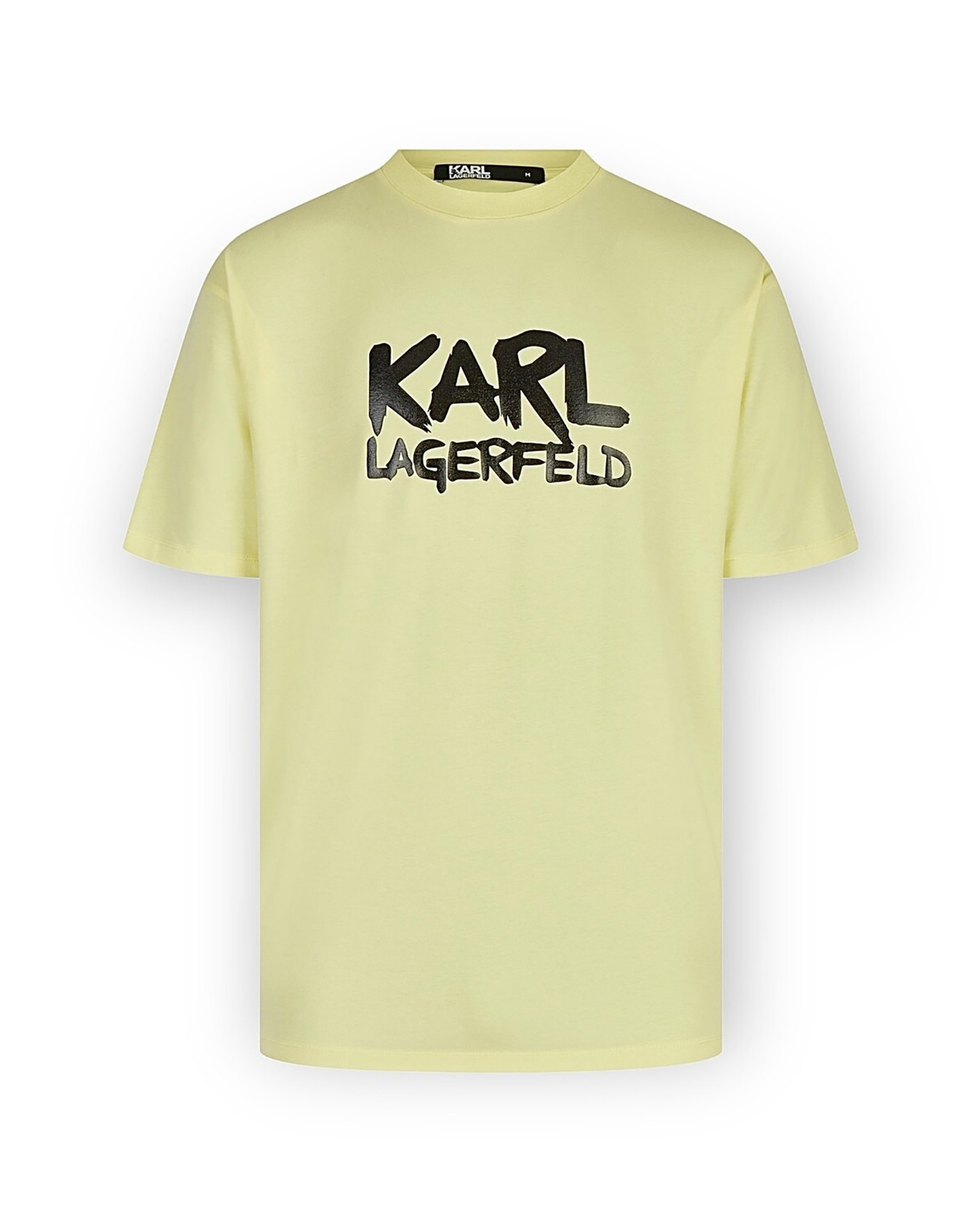Футболка Karl Lagerfeld желтого цвета с крупным нагрудным принтом в виде логотипа. Модель прямого кроя с круглым вырезом и короткими рукавами. Футболка отлично впишется в ваш гардероб.