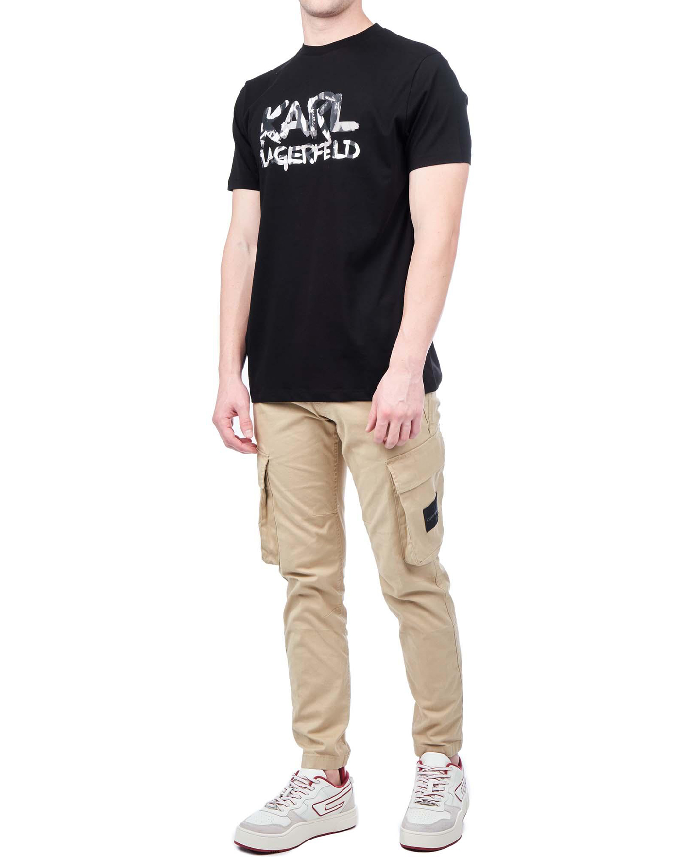 Футболка Karl Lagerfeld черного цвета с крупным нагрудным принтом в виде граффити-логотипа. Модель прямого кроя с круглым вырезом и короткими рукавами. Футболка отлично впишется в ваш гардероб.