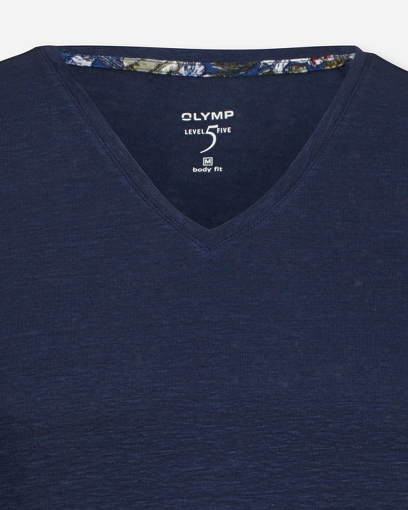 Повседневная футболка OLYMP Level Five темно-синего цвета с модным V-образным вырезом выполнена из высококачественного льна. Модель в характерную размытую текстуру делает образ современным. Футболка - идеальная база вашего гардероба.