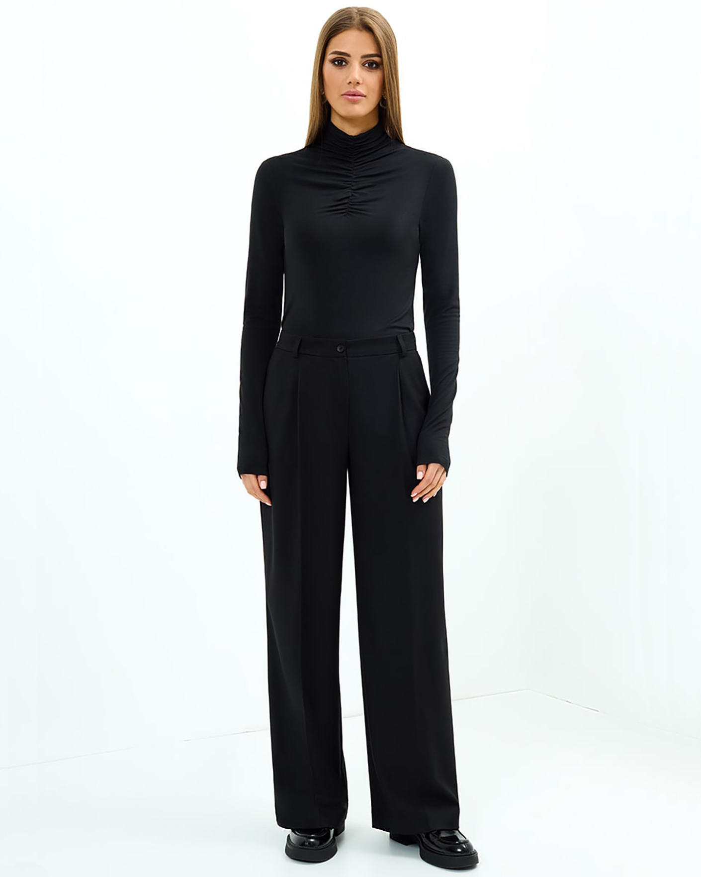 Приталенная водолазка Devita черного цвета. Модель с удлиненным воротником и аккуратной сборкой по центру. Водолазку можно сочетать с жилетом, жакетом, кардиганом, пуловером, юбкой и брюками.