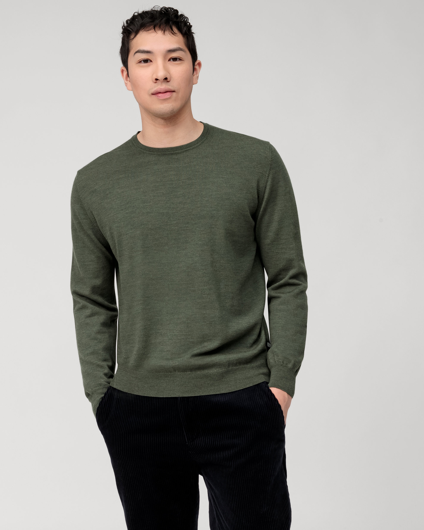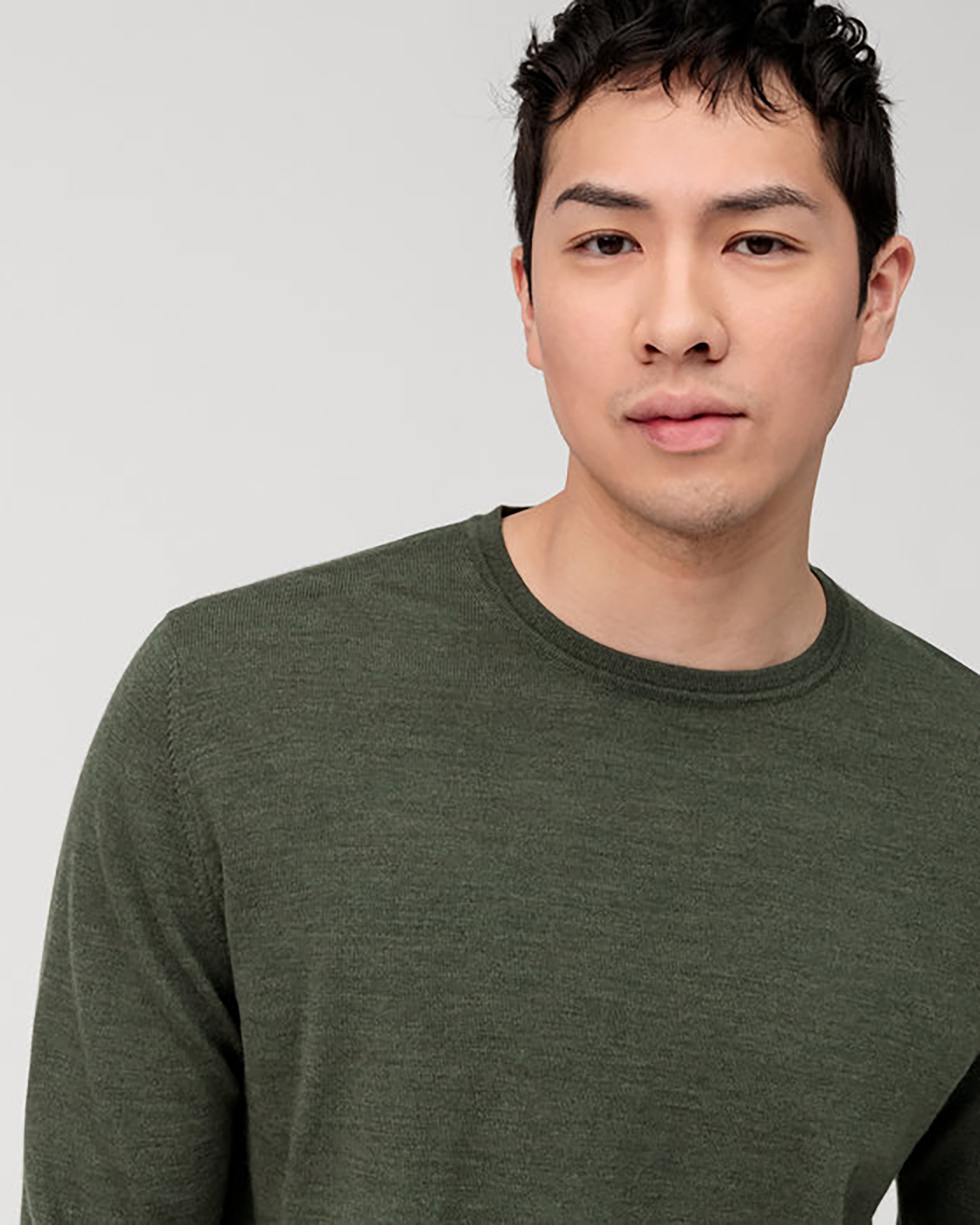 Джемпер Olymp оливкового цвета выполнен из 100% шерсти. Модель с круглым вырезом, манжетами и низом изделия на тонкой резинке. Джемпер станет незаменимой вещью вашего гардероба на каждый день.