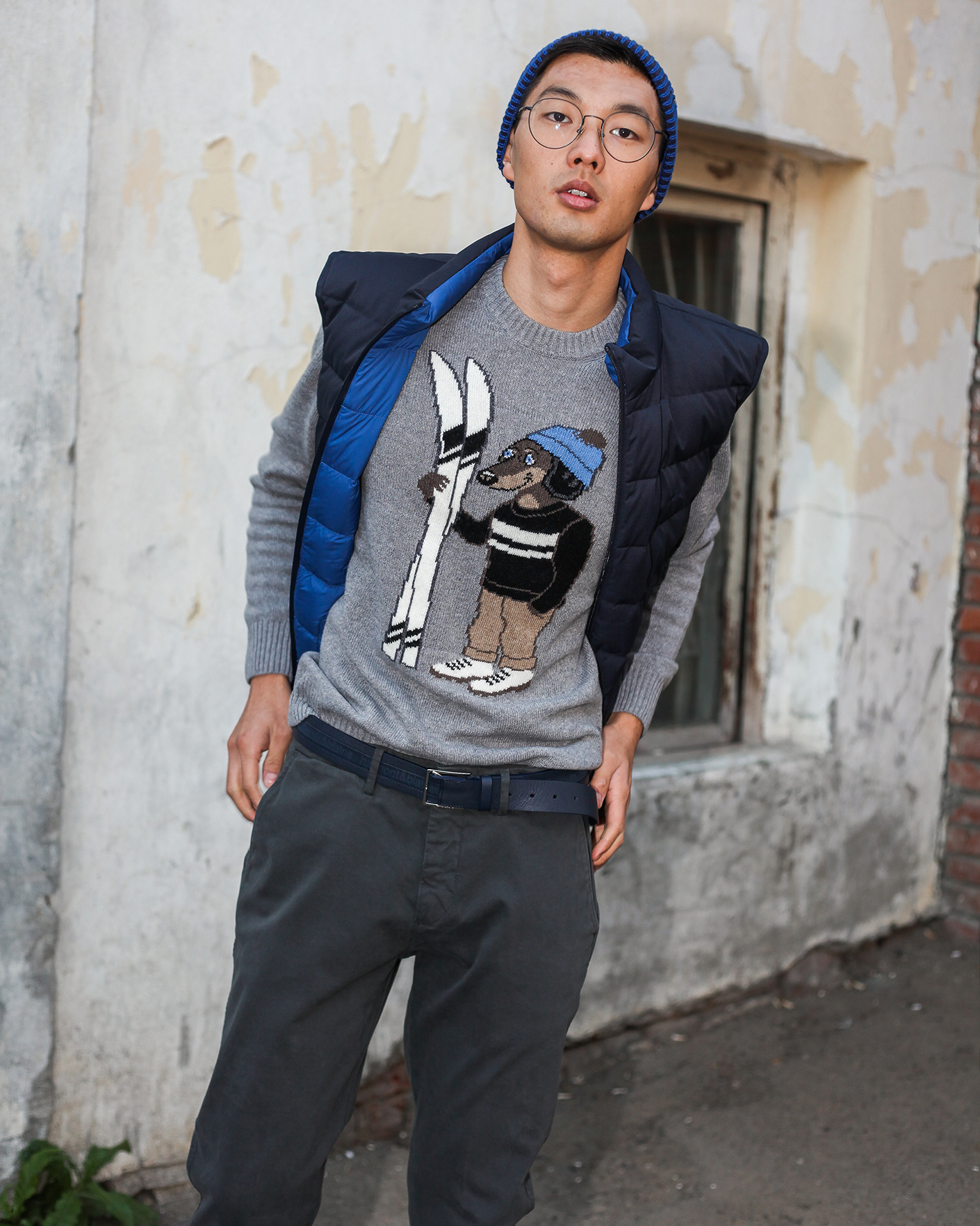 Джемпер Harmont&Blaine серого цвета с вышивкой собаки. Модель с круглым вырезом, манжетами и низом на вывязанной резинке. Джемпер можно сочетать с рубашкой, жилетом, курткой и брюками.