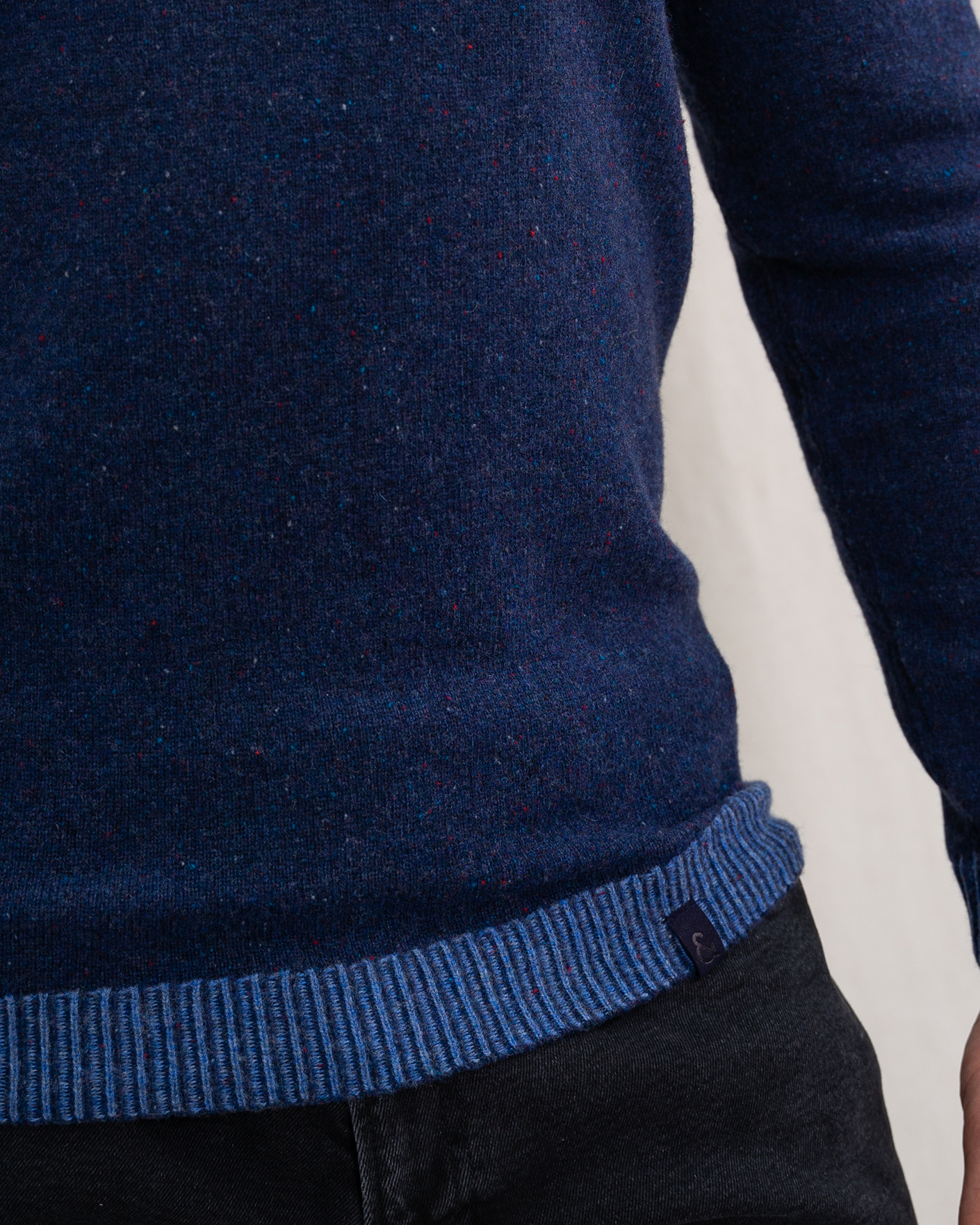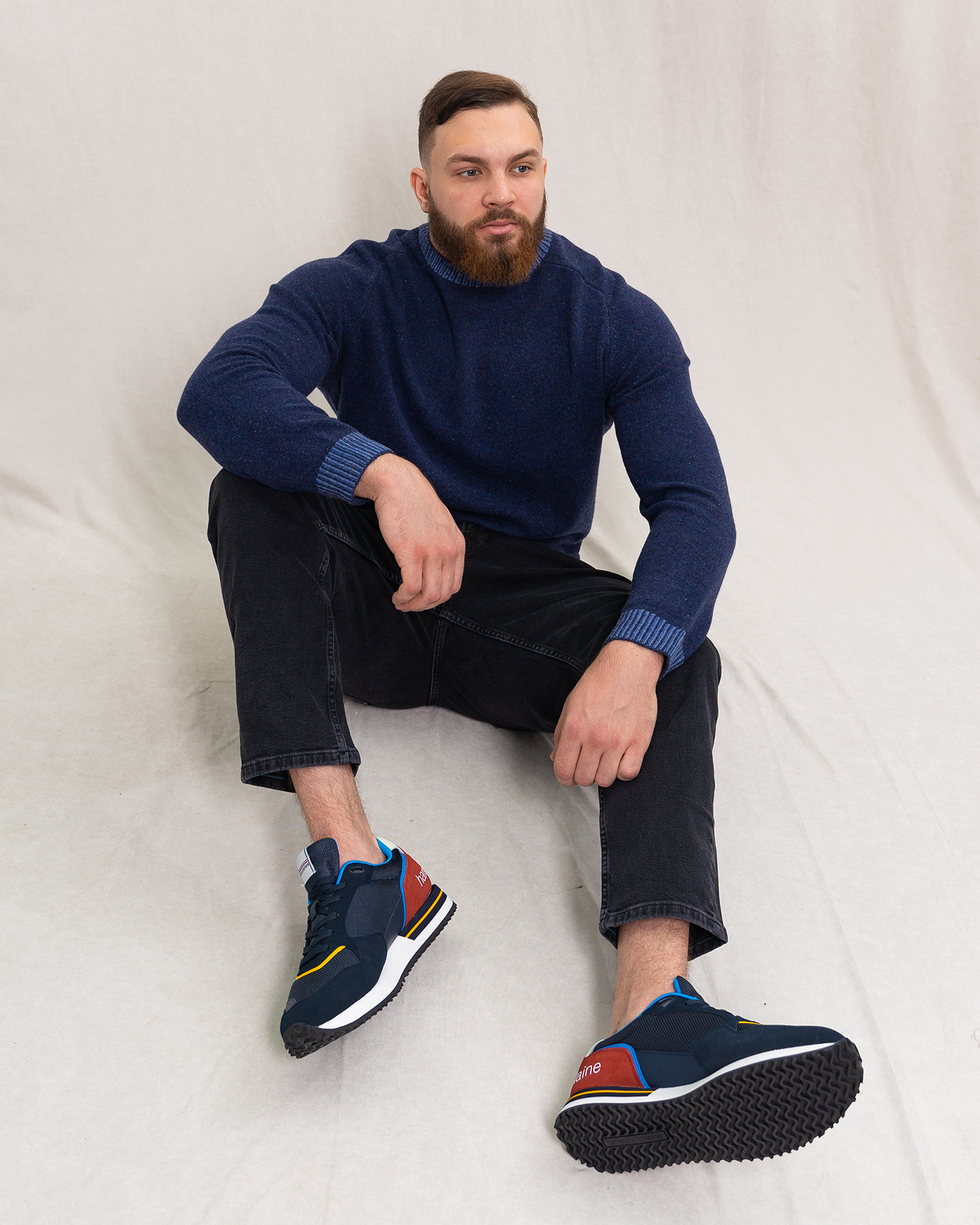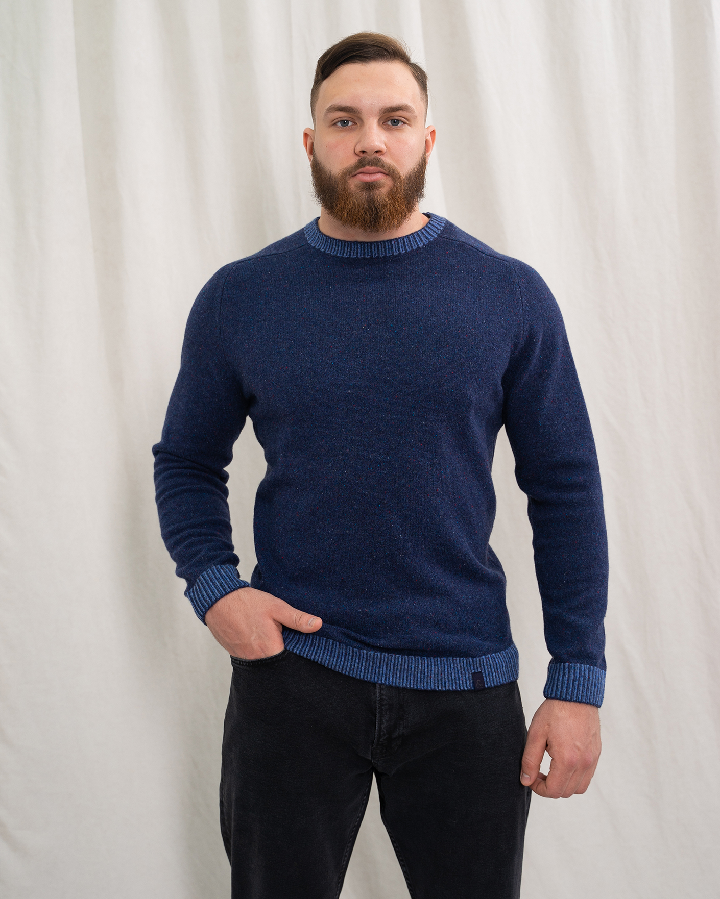 Джемпер Colours&Sons синего цвета в тонкую вертикальную вязку. Модель с круглым вырезом, манжетами и низом на тонкой резинке. Джемпер можно сочетать с рубашкой, пиджаком, брюками и джинсами.