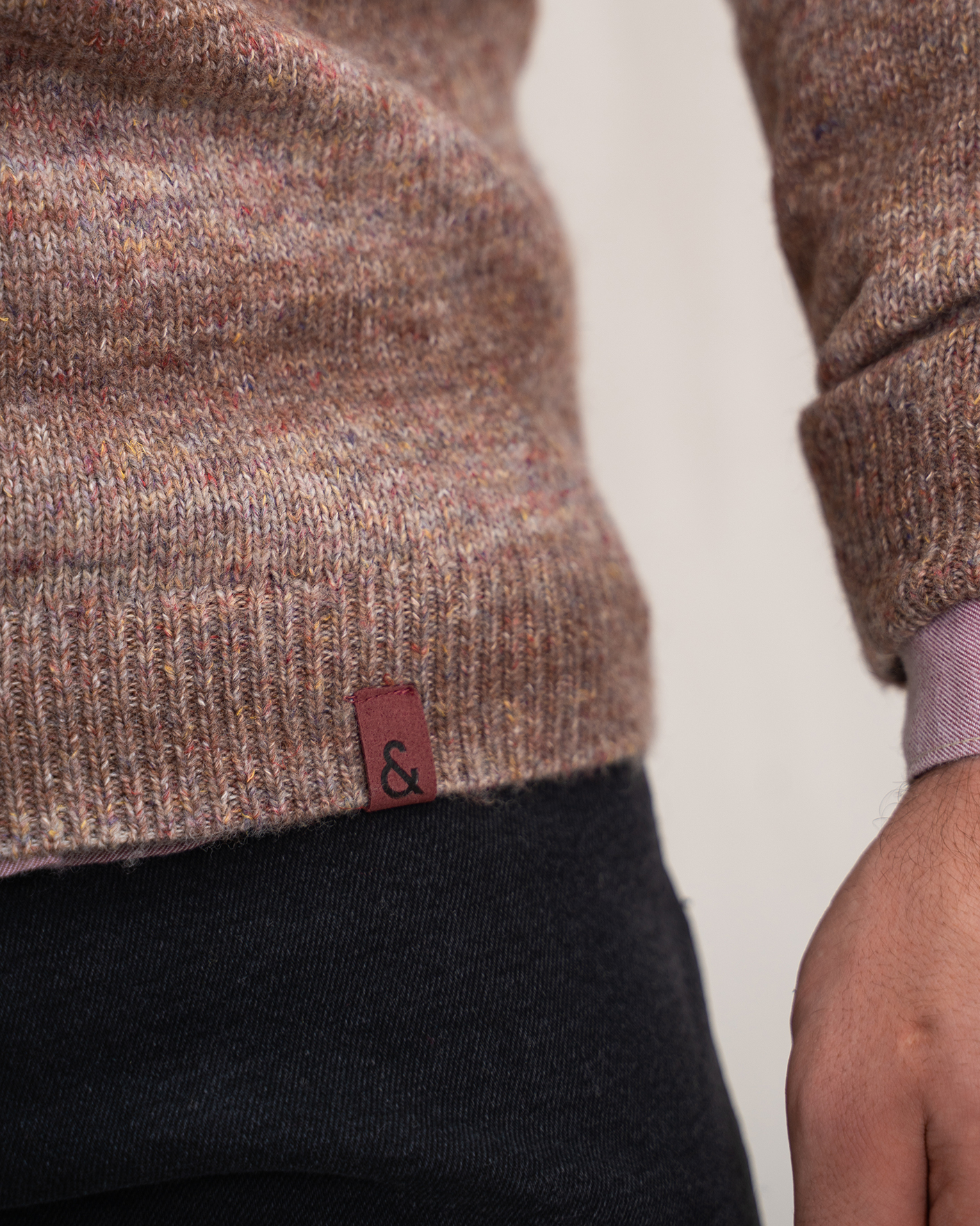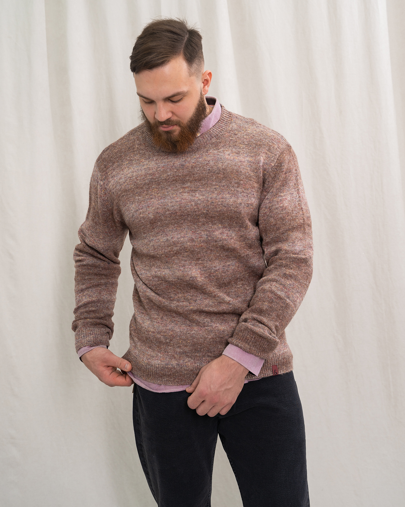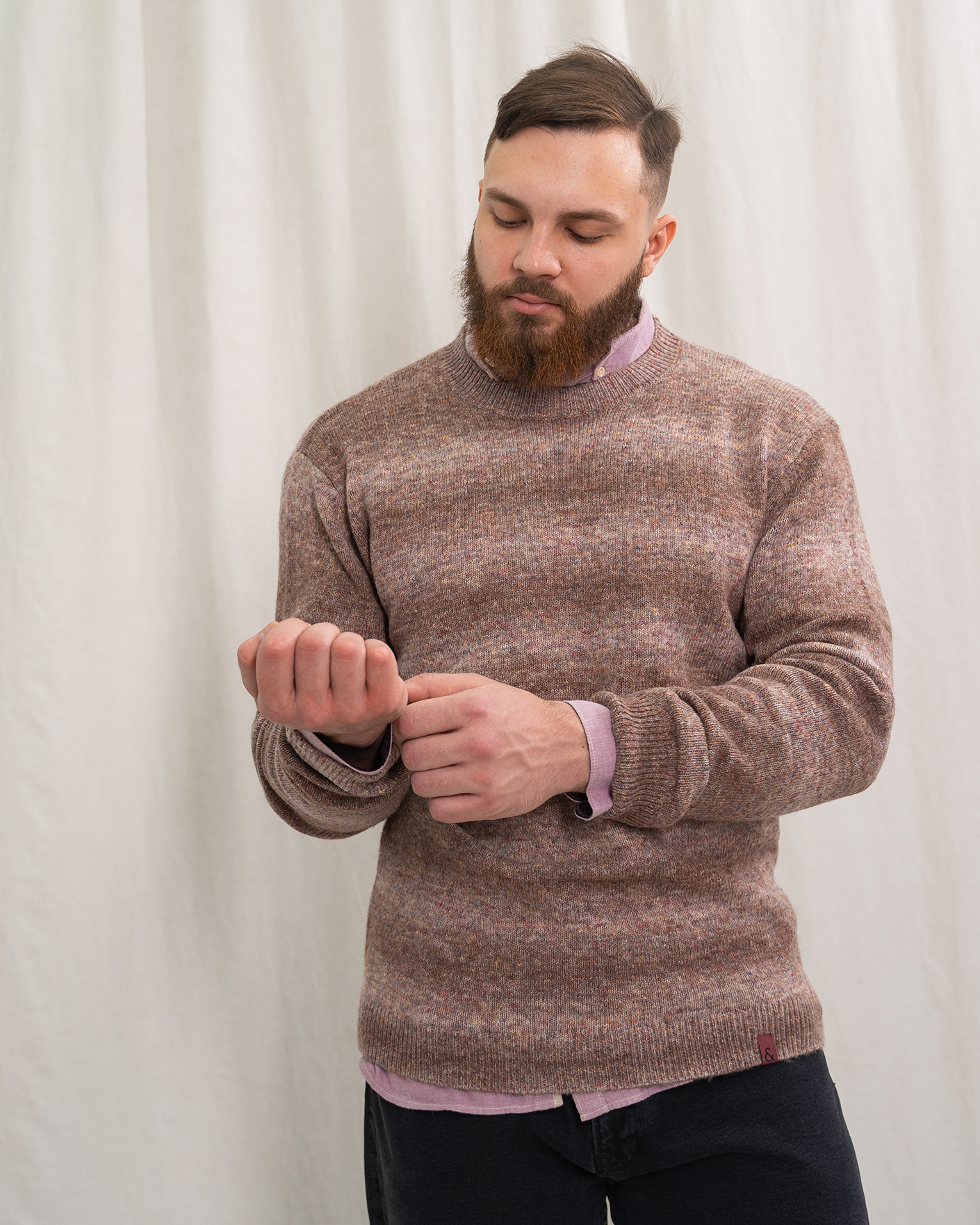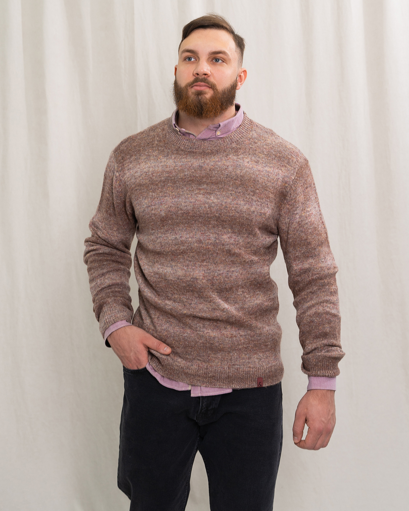 Джемпер Colours&Sons бежево-розового цвета в тонкую вертикальную вязку. Модель с круглым вырезом, манжетами и низом на тонкой резинке. Джемпер можно сочетать с рубашкой, пиджаком, брюками и джинсами.
