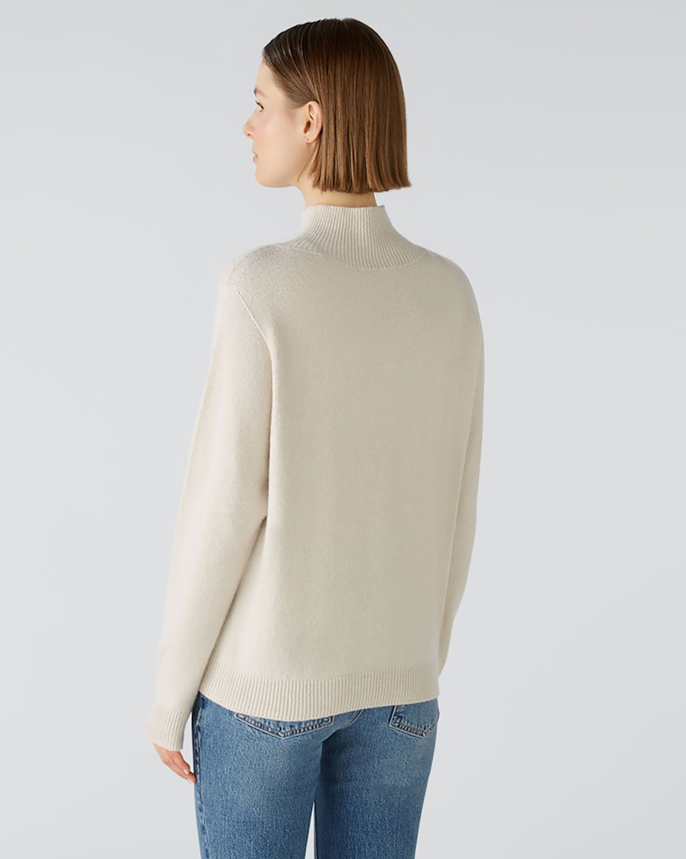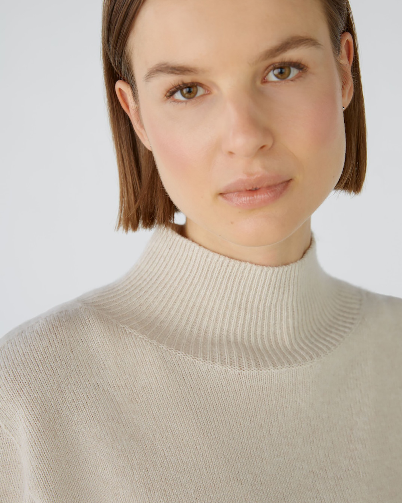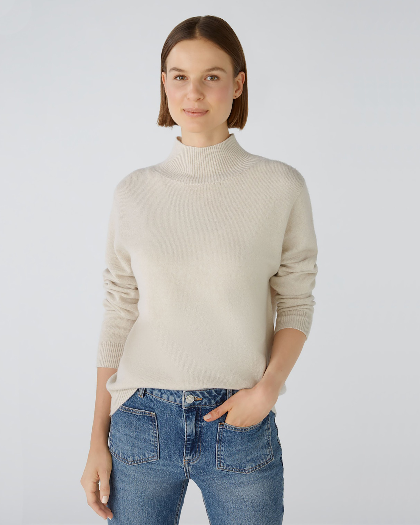 Свободный свитер OUI светло-бежевого цвета в строчный рисунок. Модель с воротником-стойка, манжетами и низом на тонкой ребристой резинке. Свитер станет фаворитом повседневного гардероба.