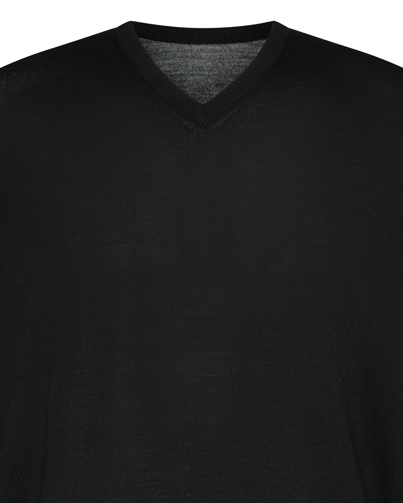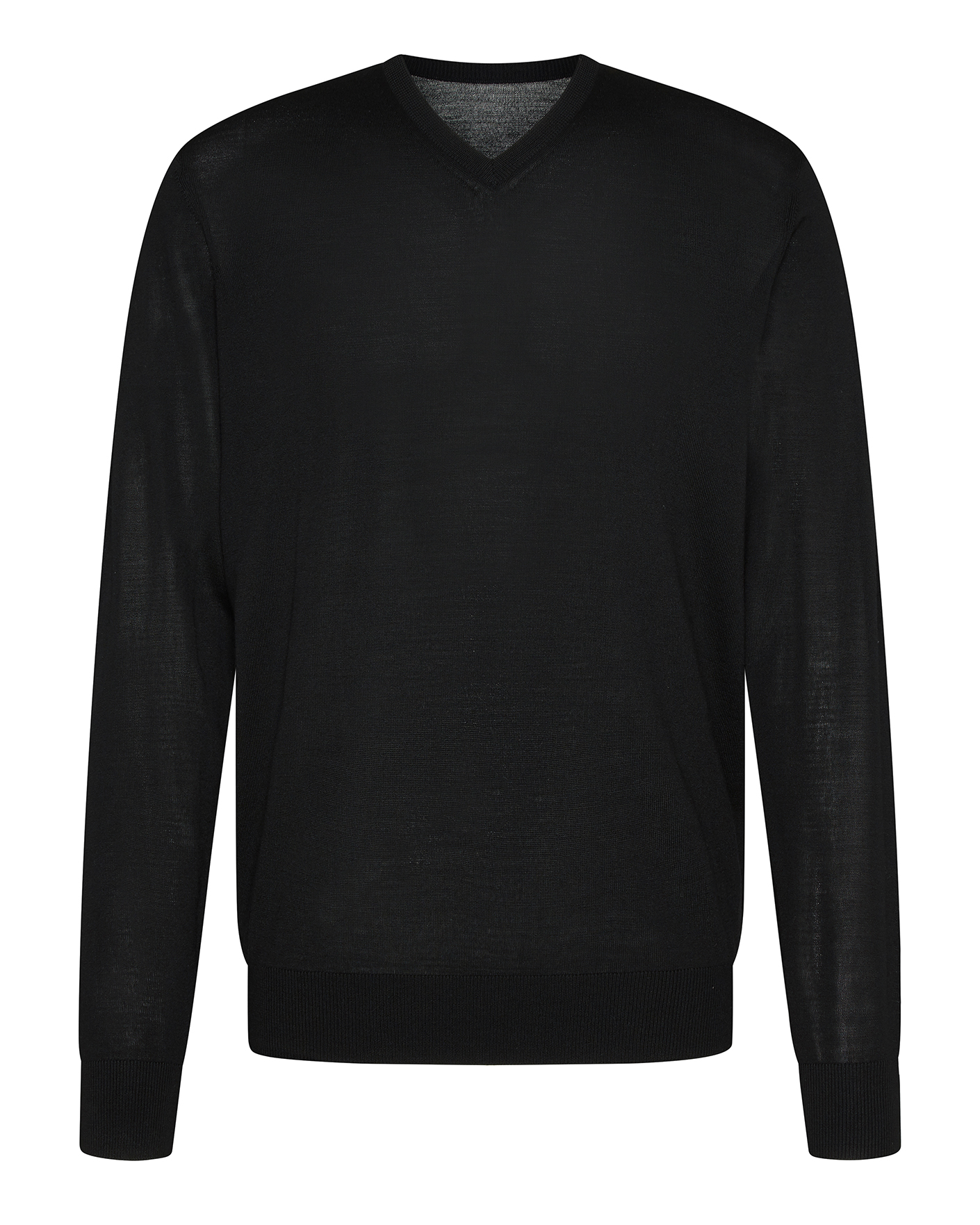 Универсальный пуловер Bugatti черного цвета в строчный рисунок. Модель из 100% шерсти, V-образный вырез, манжеты и низ на тонкой ребристой резинке. Пуловер станет незаменимой вещью на каждый день.