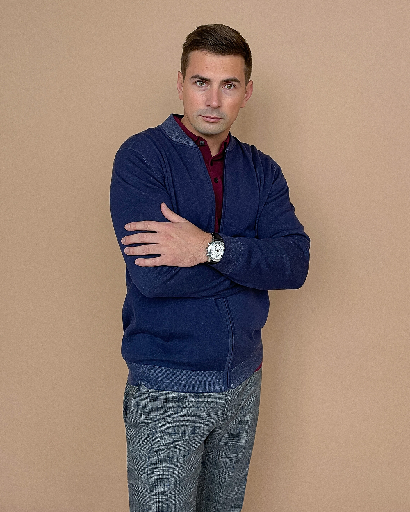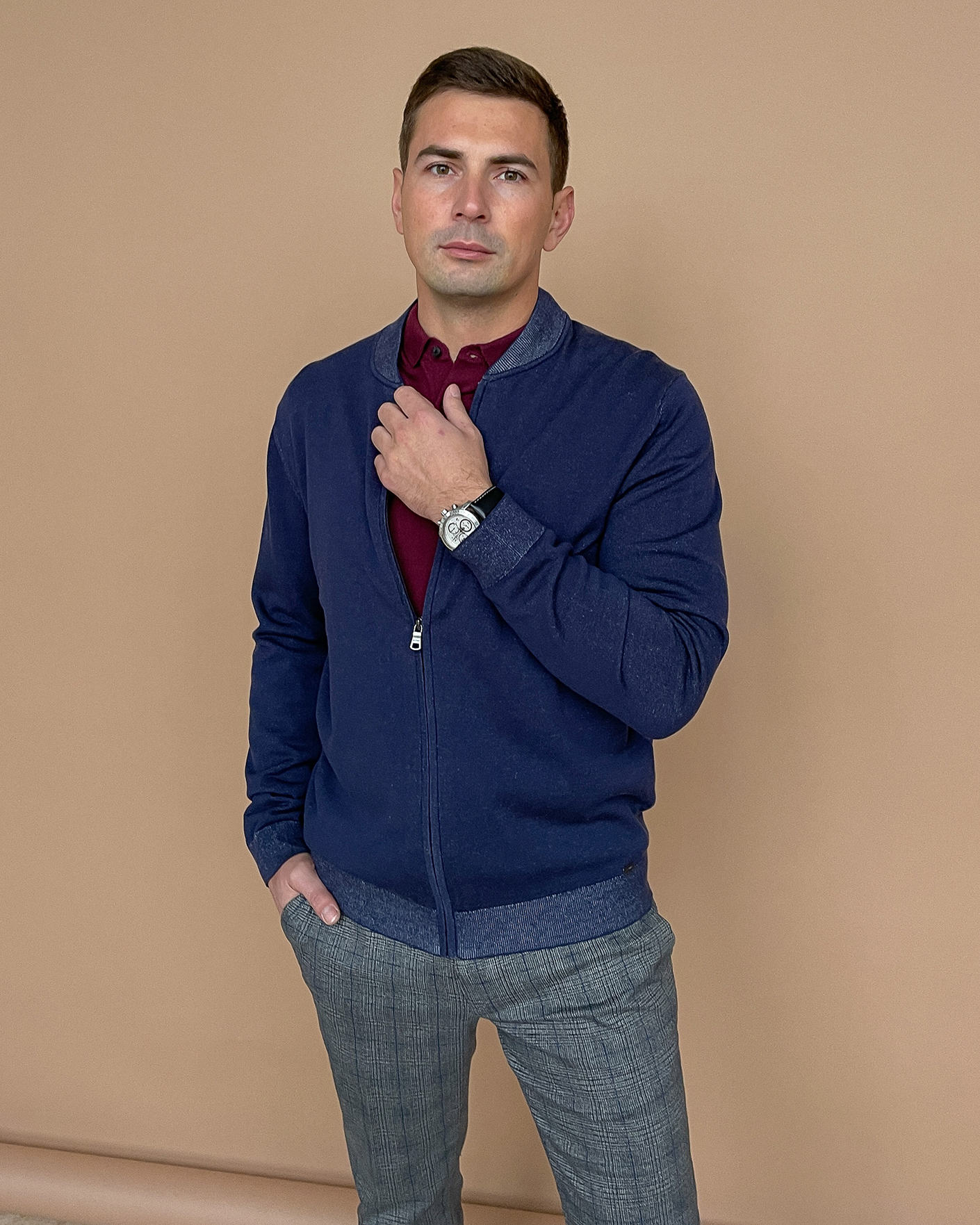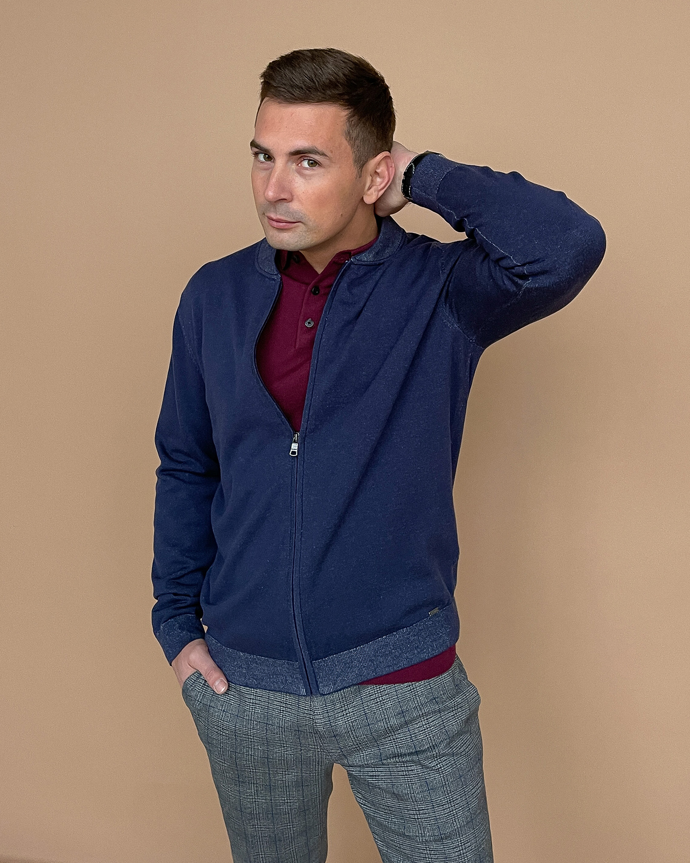 Толстовка Olymp Casual серо-синего цвета выполнена из 100% хлопка. Модель с небольшим воротником-стойка, манжетами и низом на тонкой вертикальной резинке. ЗАстежка на молнию, имеются врезные карманы по бокам. Толстовку можно сочетать с слюбым вашим гардеробом.