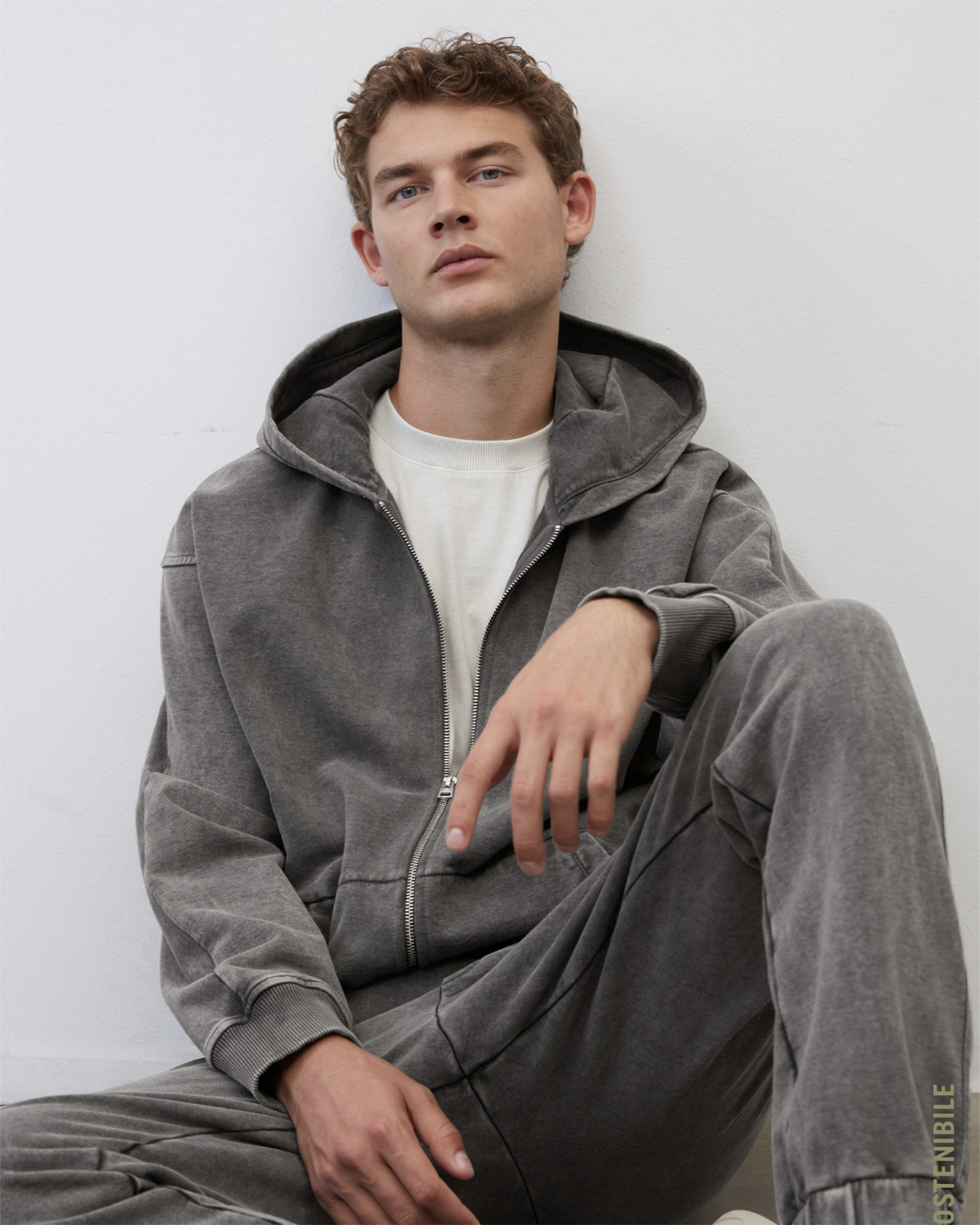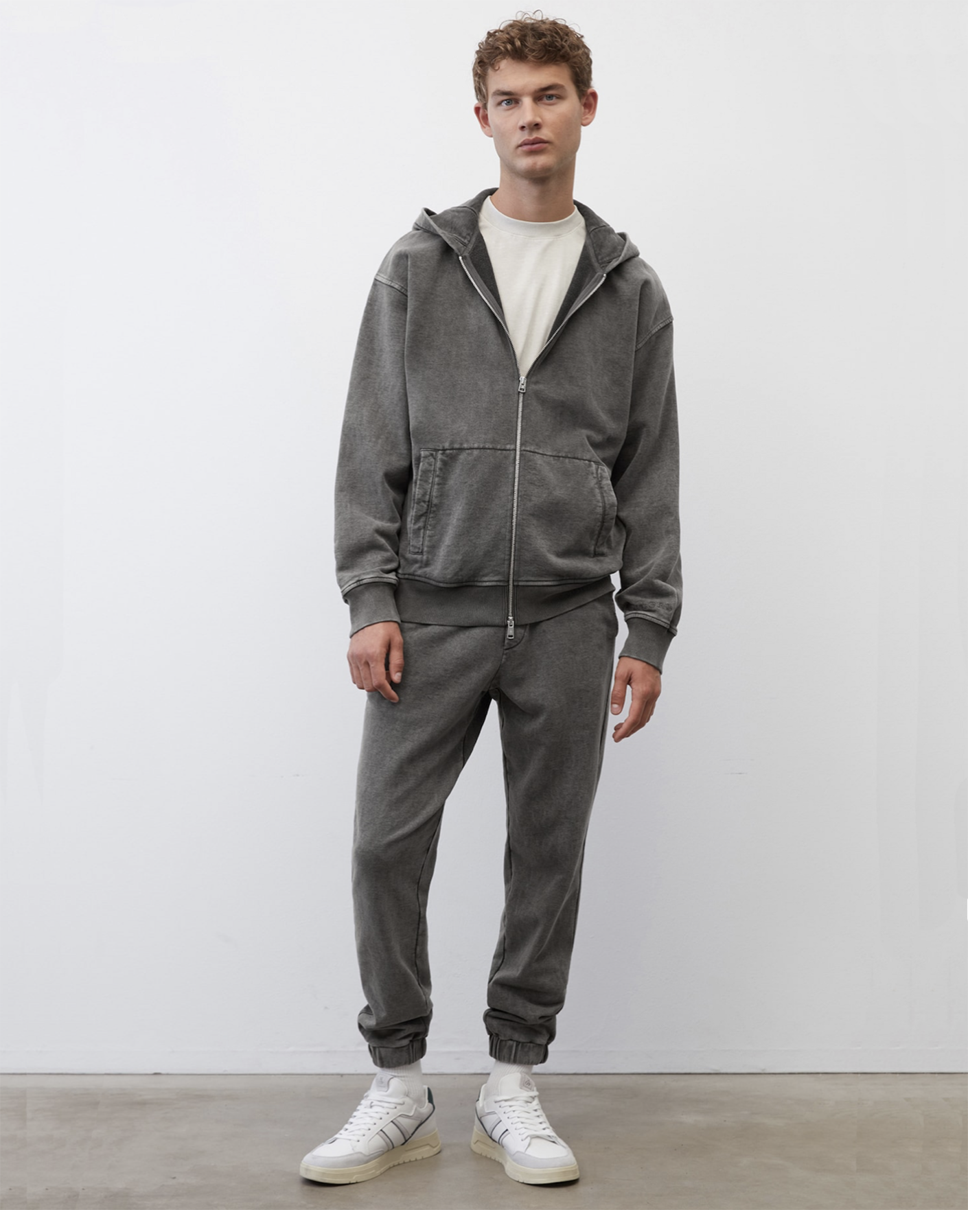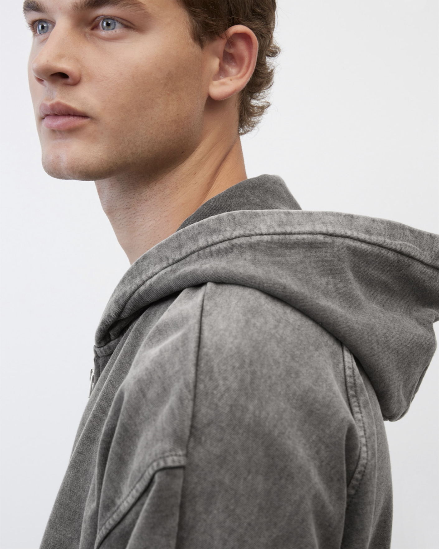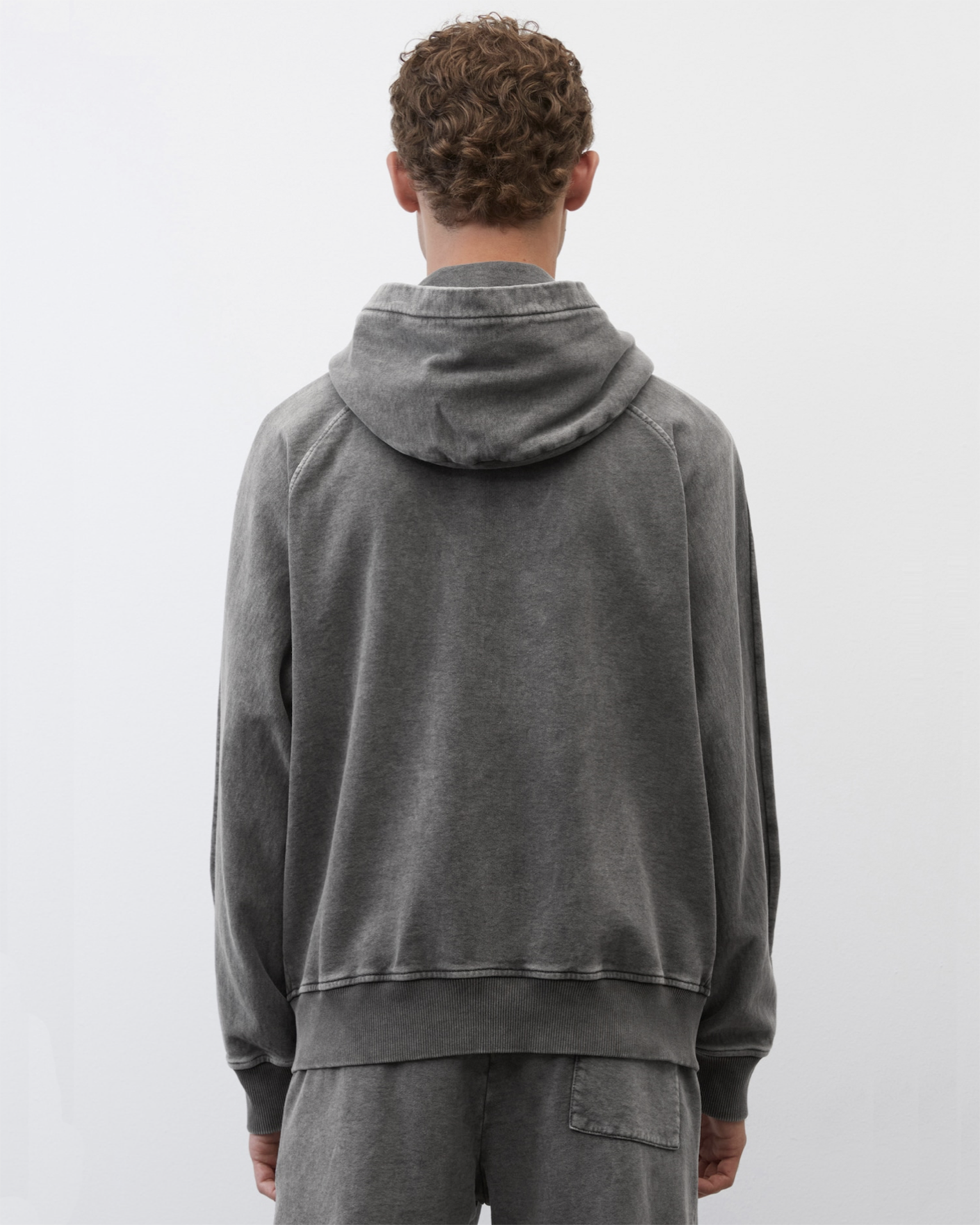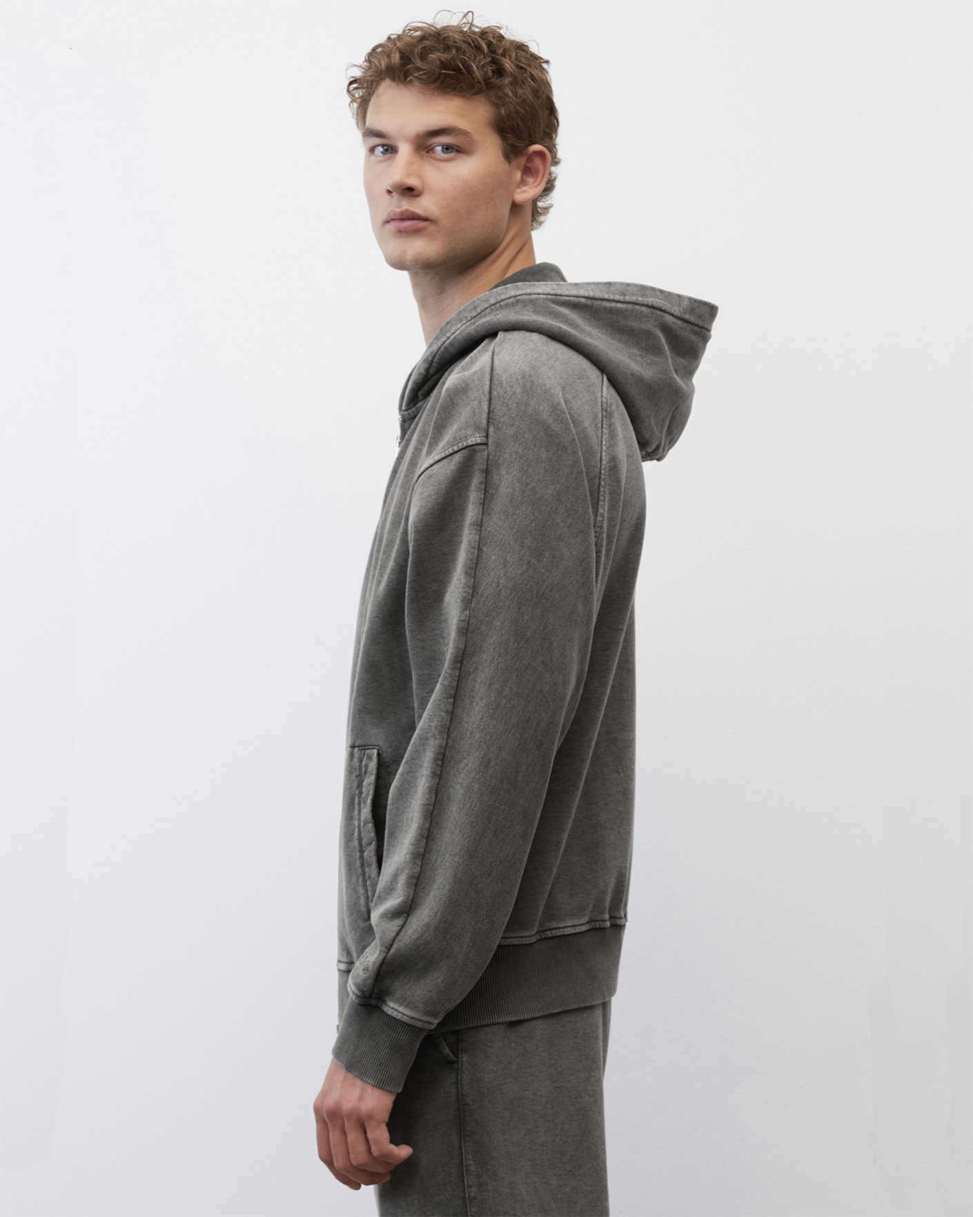Повседневная толстовка Marc O'Polo серого цвета с отбеленным эффектом. Хлопковая модель с капюшоном, застежкой на молнию и карманом-кенгуру. Манжеты и низ на тонкой резинке. Толстовка отлично впишется в ваш гардероб.