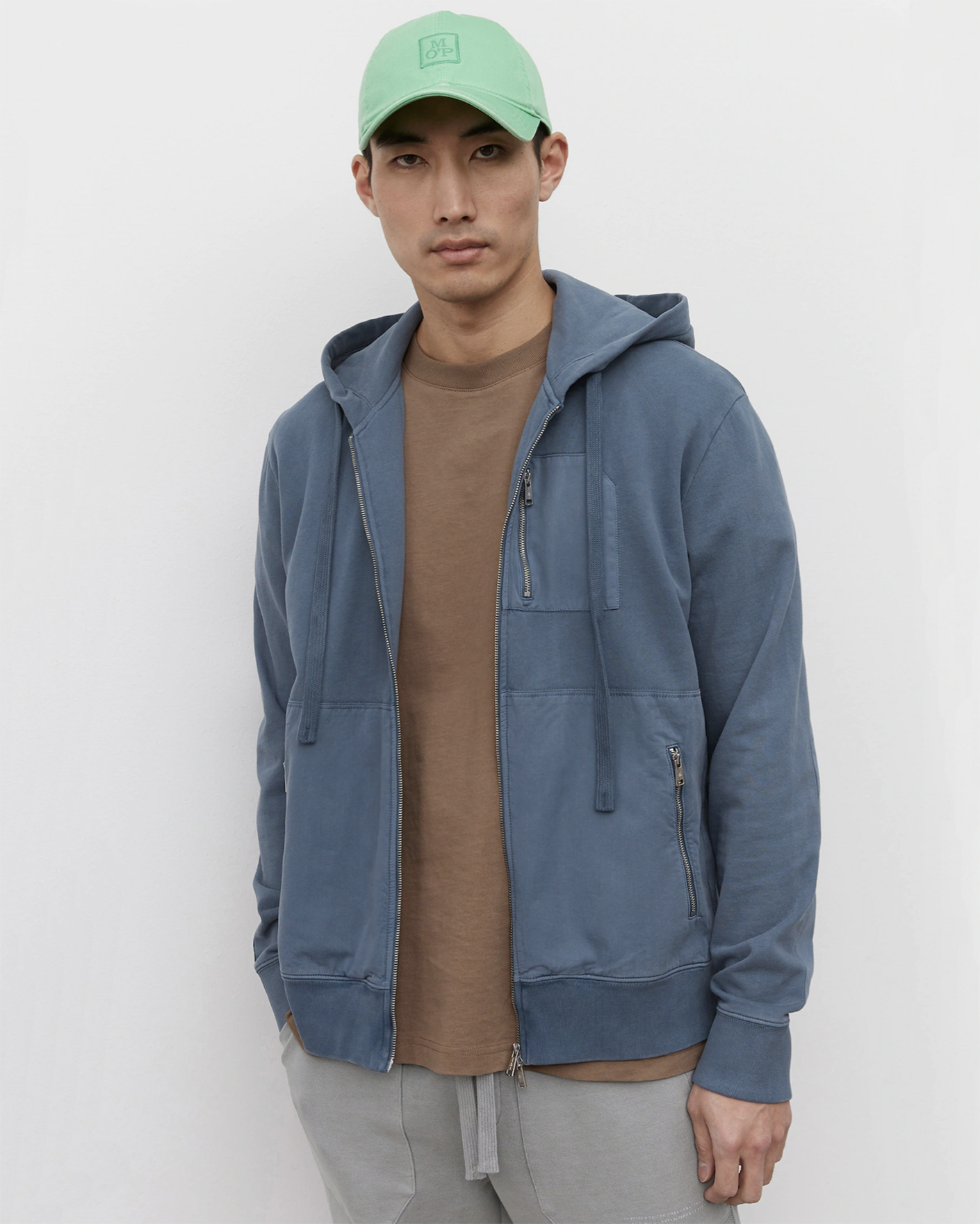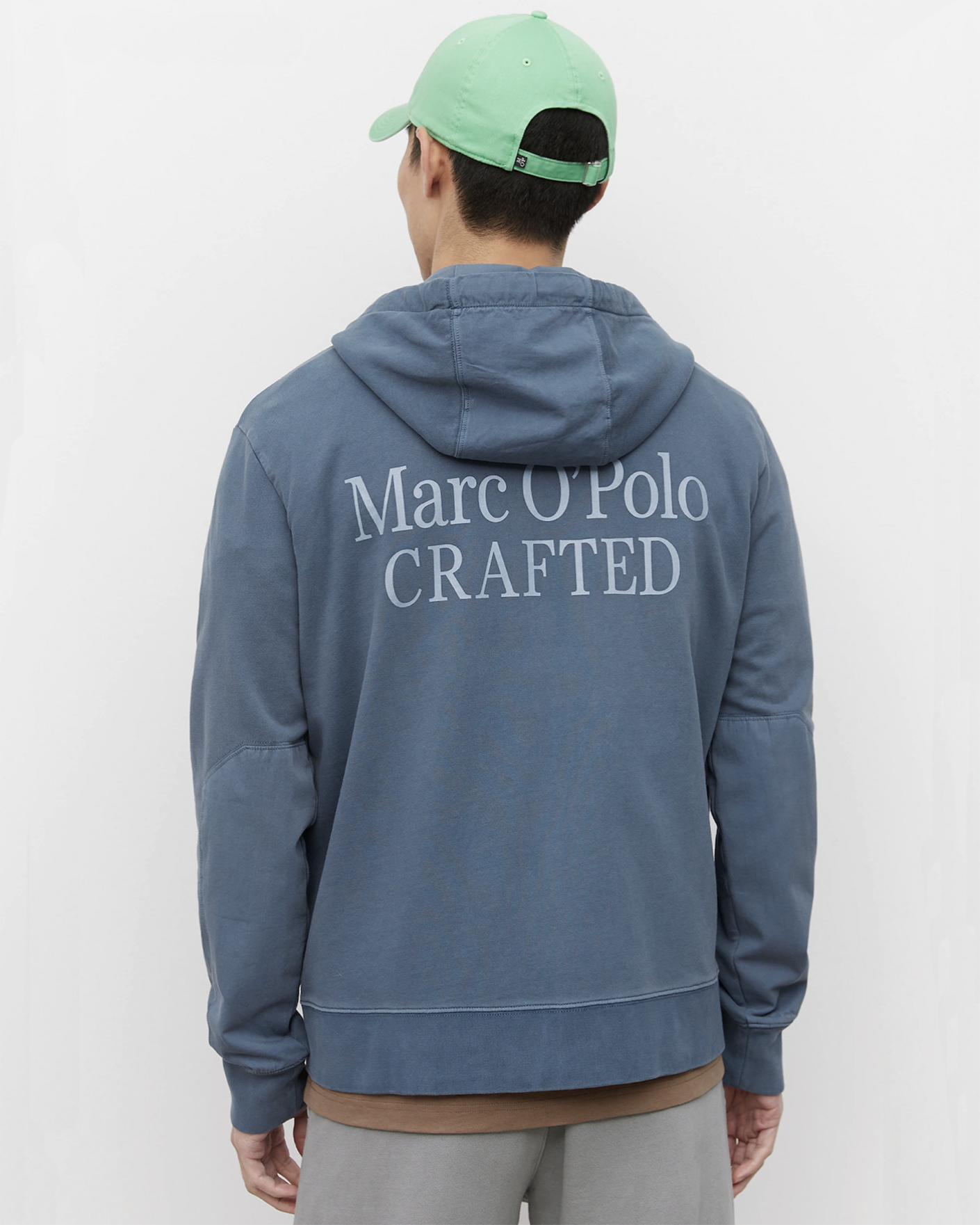 Худи Marc O'Polo серо-синего цвета выполнена из 100% хлопка. Модель с регулируемым капюшоном и застежкой на молнию. Имеется крупный логотип на спинке. Врезные карманы по бокам и на груди на молнии. Манжеты и низ на тонкой резинке. Худи отлично впишется в вам гардероб в спортивном стиле.