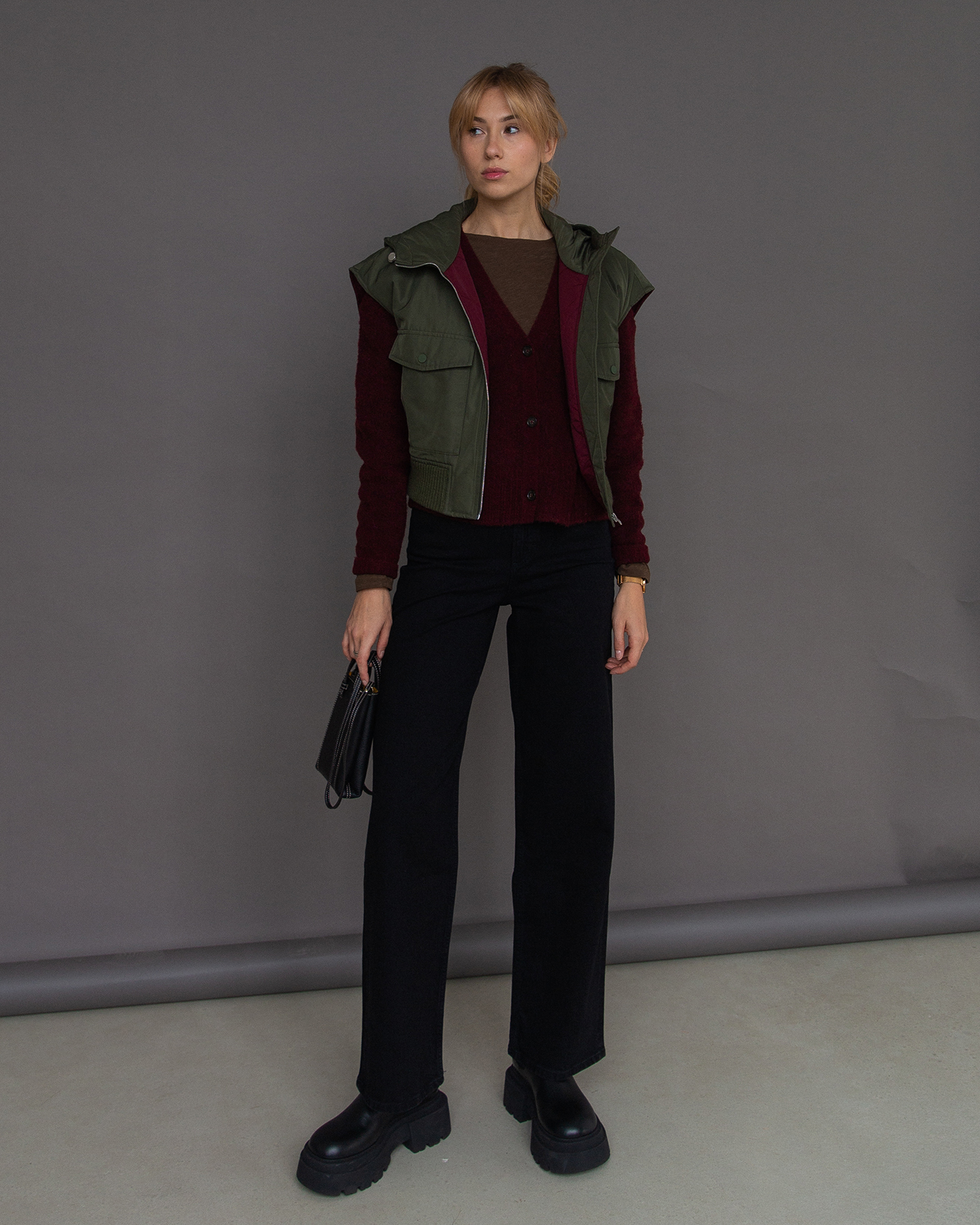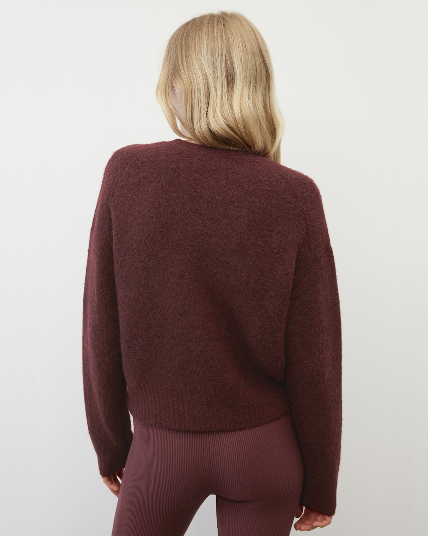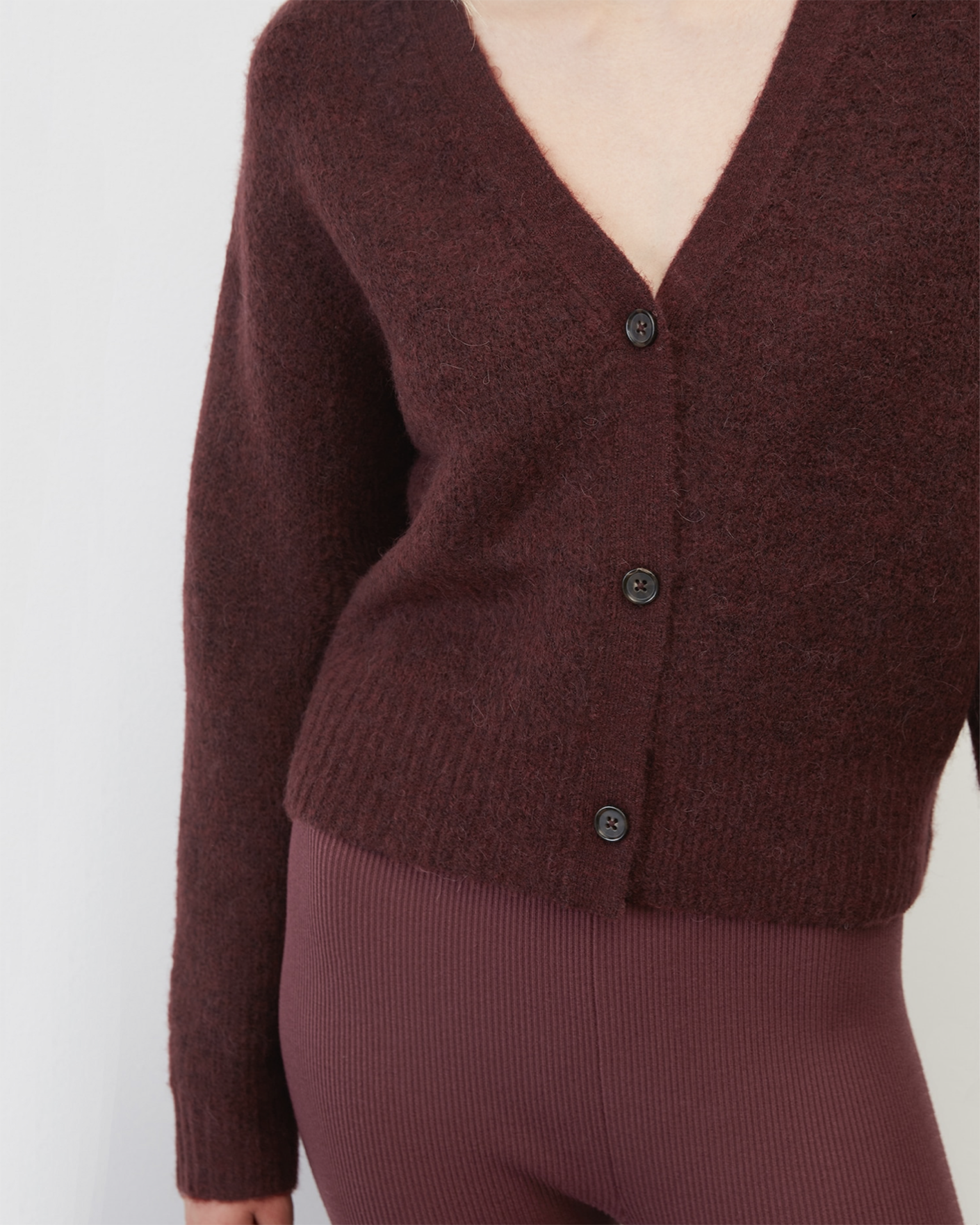 Укороченный кардиган Marc O'Polo винного цвета в текстурную строчку. Модель с V-образным вырезом и застежкой на три пуговицы. Спущенная линия плеча с широкими рукавами создает уютный и комфортный образ. Стильный кардиган можно сочетать с футболкой, топом, рубашкой, блузой, водолазкой, платьем, юбкой и брюками.